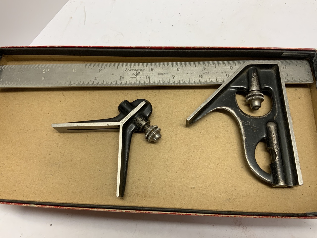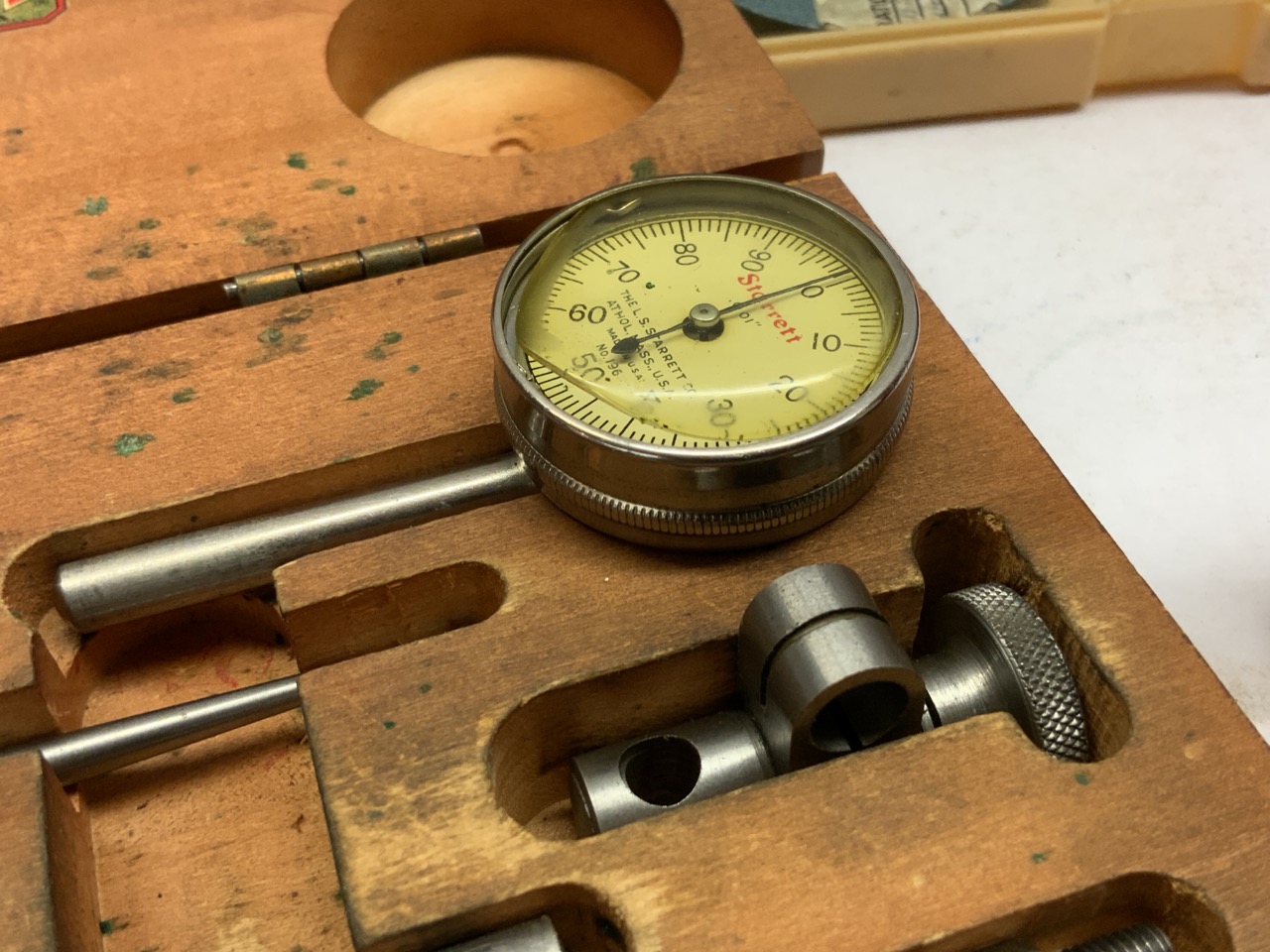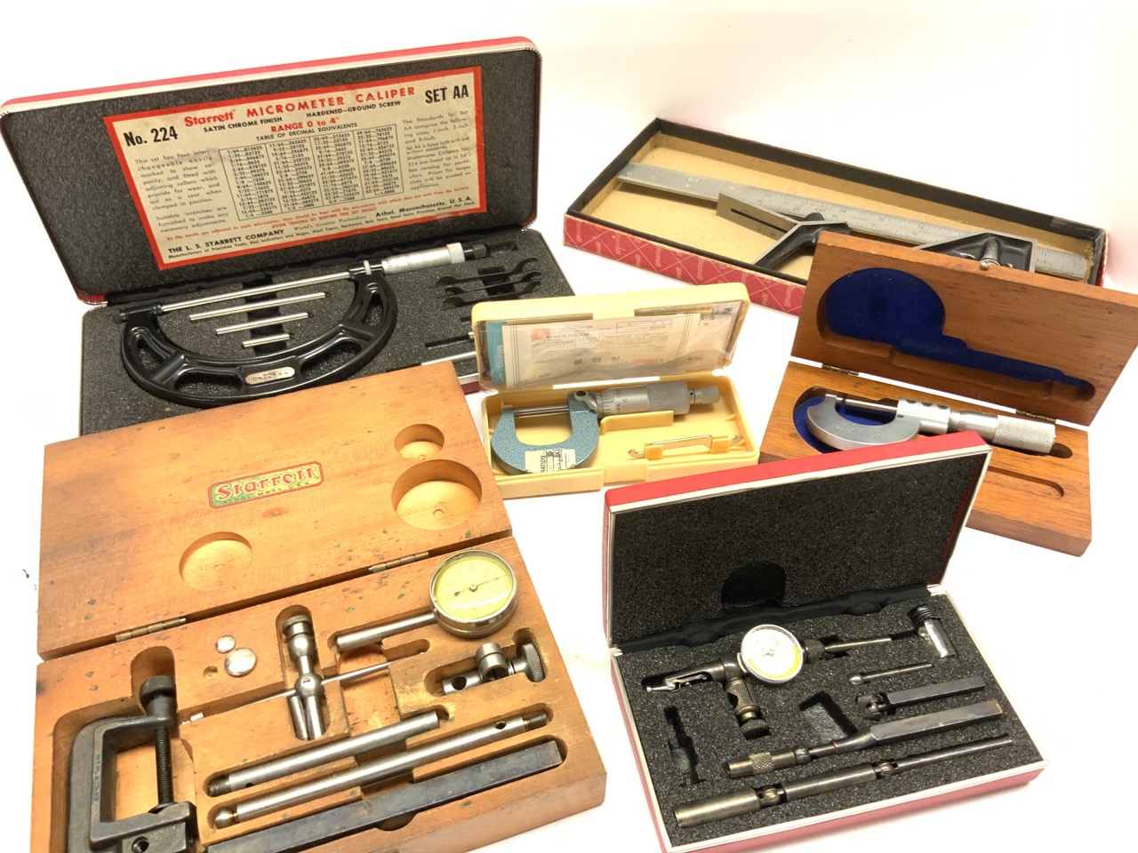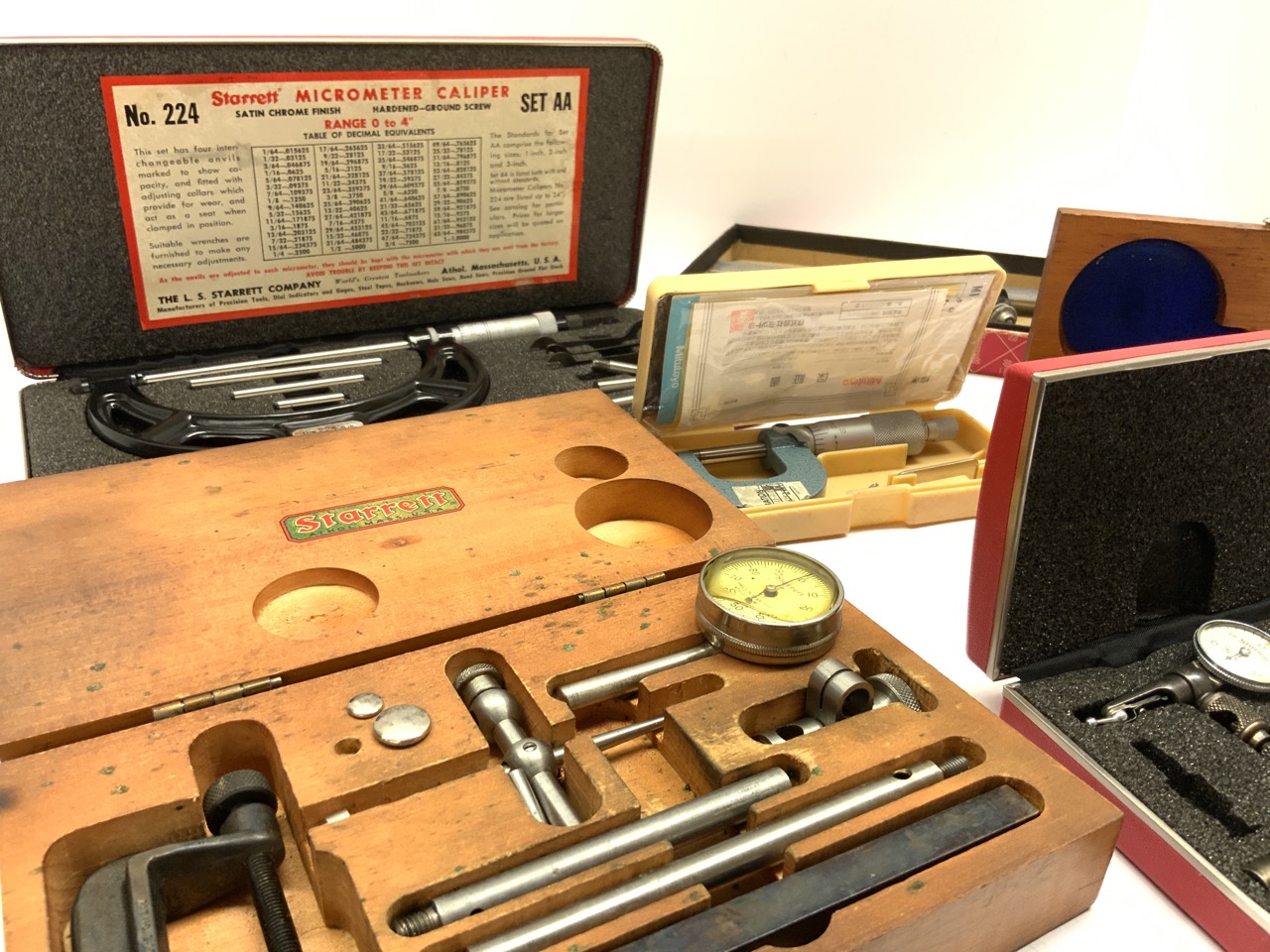 Compiled machinist precision tool lot. Starrett Micrometers, Squares, Slocomb micrometer etc. As seen in photograph preview.