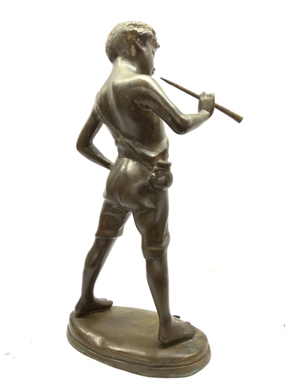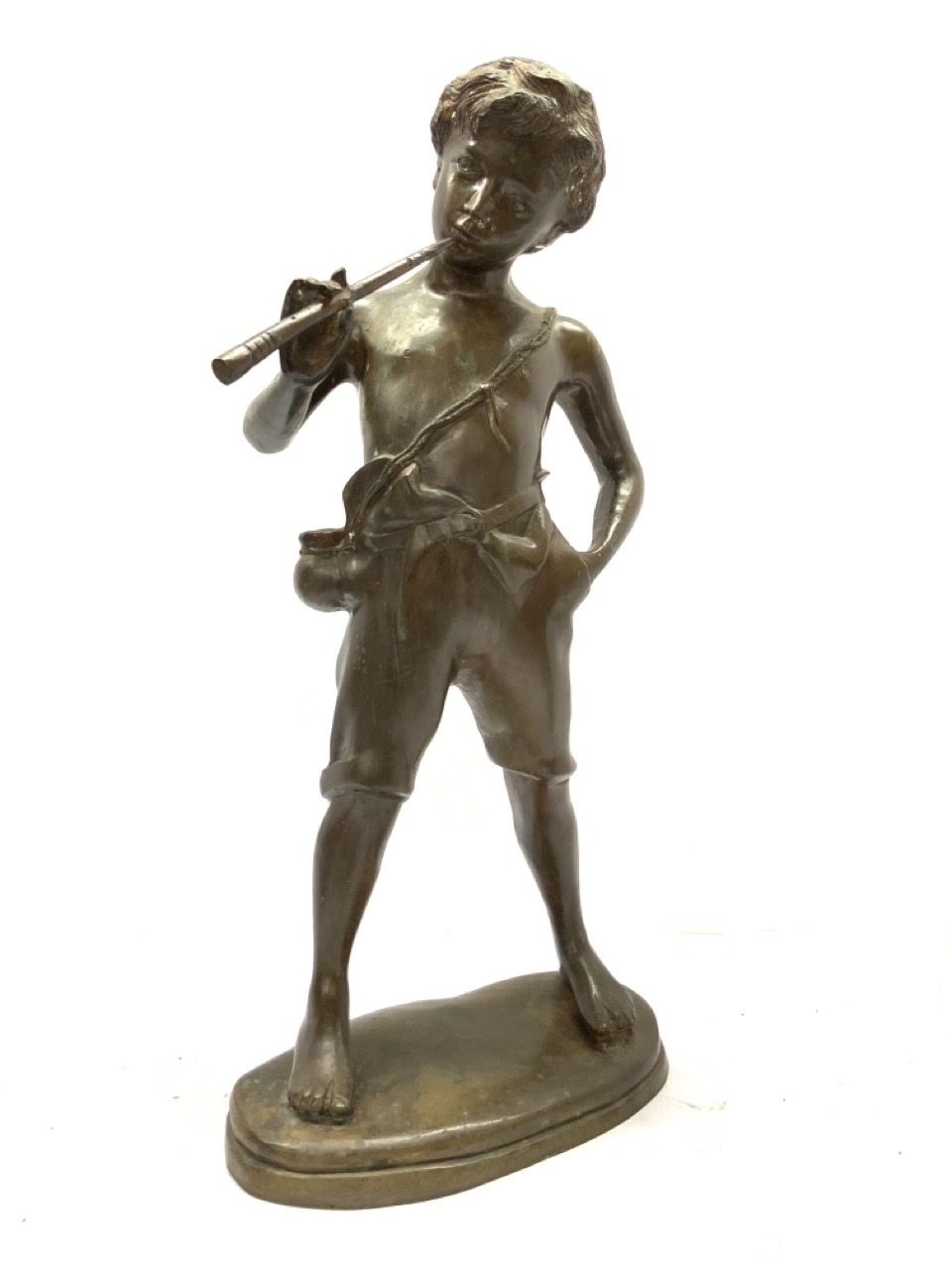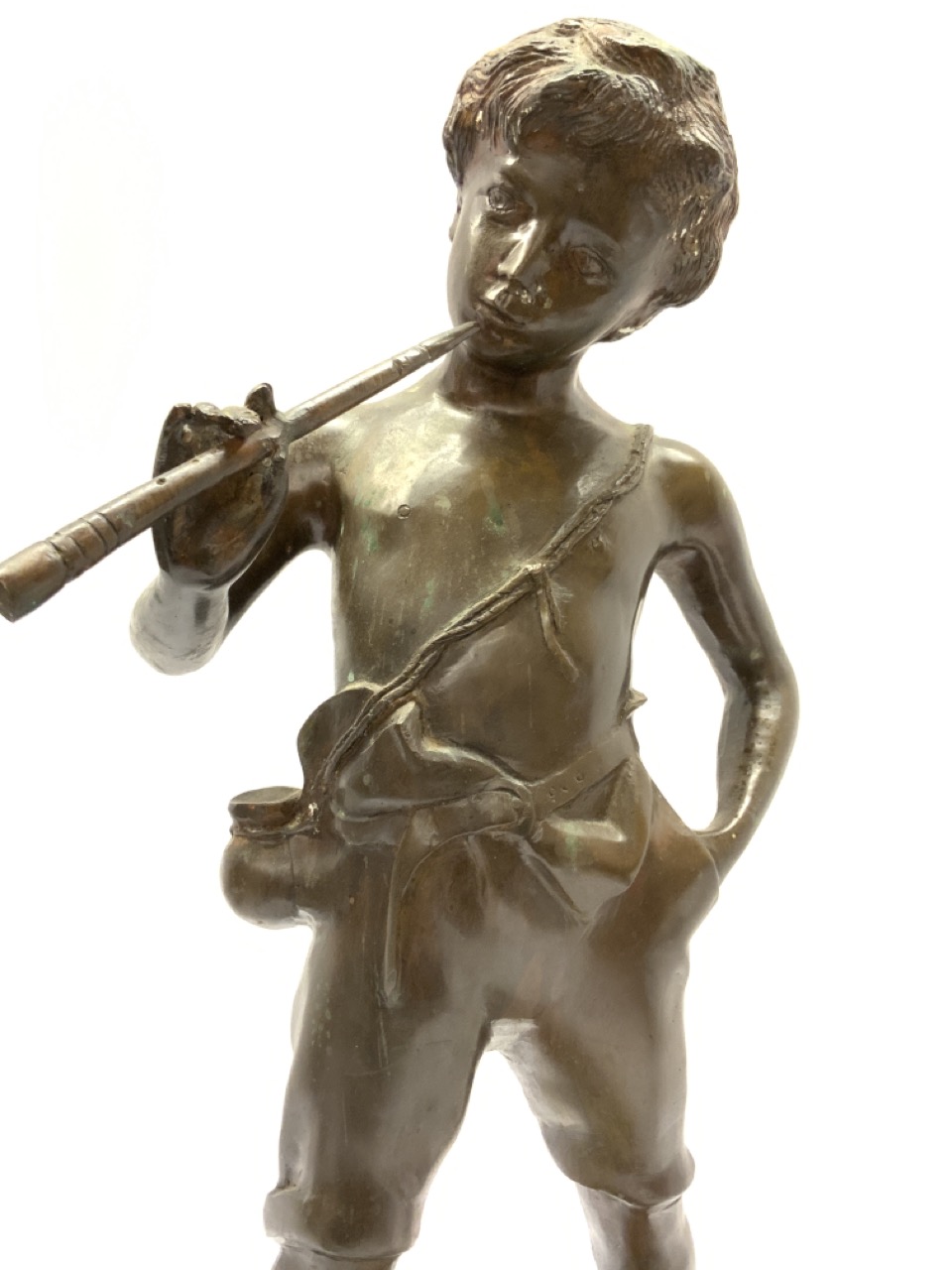 Bronze flute player statue.