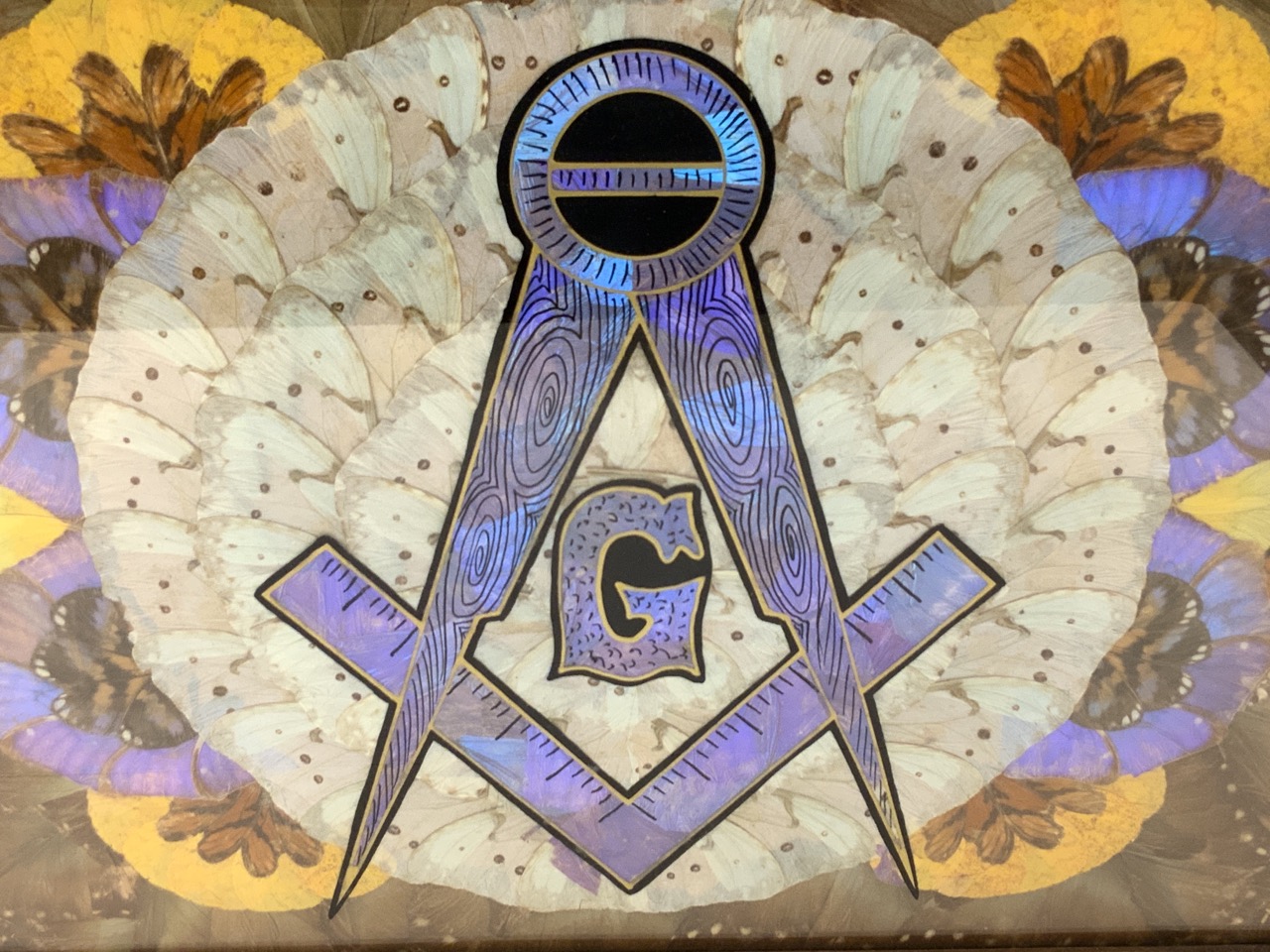 An unusual Art Deco butterfly tray with Masonic symbol design.
