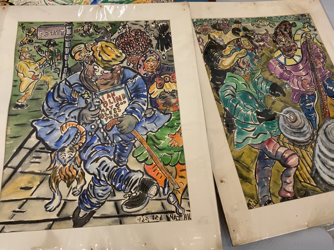 Thirty-Five (35) Piece Pastels On Paper by Nathan Hilu (Brooklyn, NY Jewish Artist)