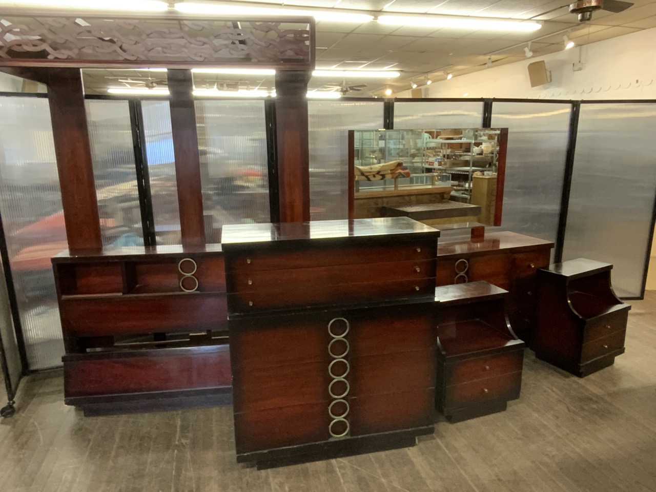 Dresser with mirror, bureau, headboard/footboard and two night stands.