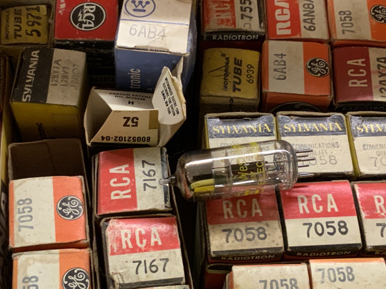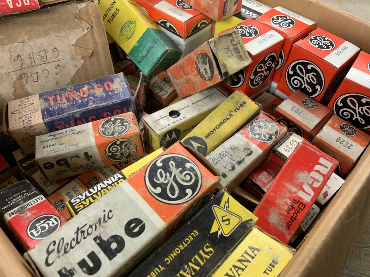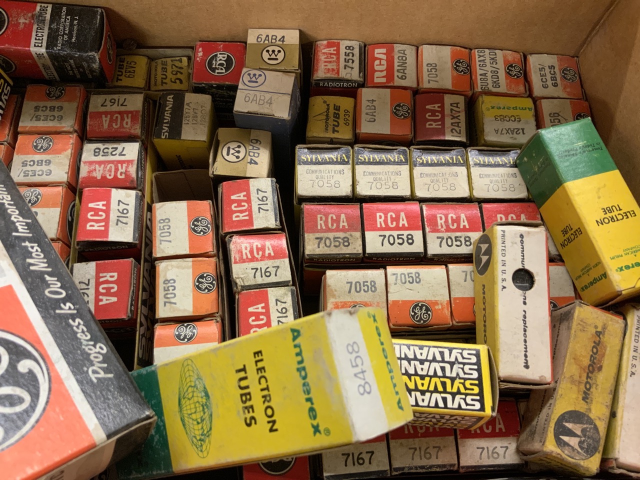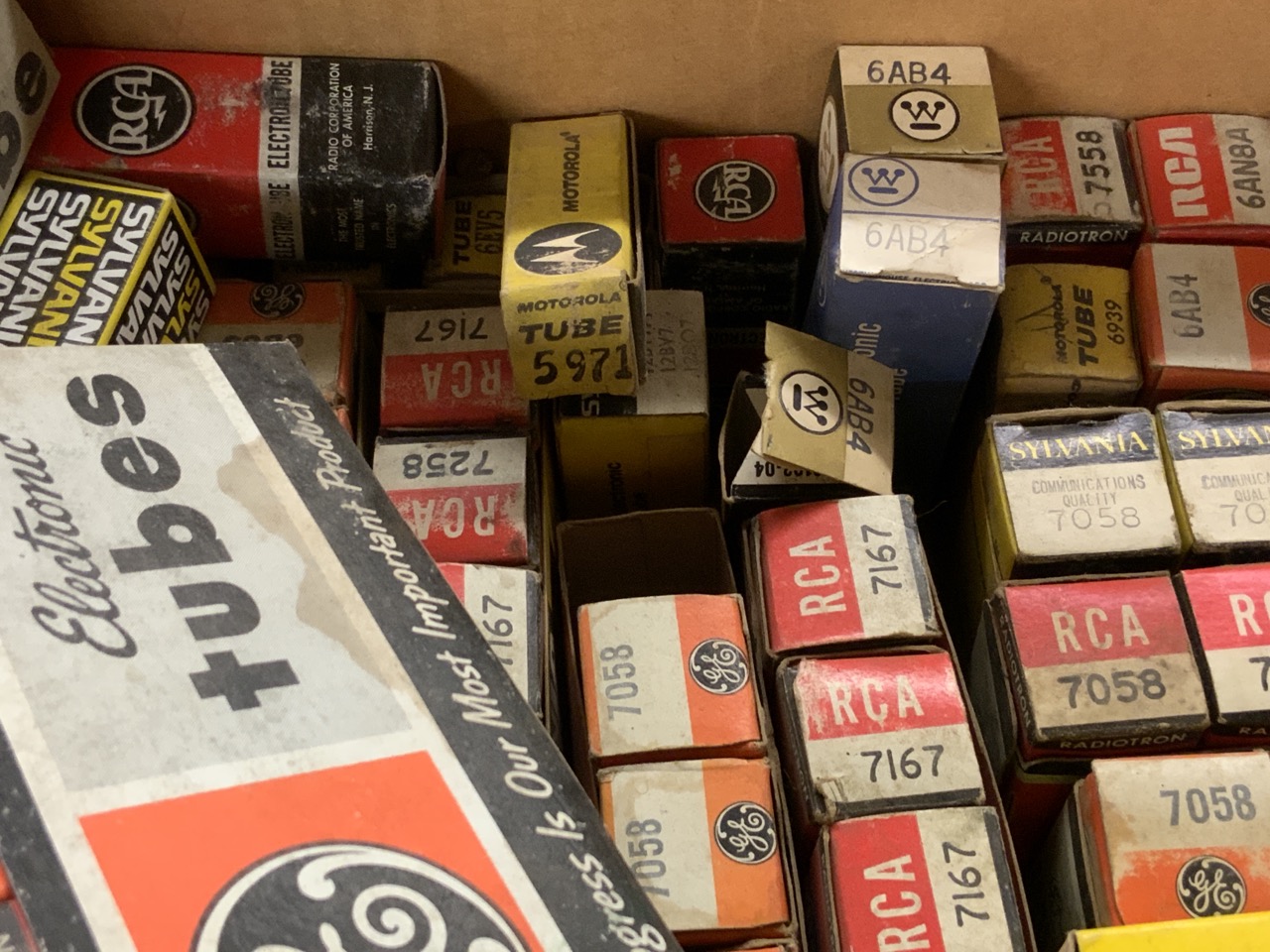 Vintage New/Old stock radio tubes. RCA, Motorola etc. As seen in photograph preview. Some boxes tattered. Brand new.