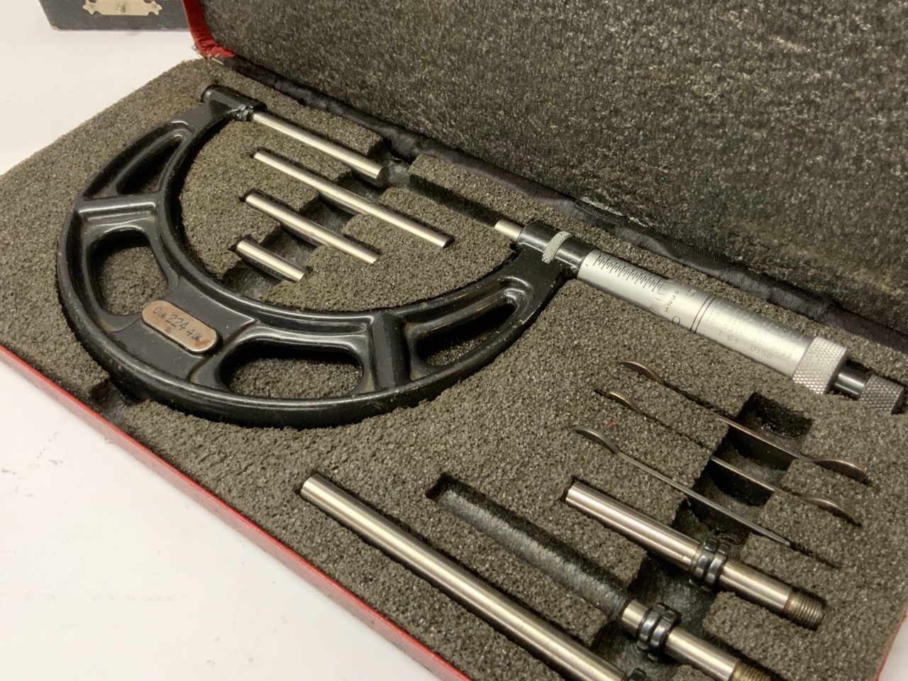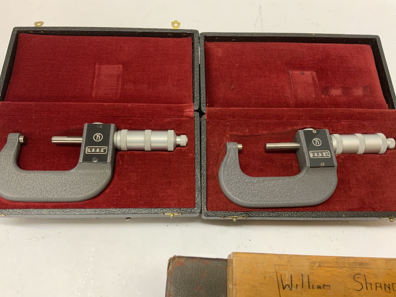 A compiled grouping of estate found precision tools. Starrett Anvil micrometer, Calipers, Steinmeyer outside micrometer etc.