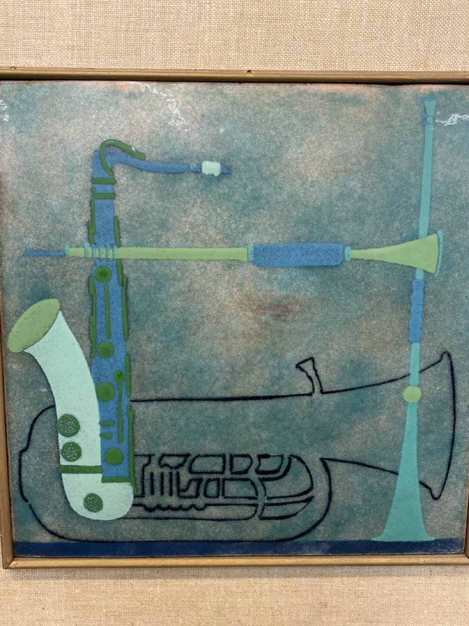 Mid Century Modern Copper Enameled Tile Art Work.
