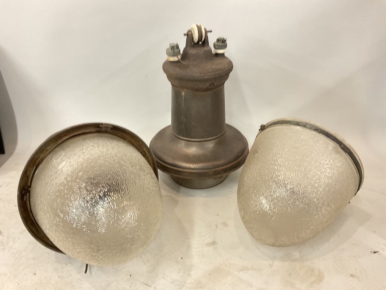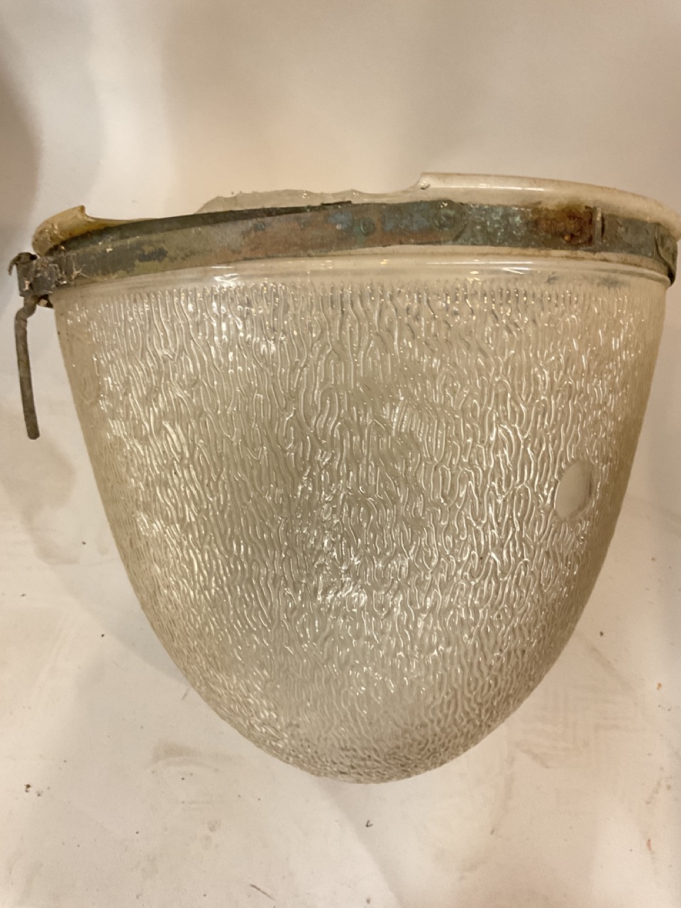 Some chipping on rim of glass shade noted. Does not affect appearance when assembled.