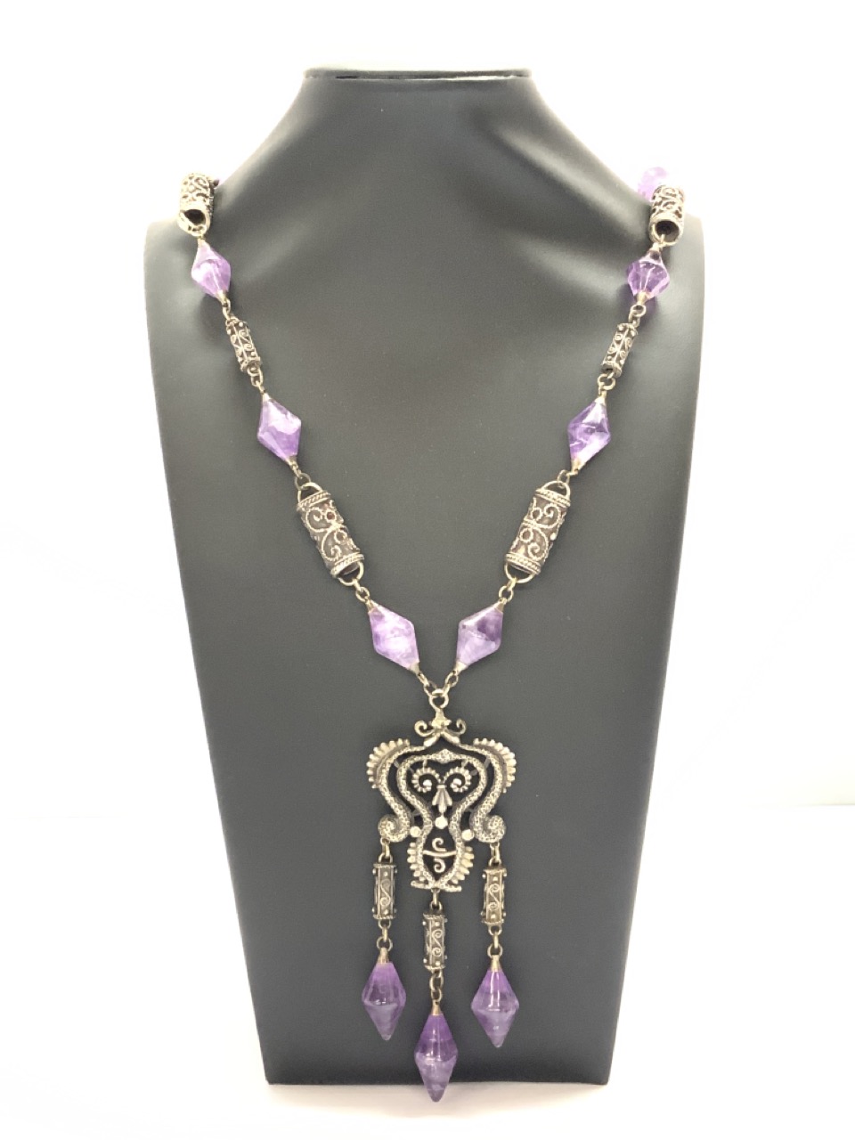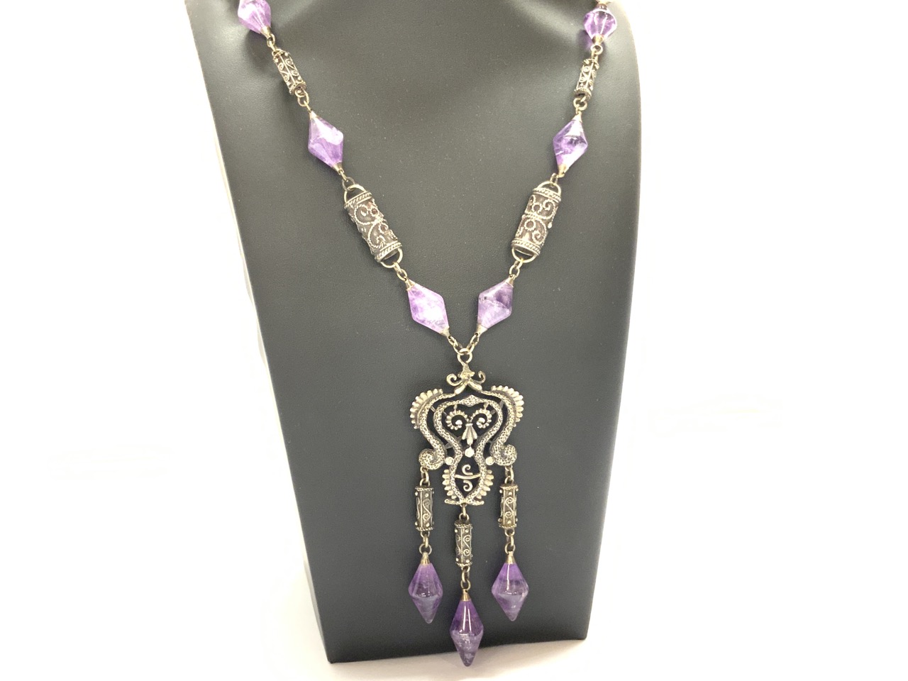 Sterling silver and amethyst necklace.