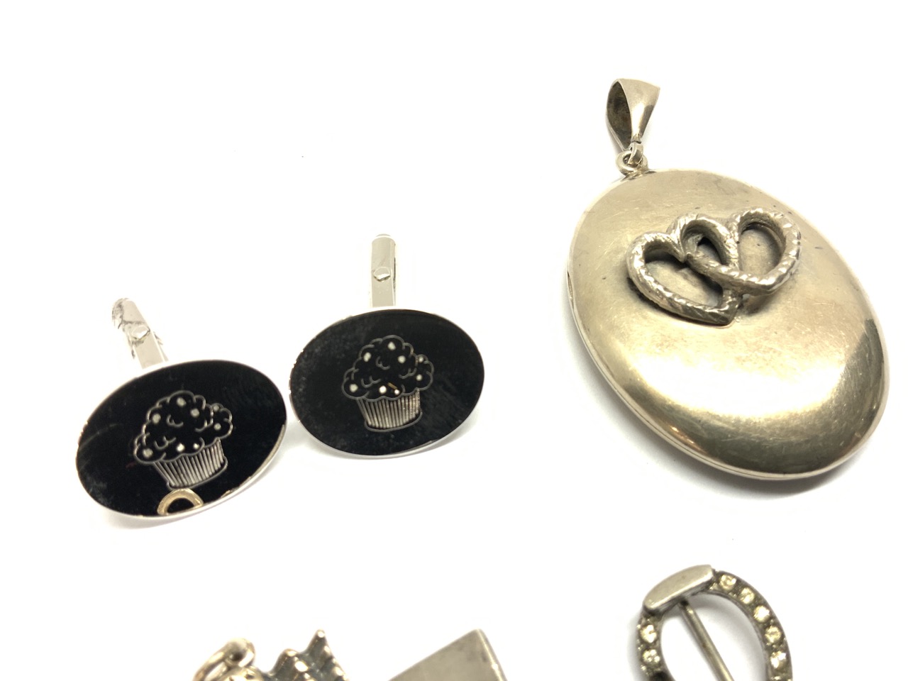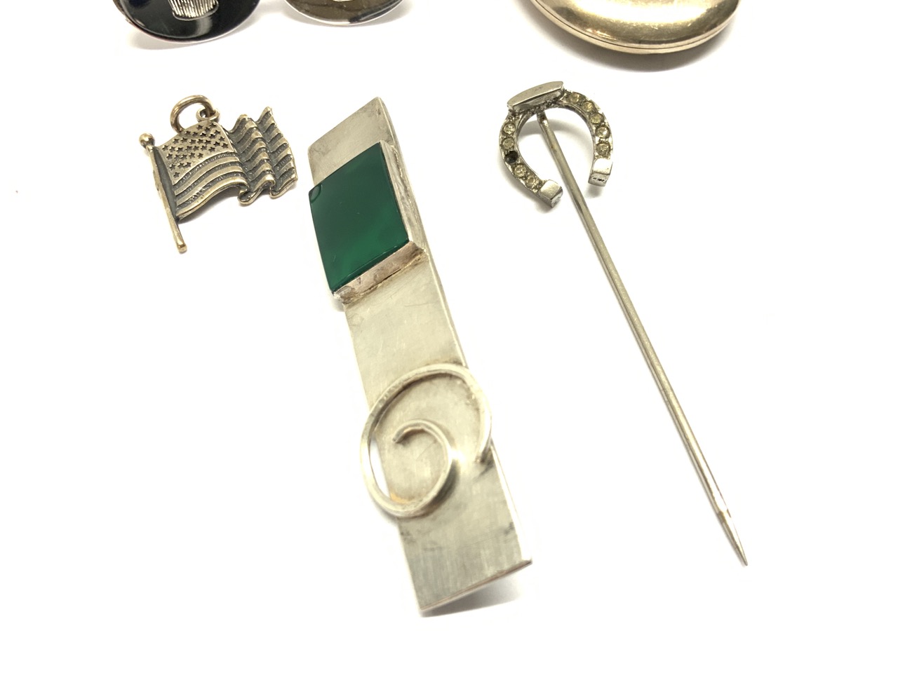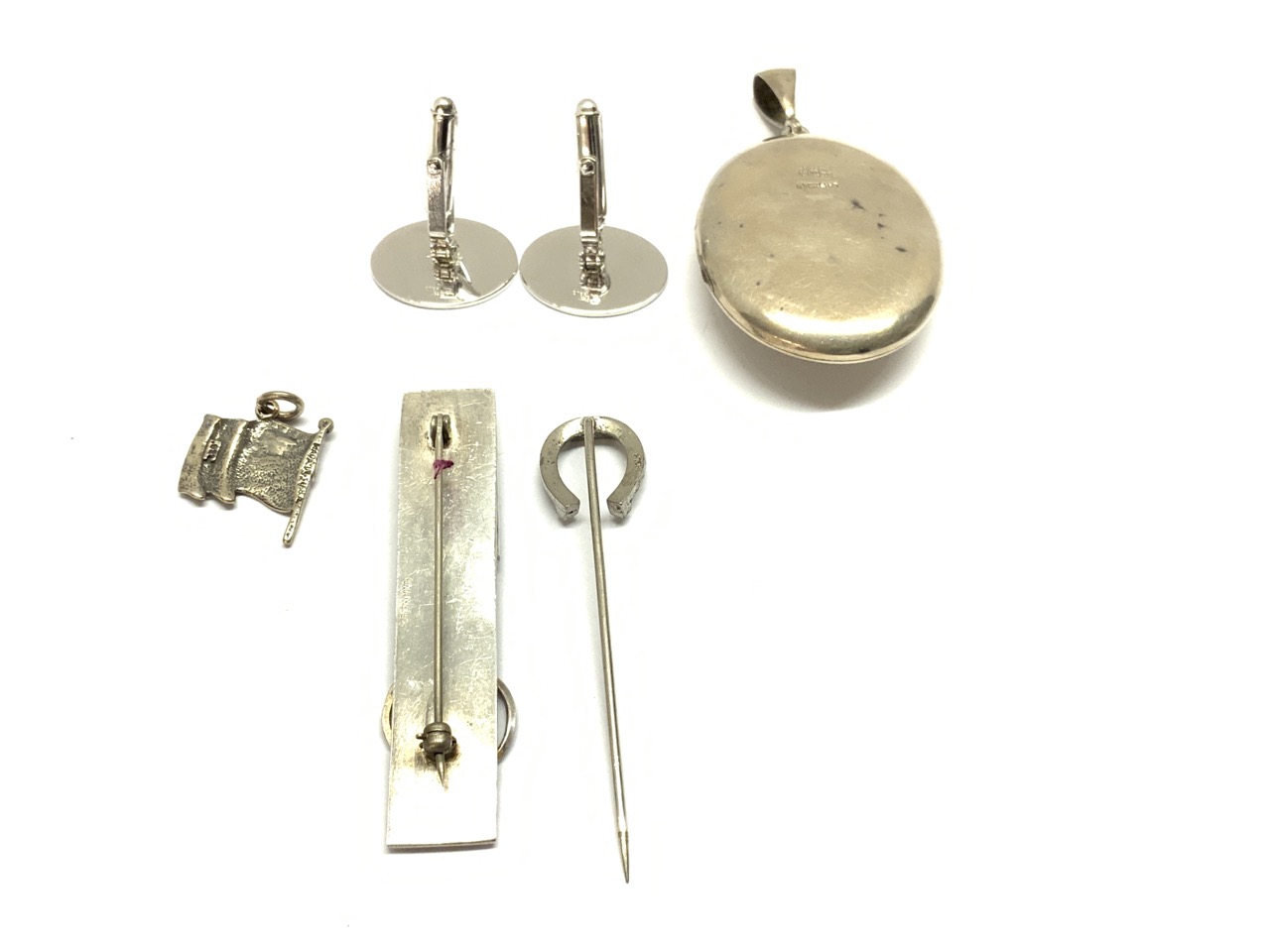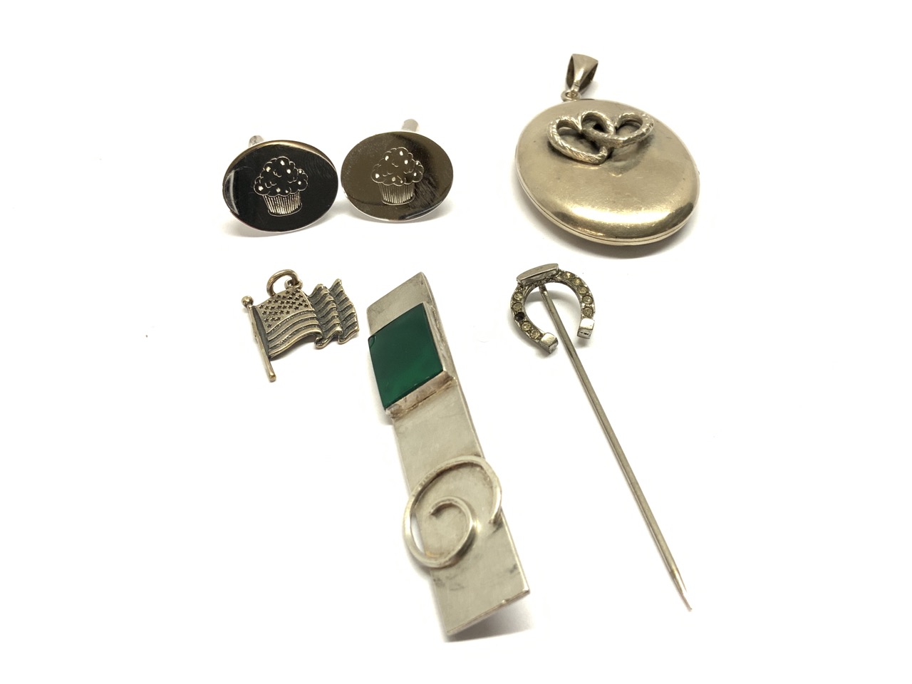 Six (6) piece sterling silver jewelry group. Pendant, cufflink, pins etc.
