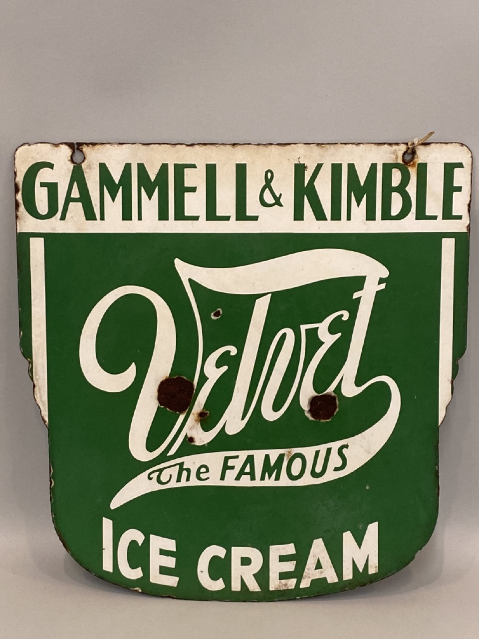 Vintage Gammell & Kimble Ice Cream Sign. Double Sided. Honesdale, Pennsylvania.