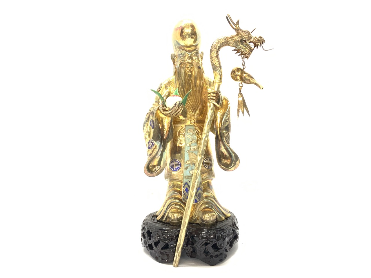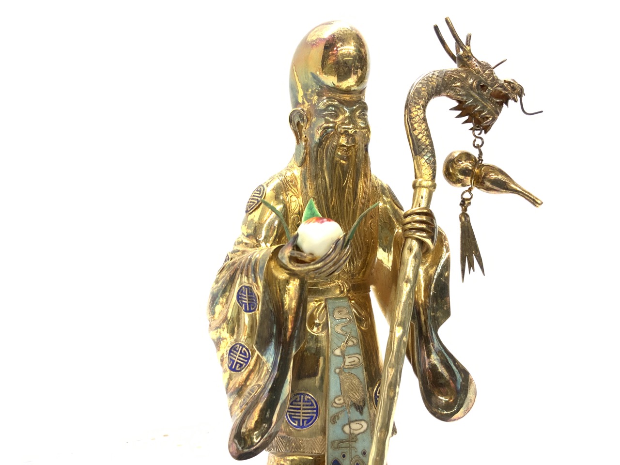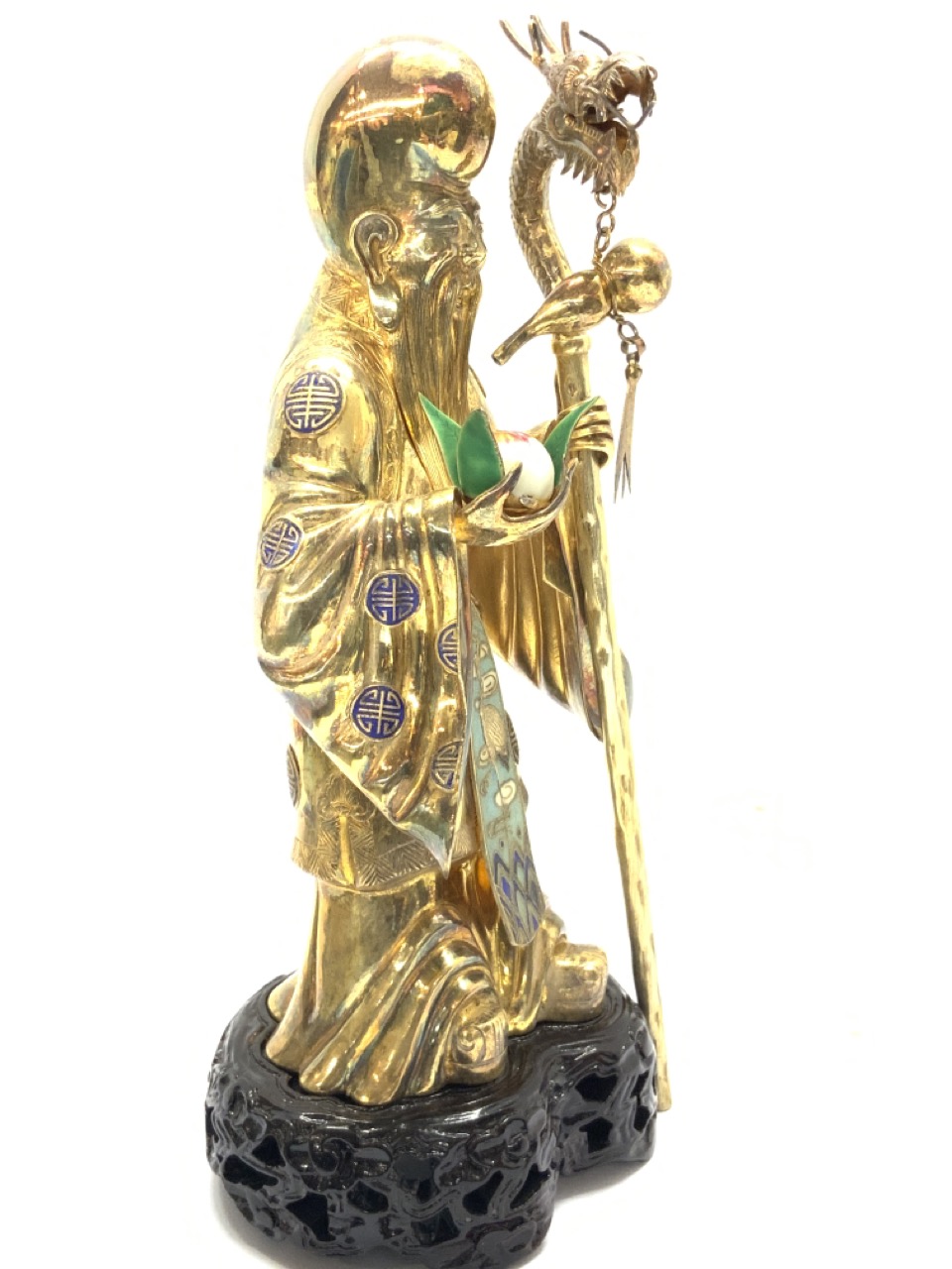 Chinese silver vermeil and enameled Shou Lao Immortal figure.