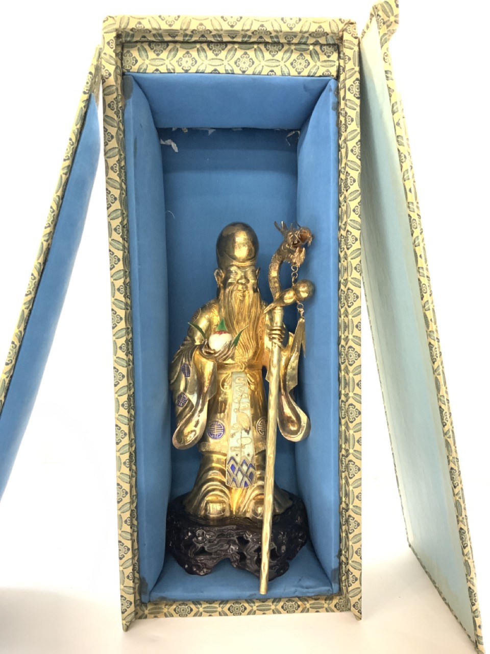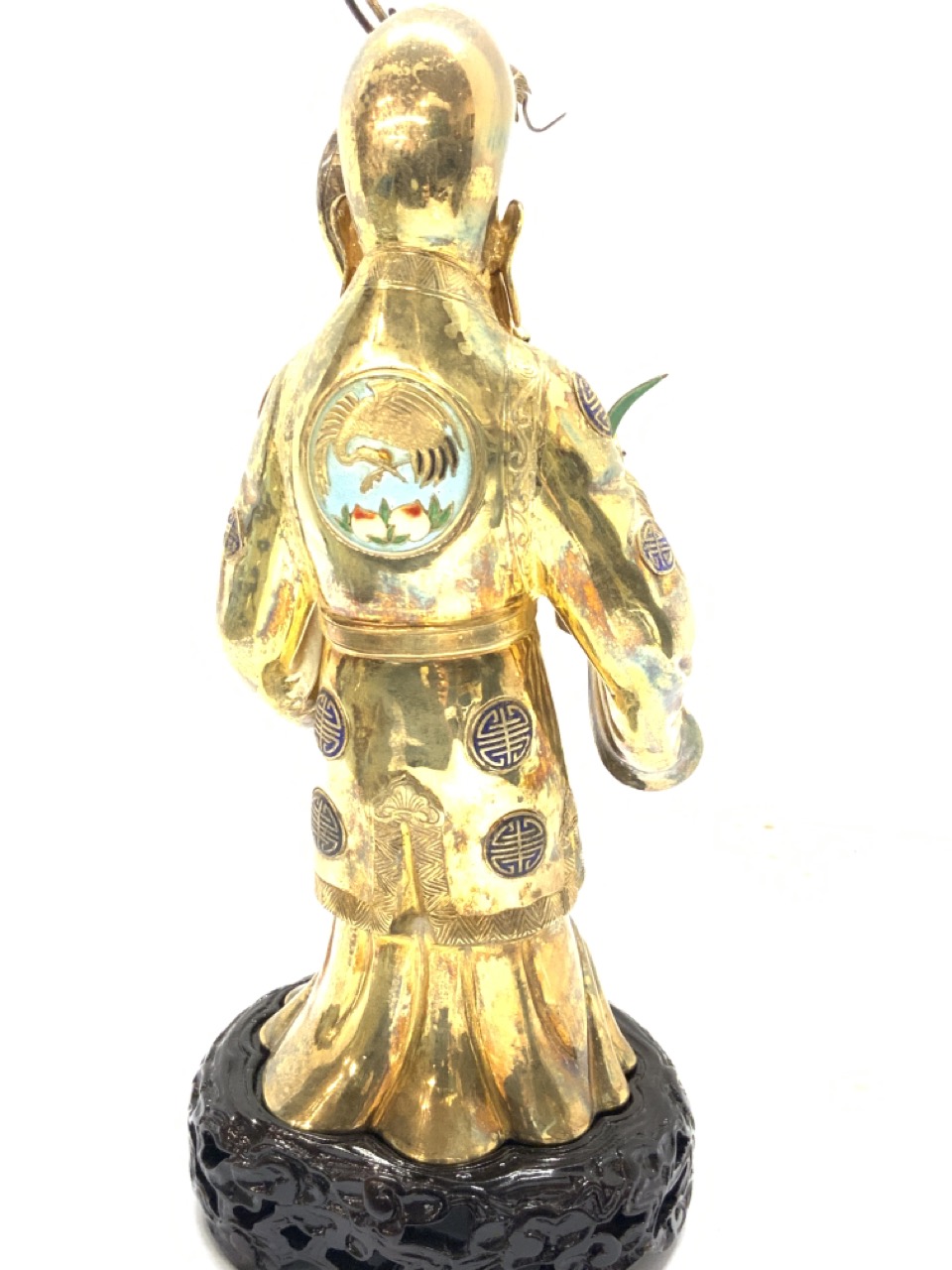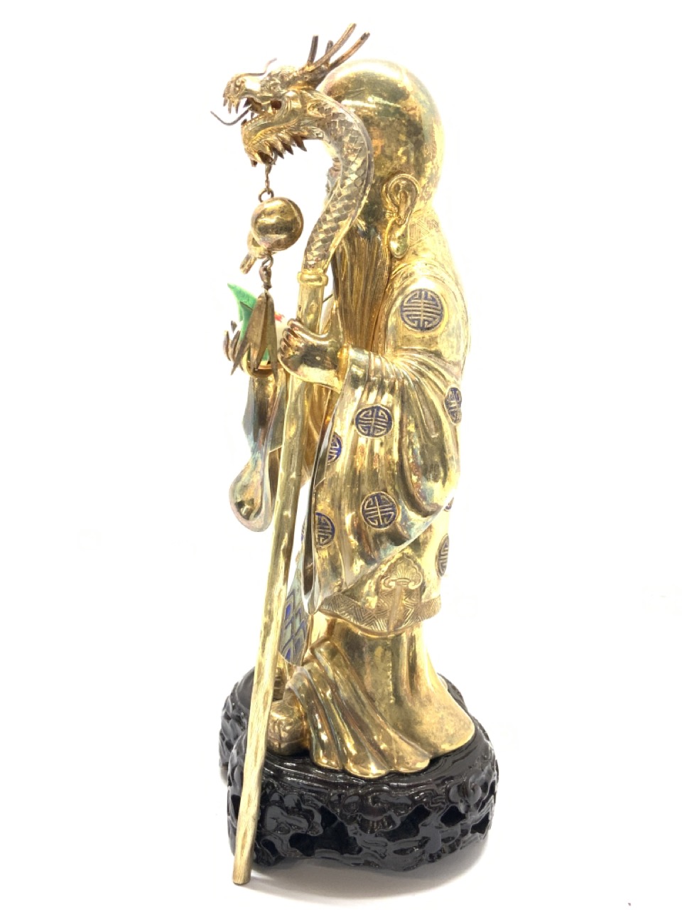 Chinese silver vermeil and enameled Shou Lao Immortal figure.