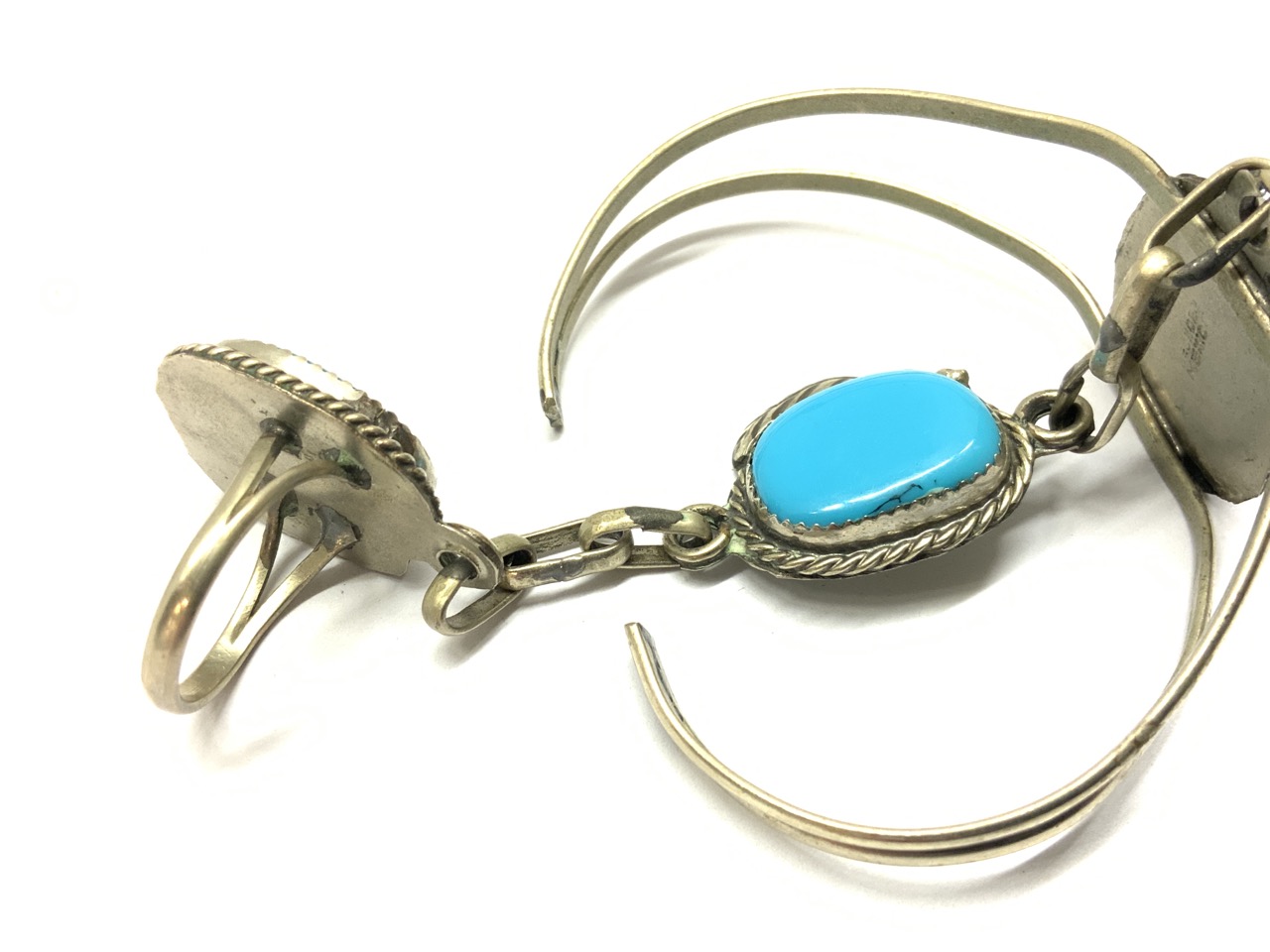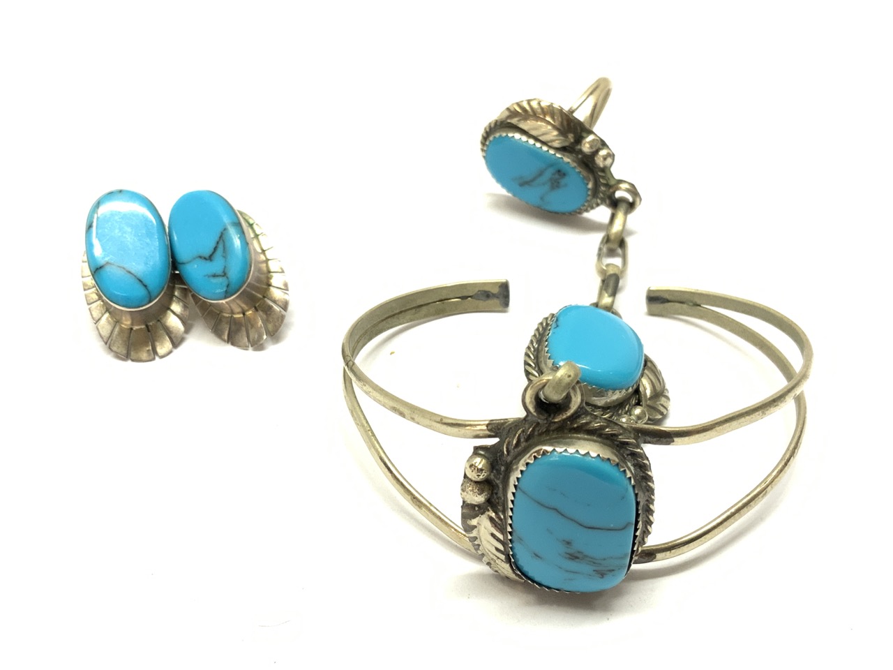 Sterling silver turquoise bracelet w/ ring and earrings.