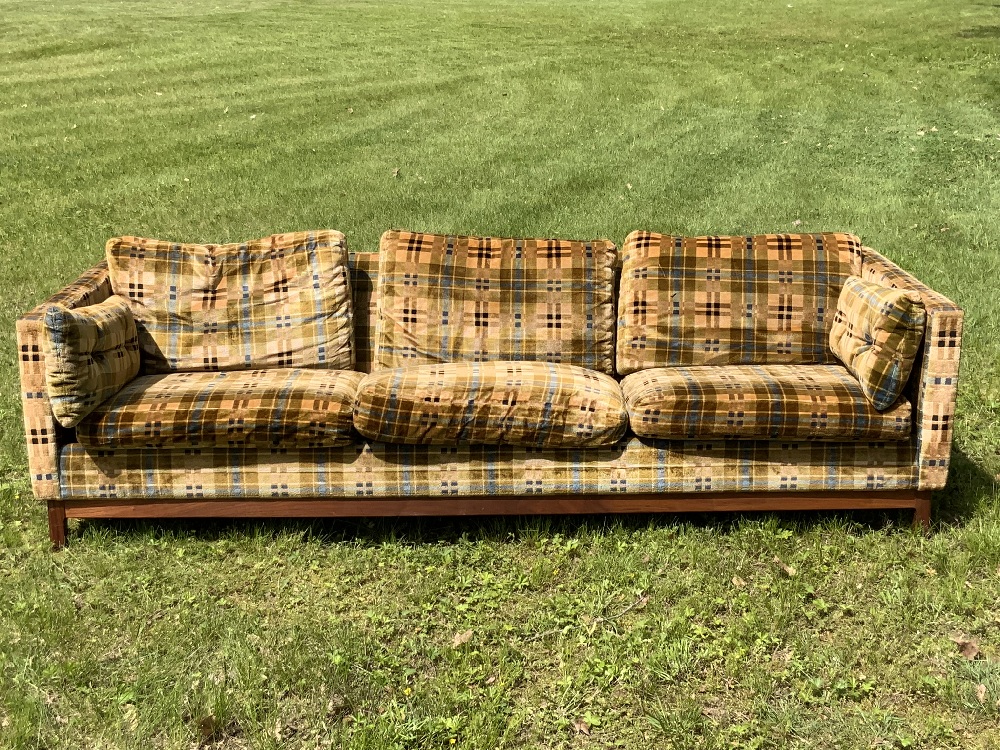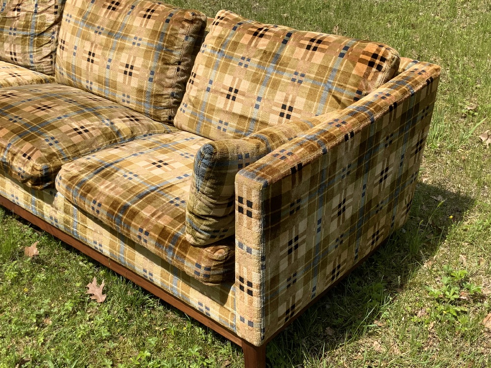 Mid Century Modern sofa by Dux. Appearing to be original upholstery. Very good condition.