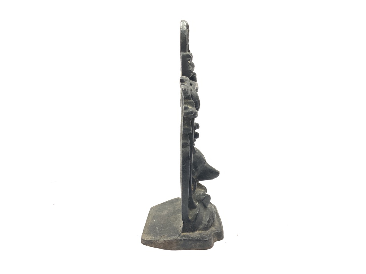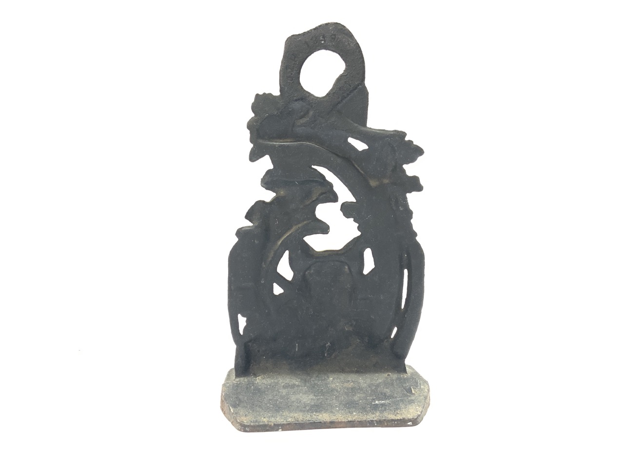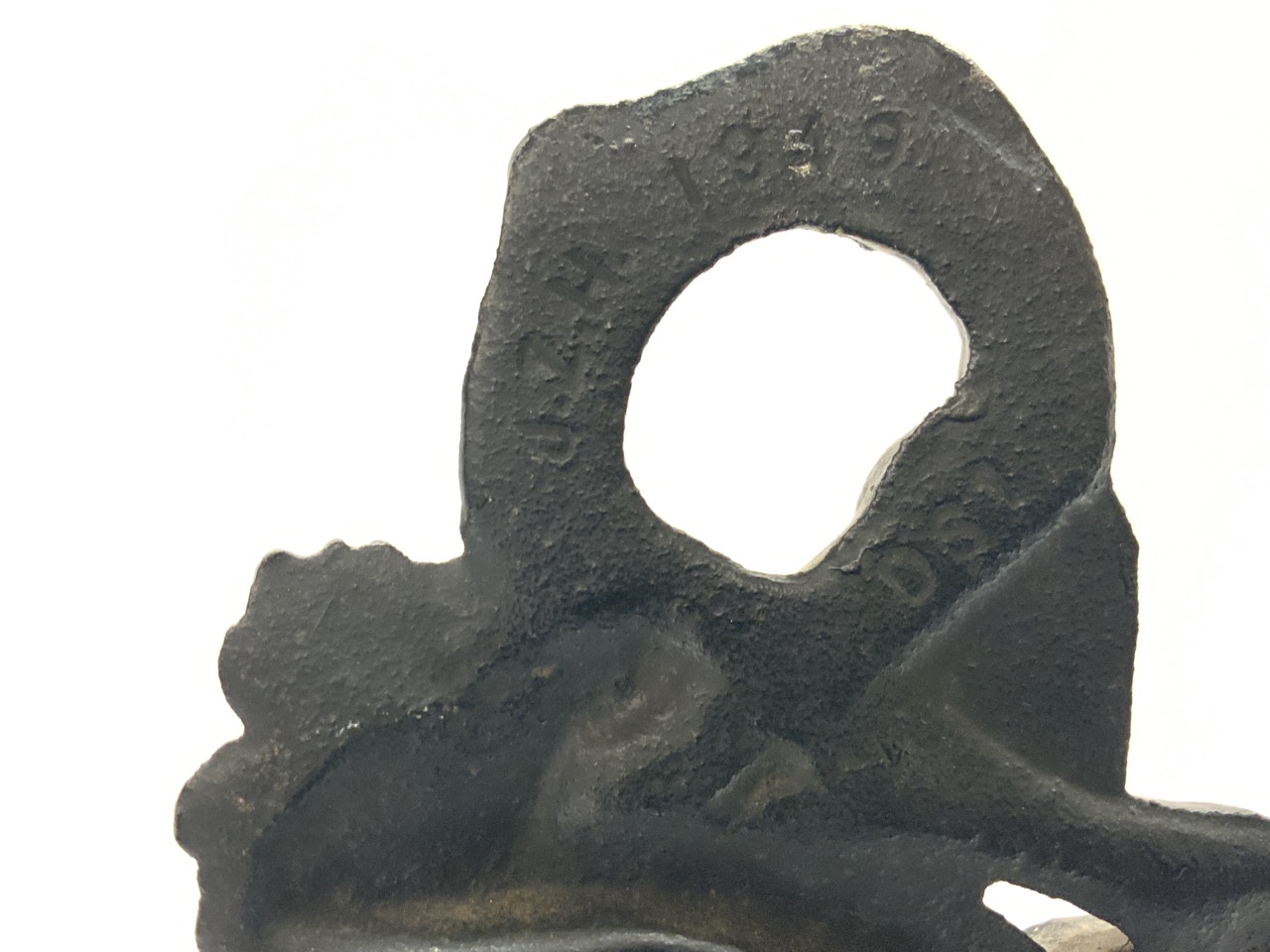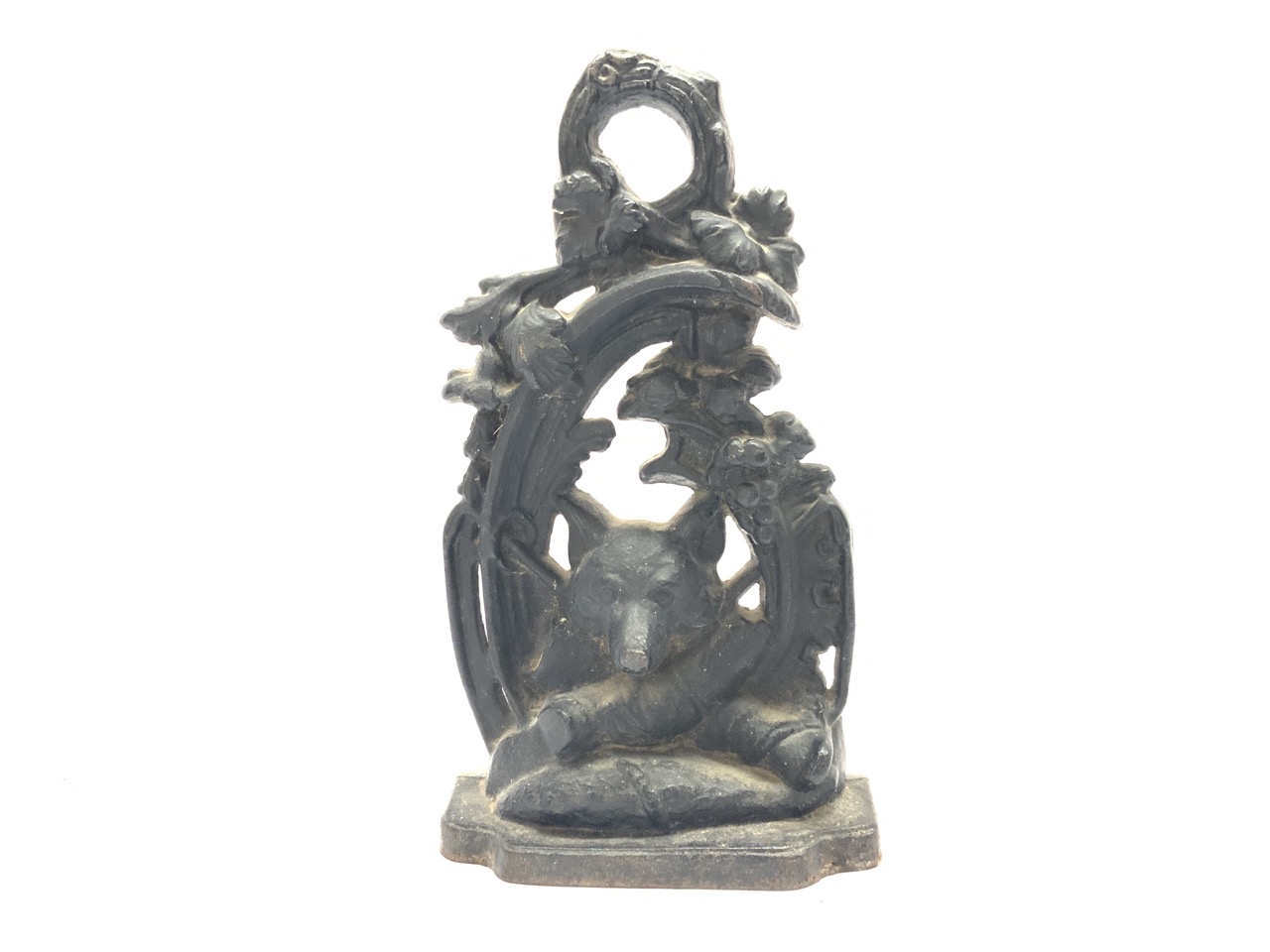 Vintage cast iron wolf door stop with handle. c. 1949 Signed J.R.H.