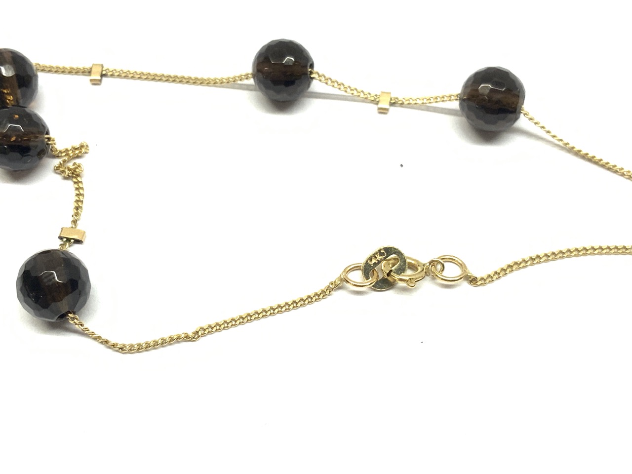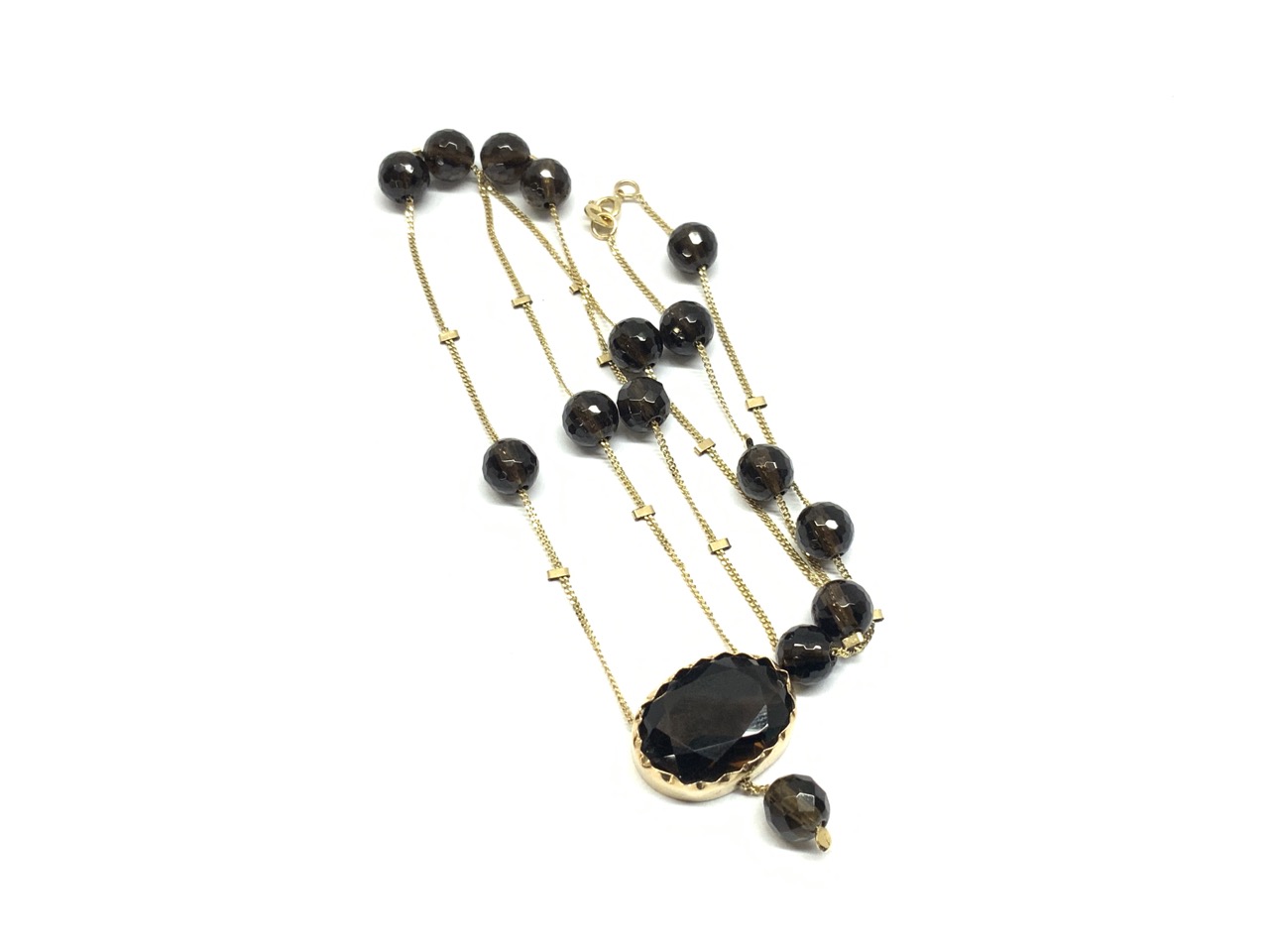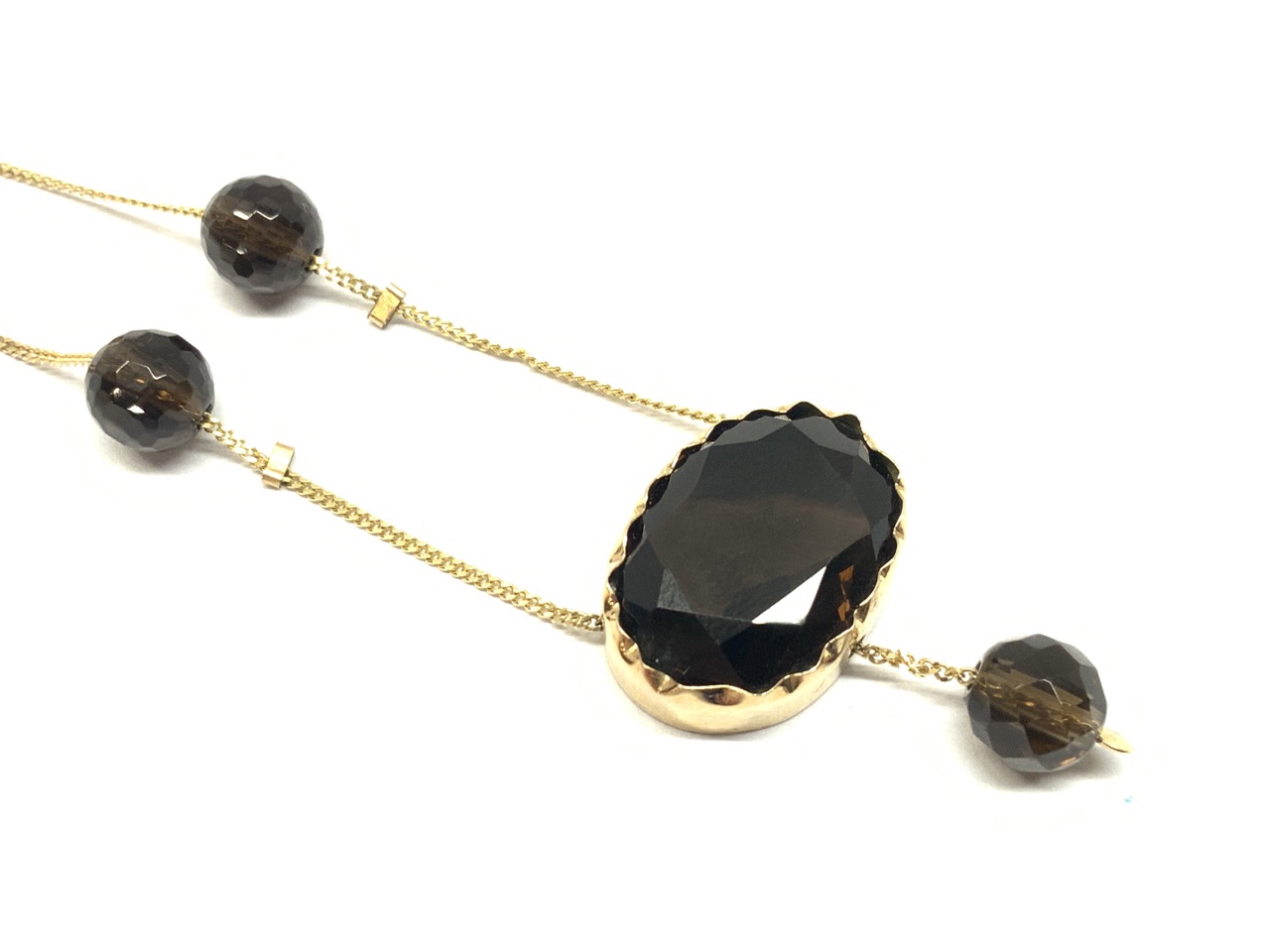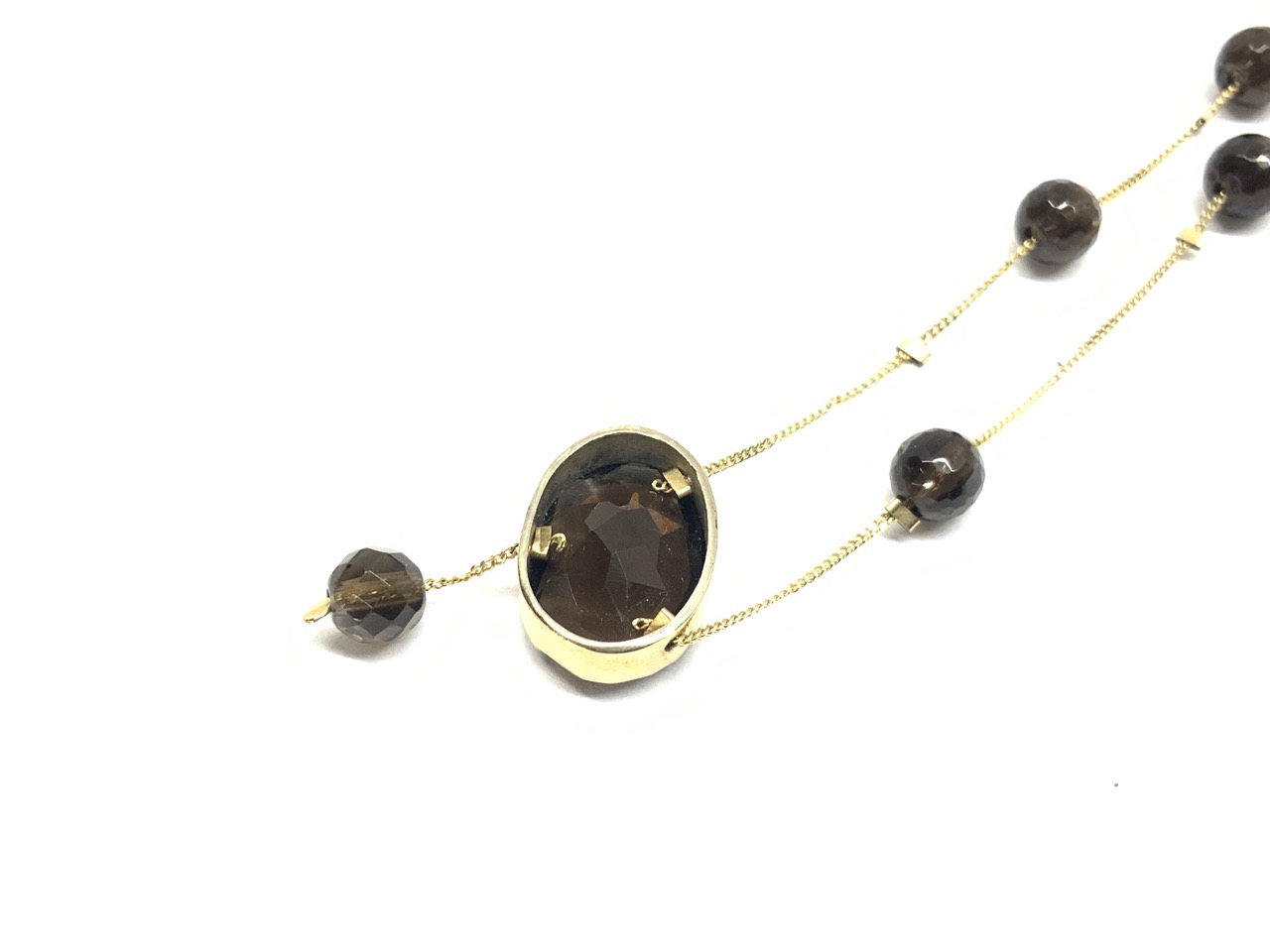 14k yellow gold high quality smokey topaz necklace.