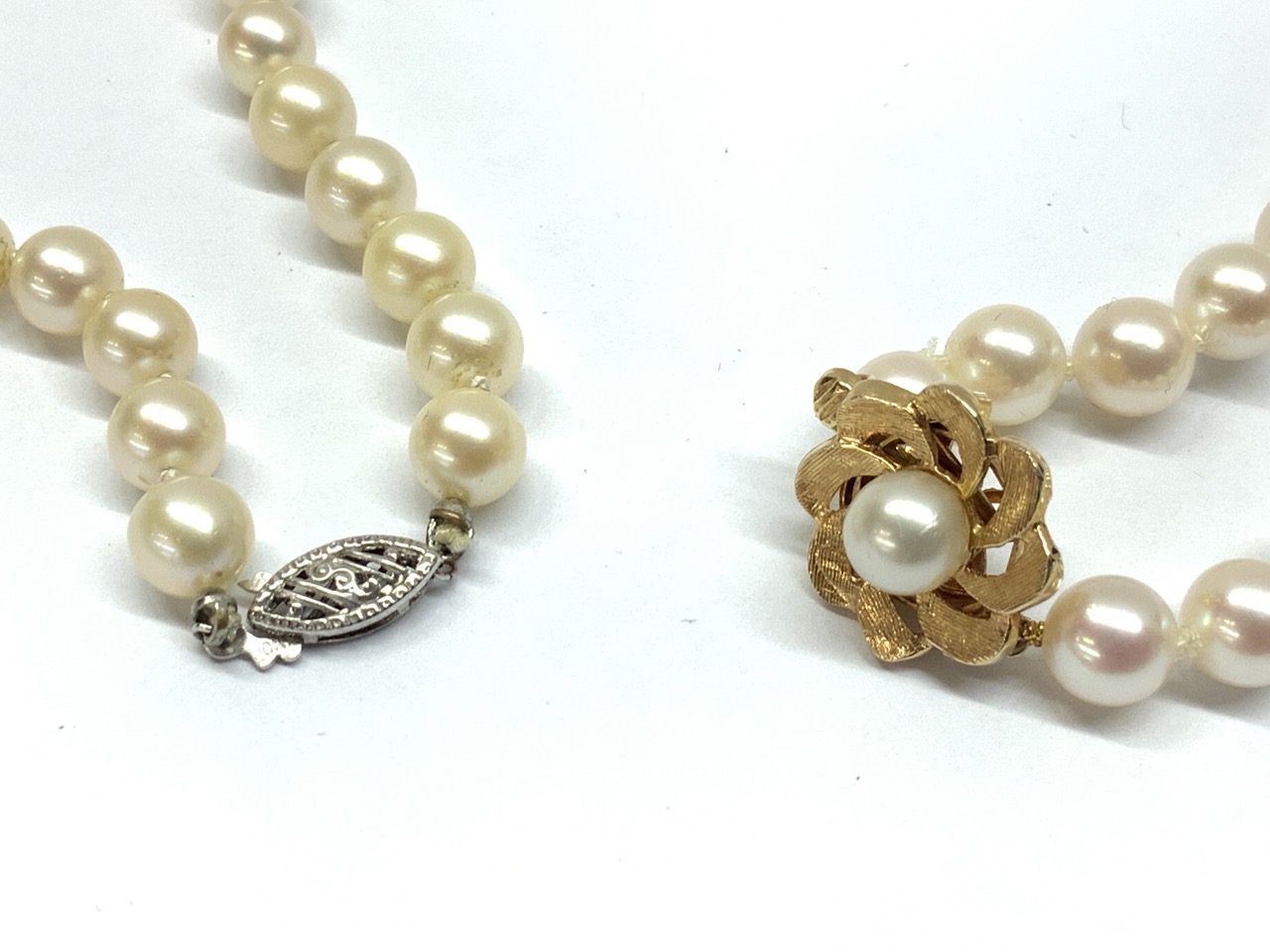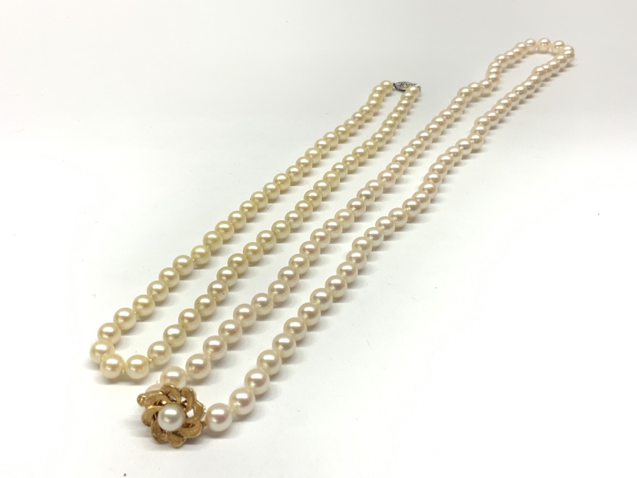 Two (2) Freshwater pearl necklaces with 14k gold clasps.