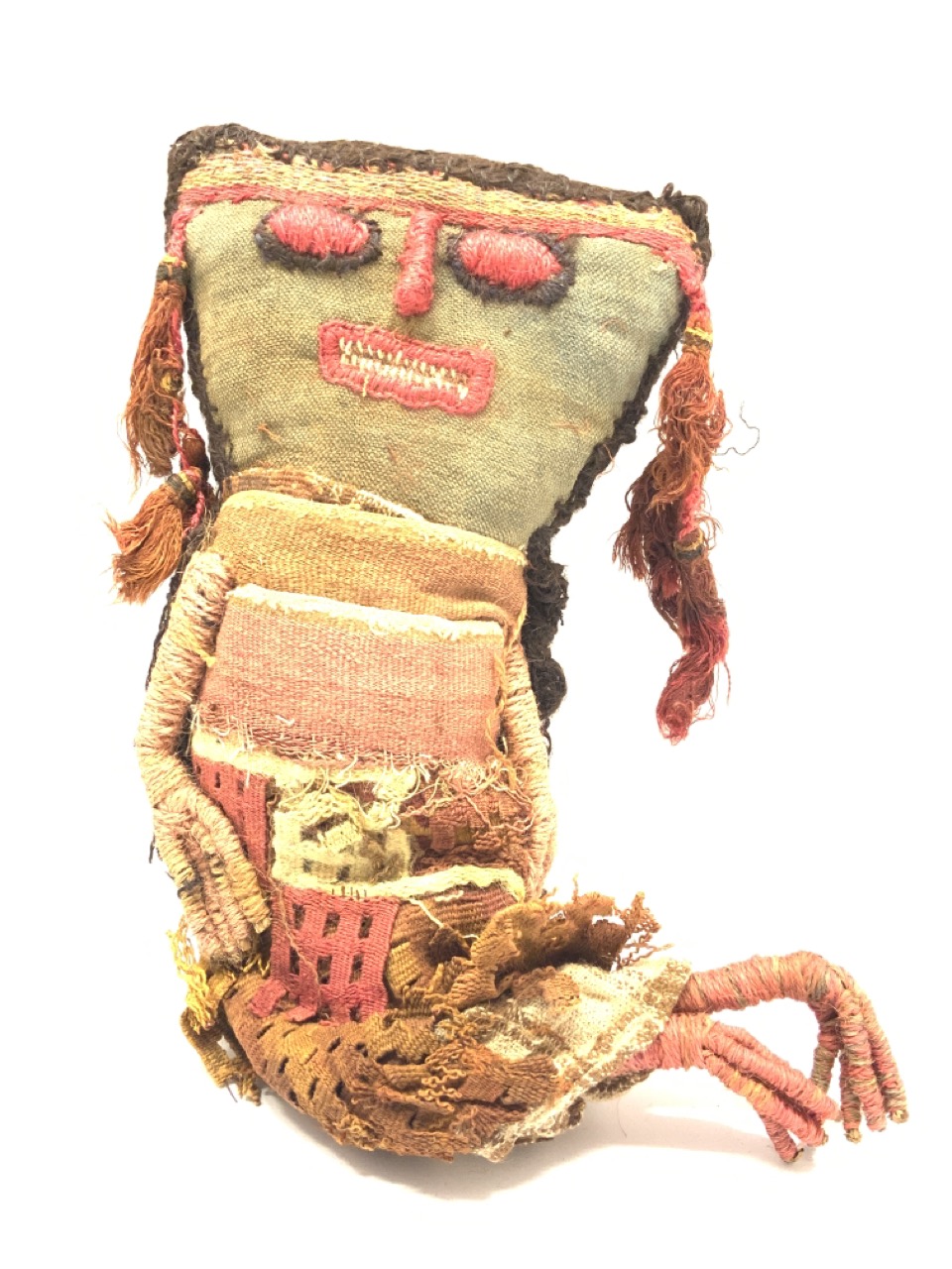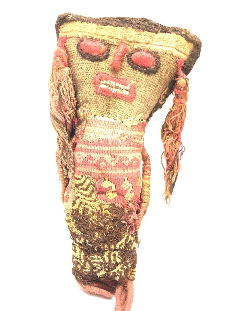 Two (2) ancient Chancay textile dolls. Peru, South American.