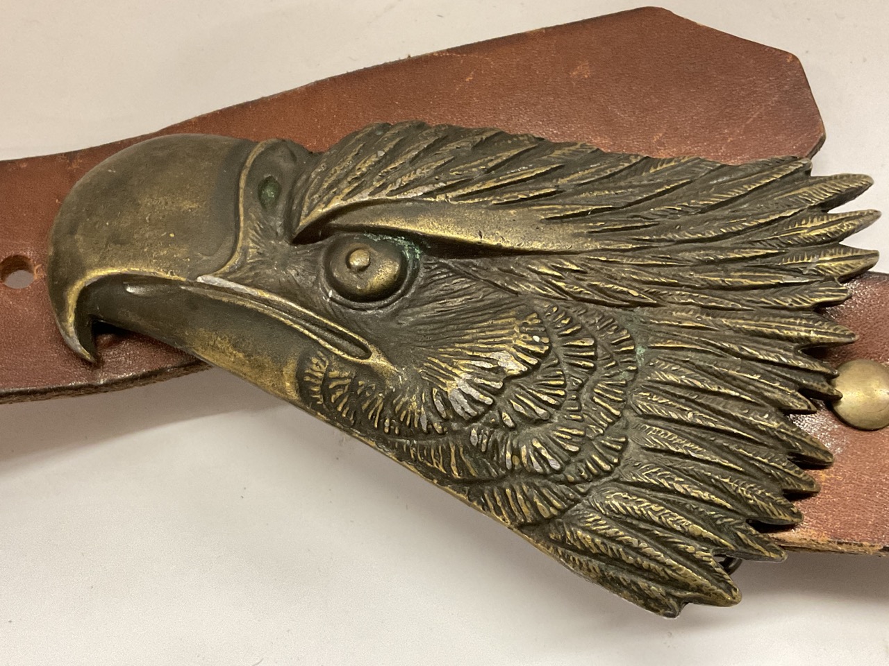 American Indian brass belt buckle. Signed (please see images)