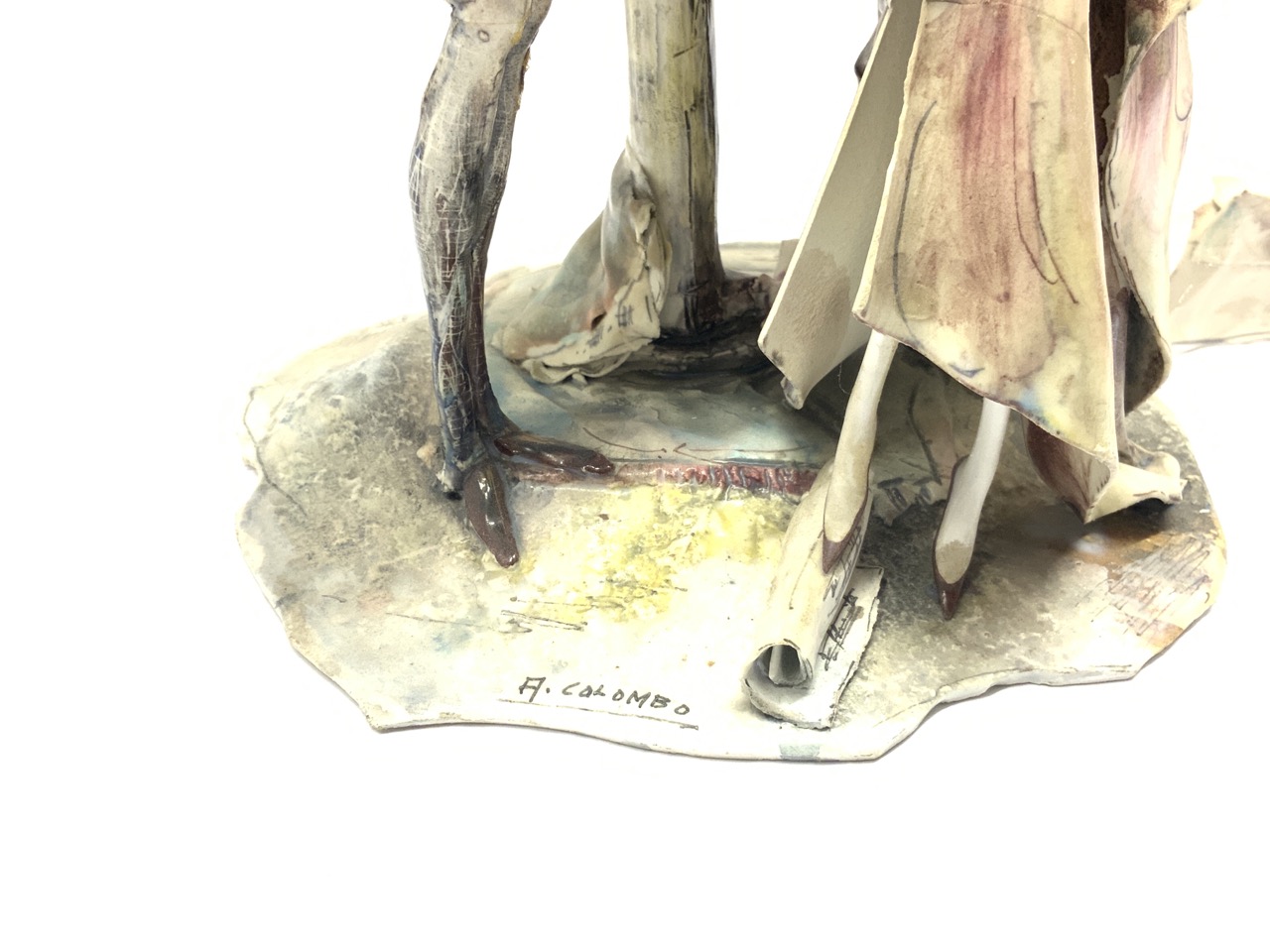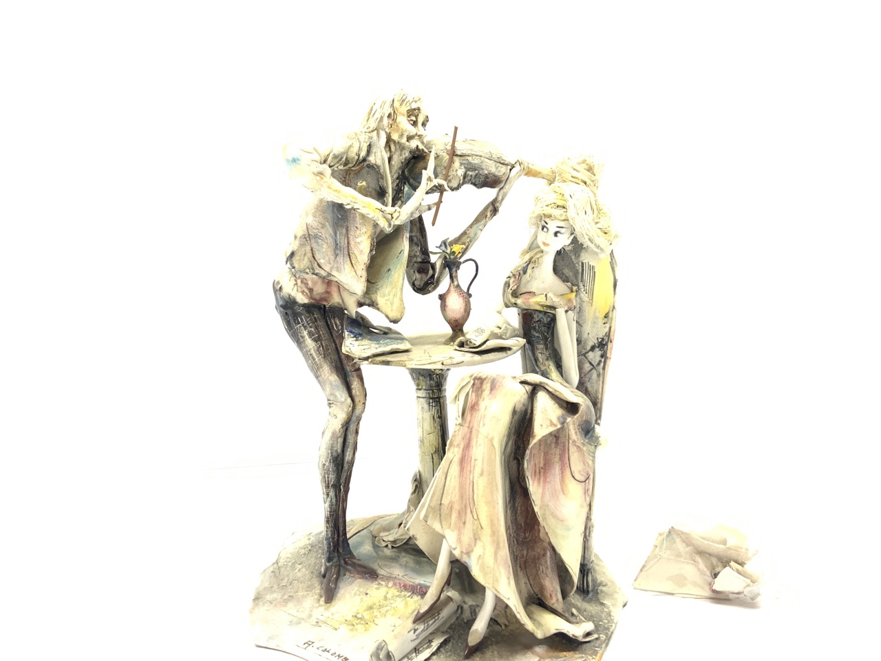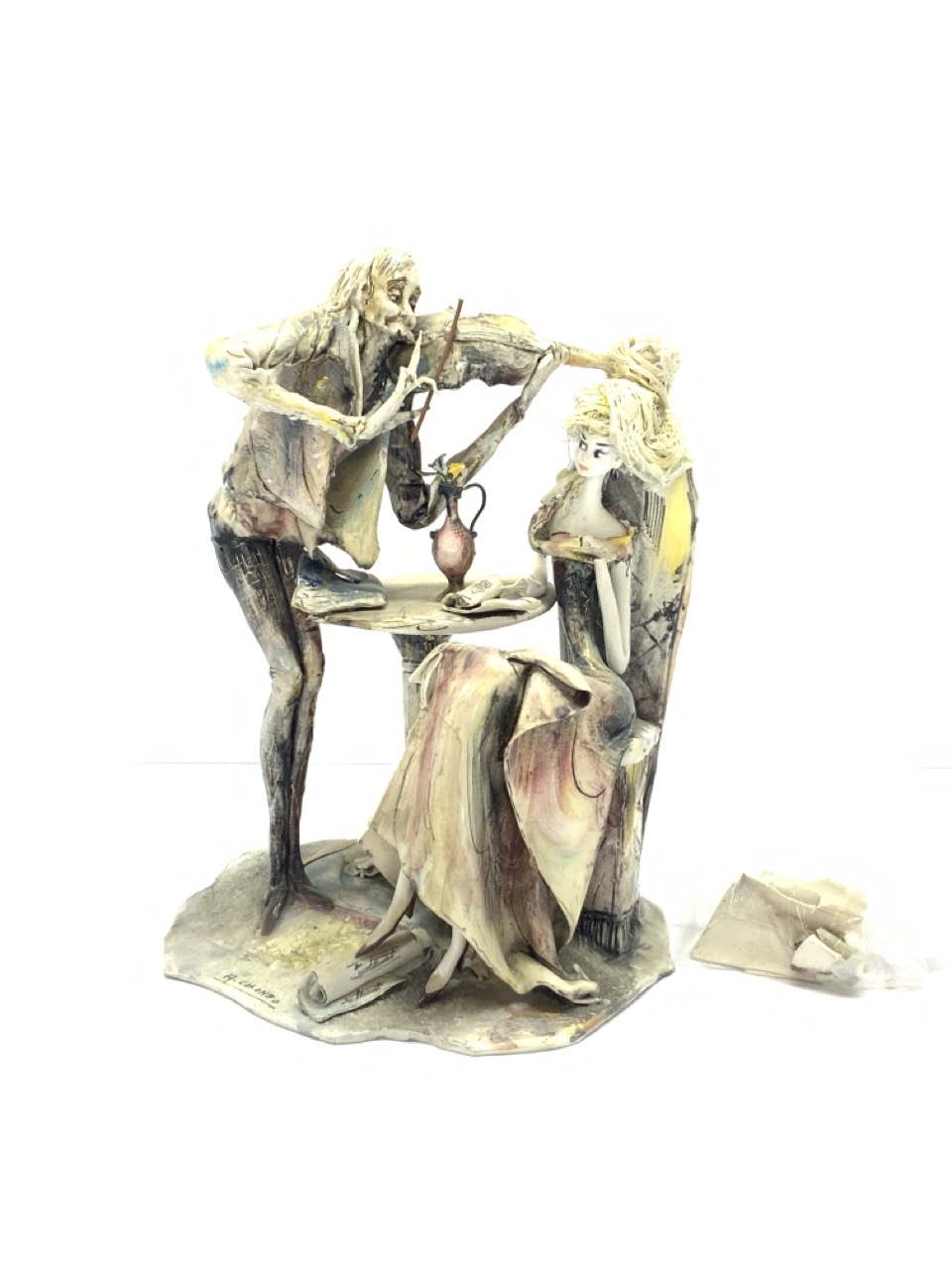 Adriano Colombo Man with Violin & Woman Ceramic Sculpture, Lo Scricciolo
