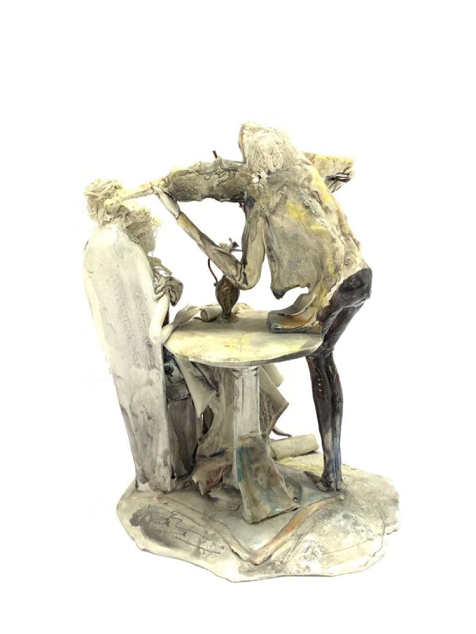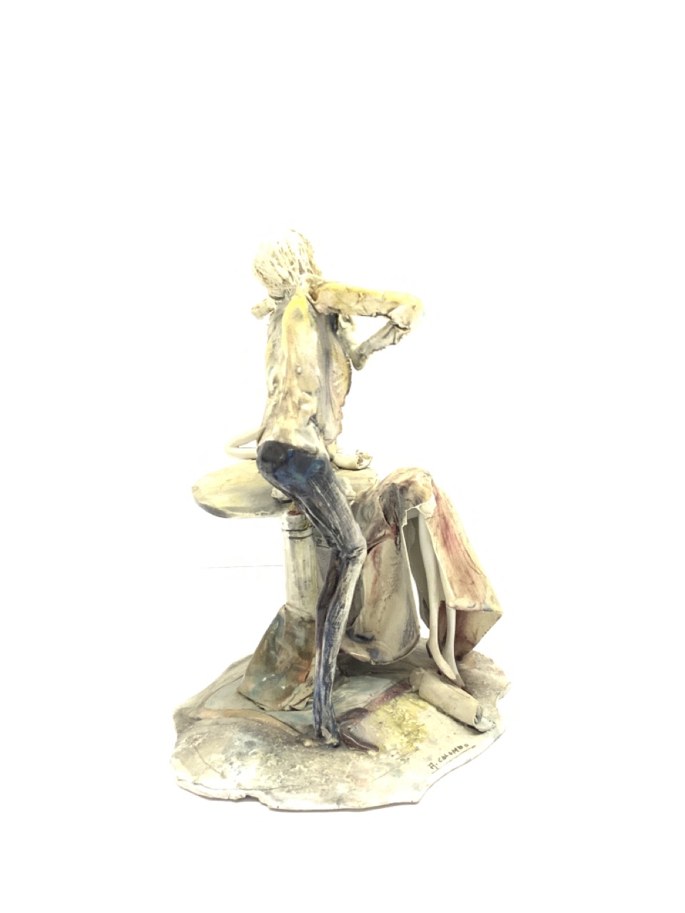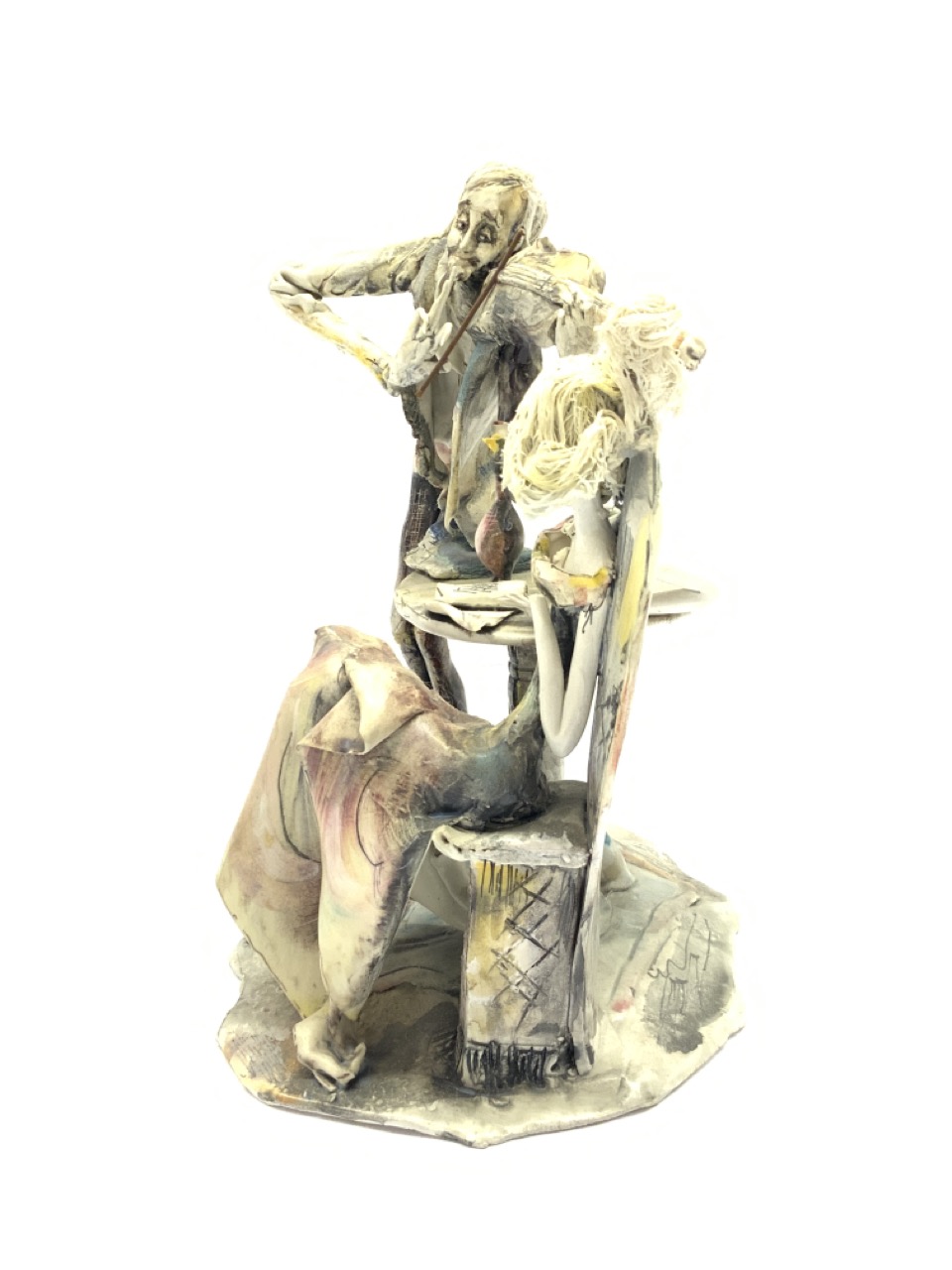 Adriano Colombo Man with Violin & Woman Ceramic Sculpture, Lo Scricciolo
