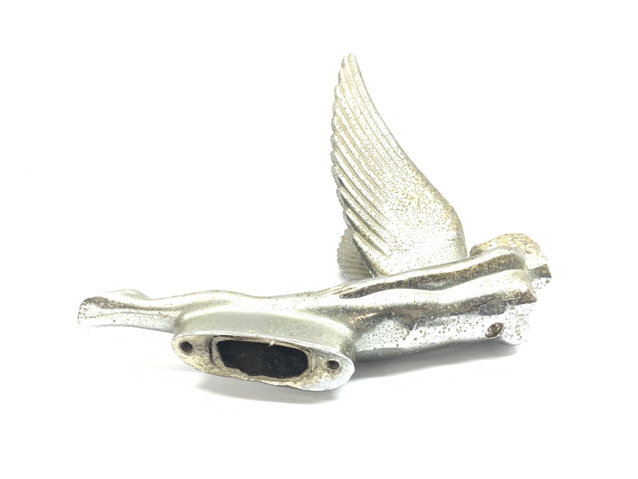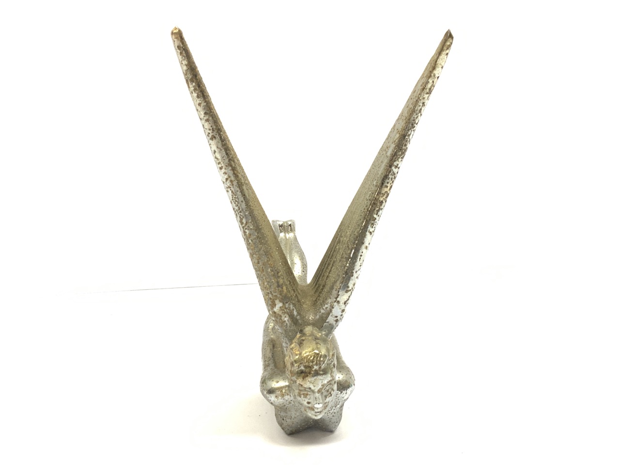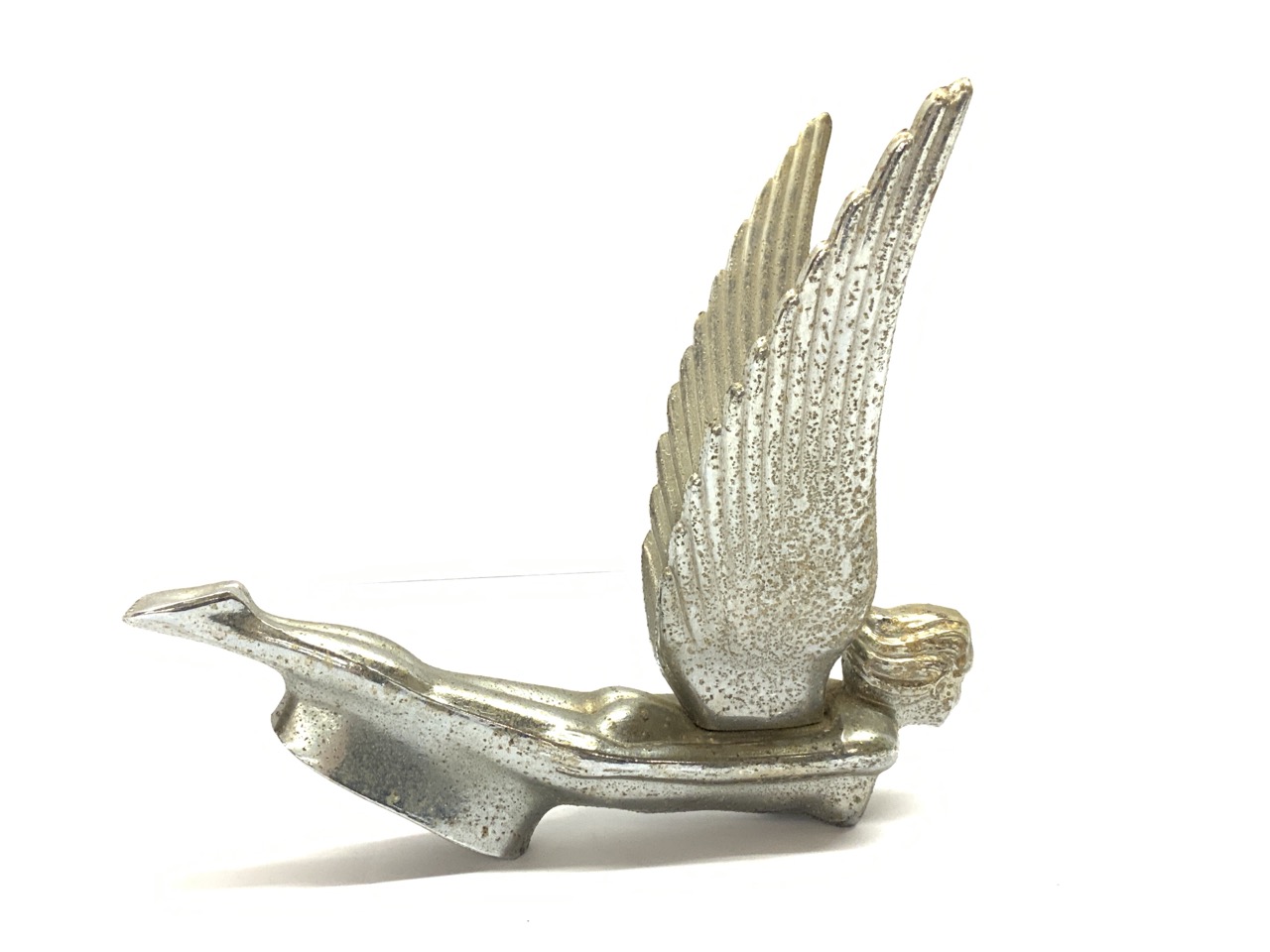 Vintage winged figural flying goddess hood ornament.