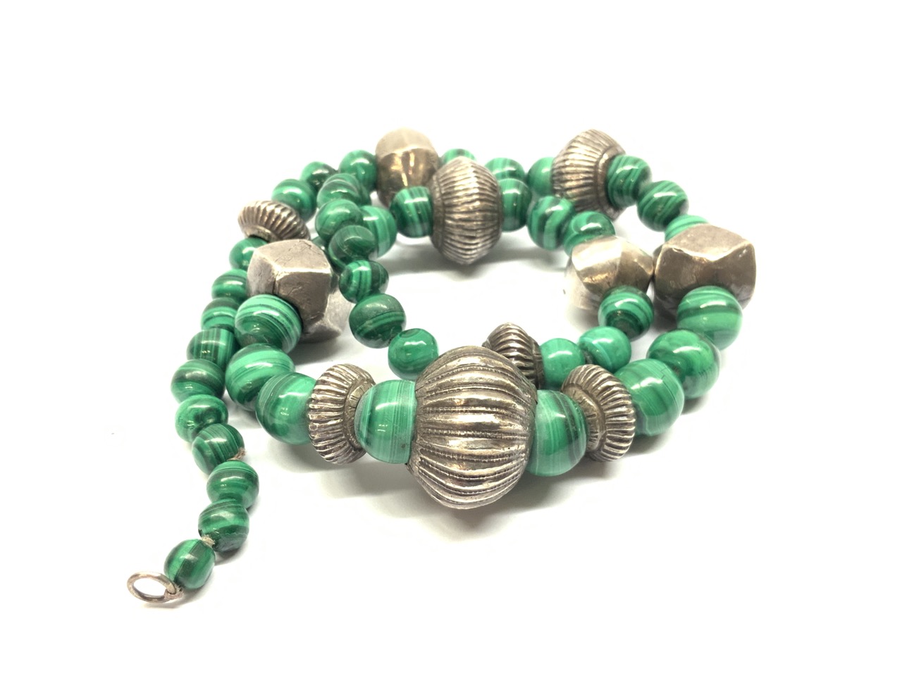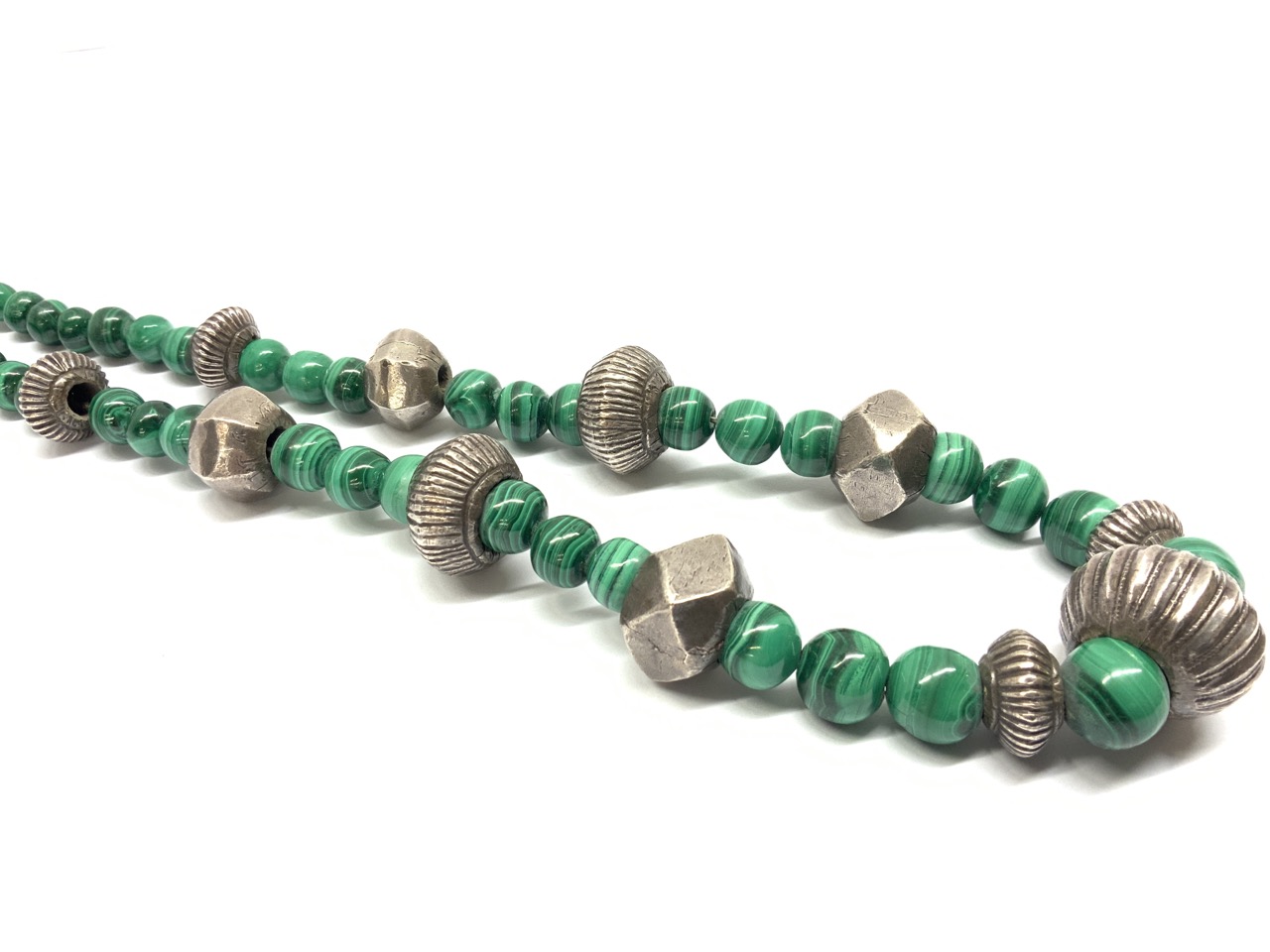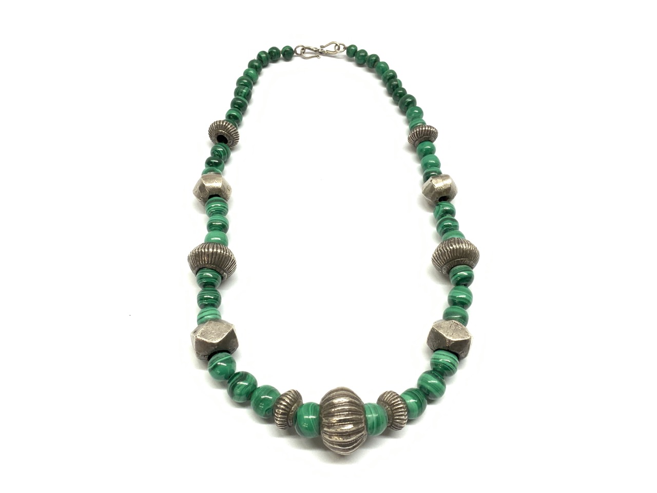 Sterling silver and malachite Indian necklace.