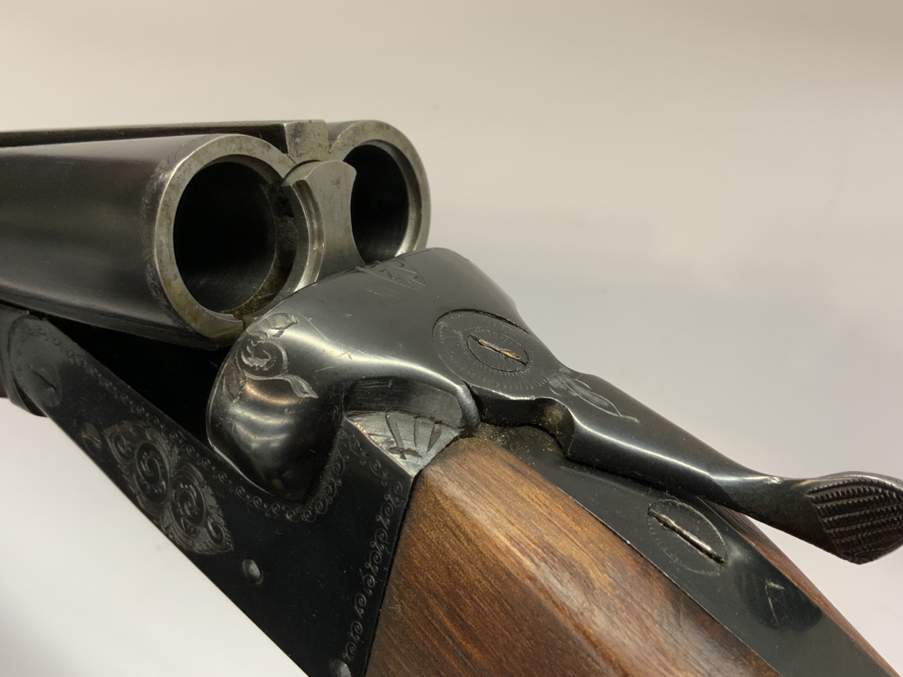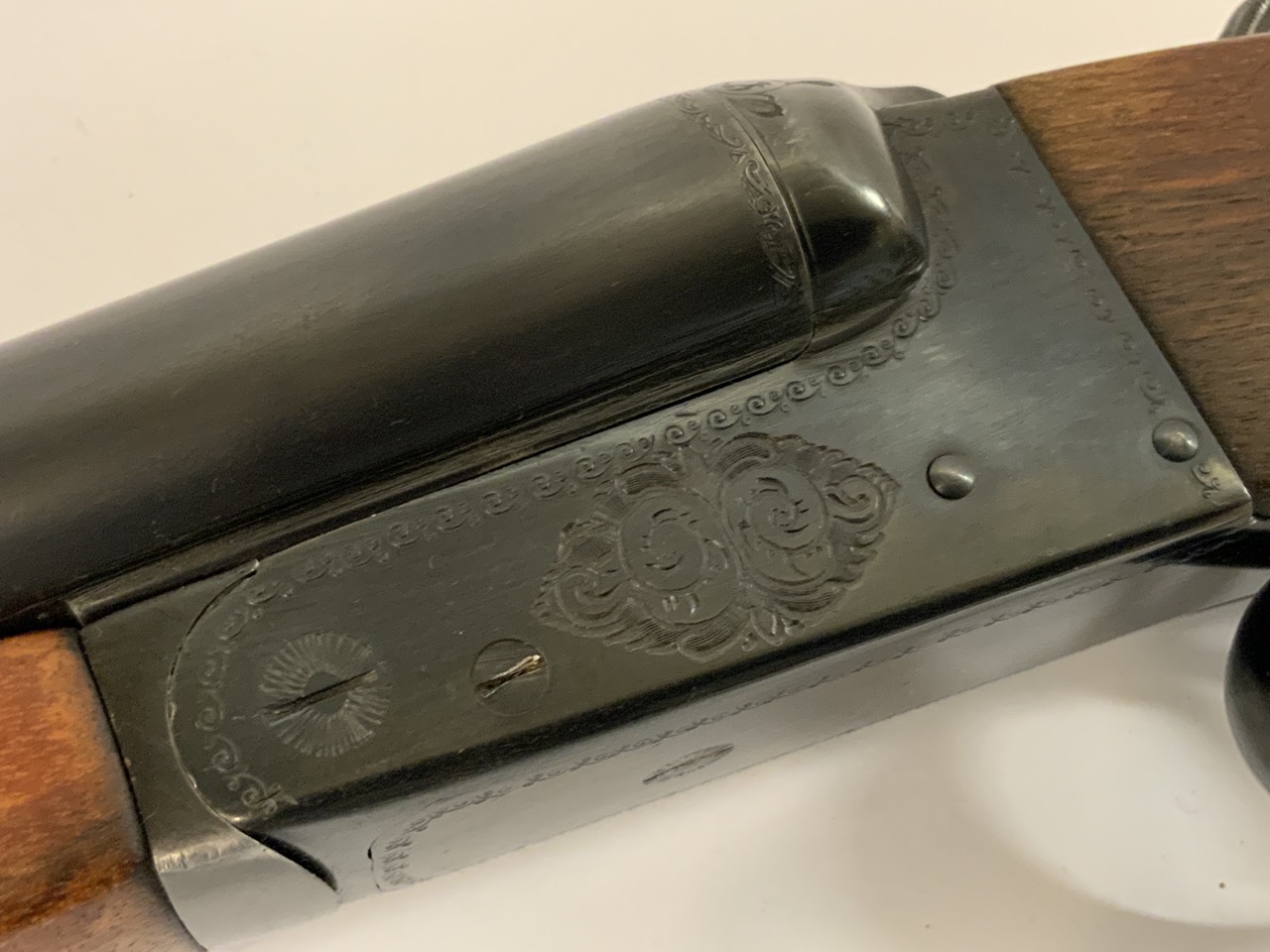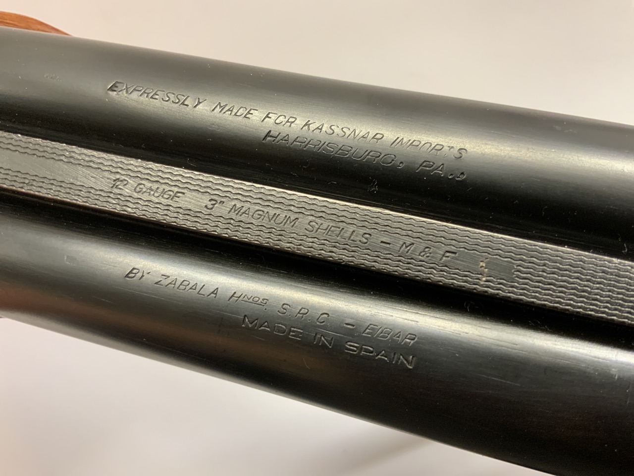 Zambala Hnos. S.R.C. 12 Gauge Double Barrel Shot Gun. Specially made for Kassnar Imports. Ornately etched on receiver, barrels and trigger guard.