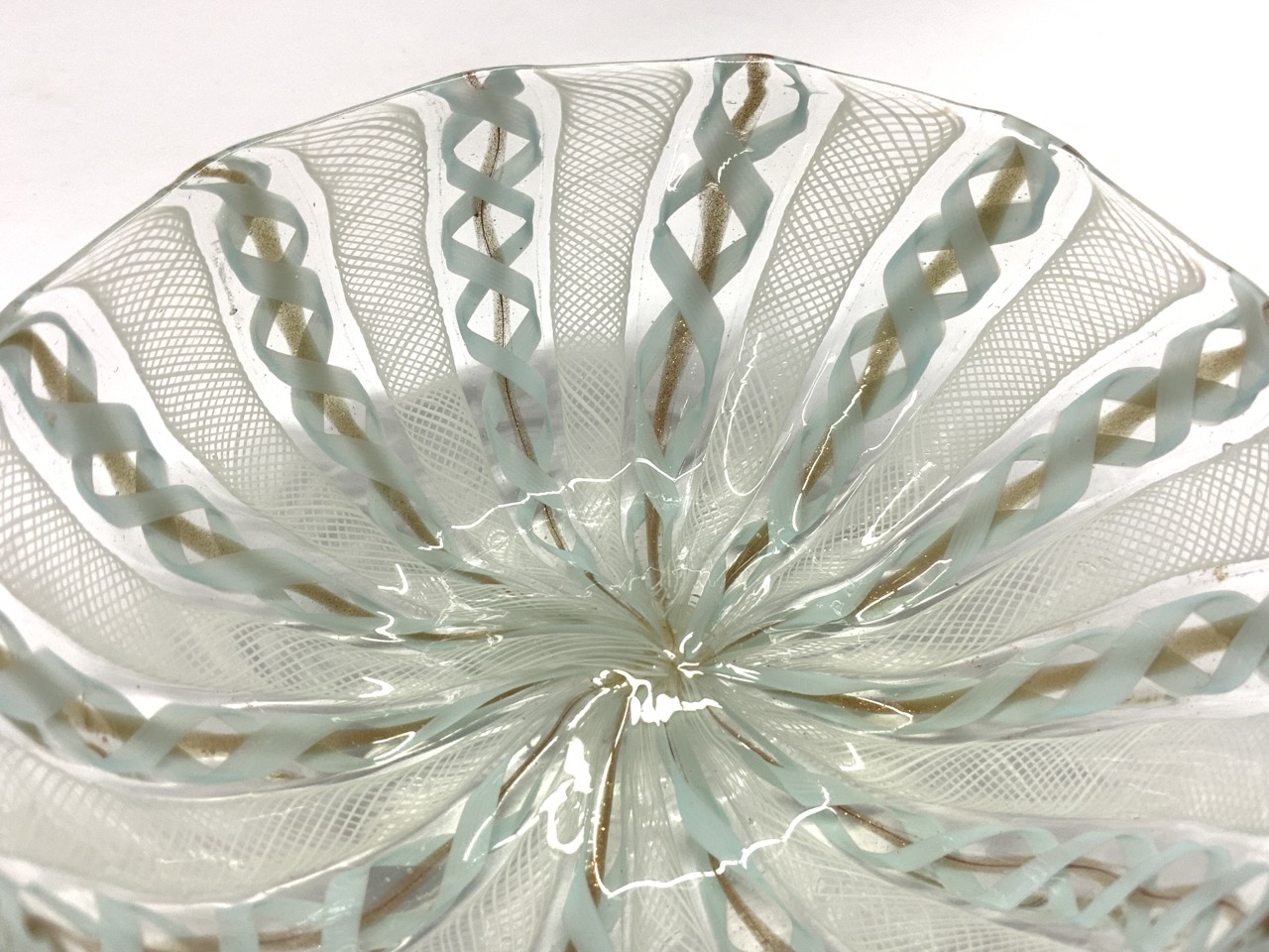 Venetian Latticino 1950's glass bowl.