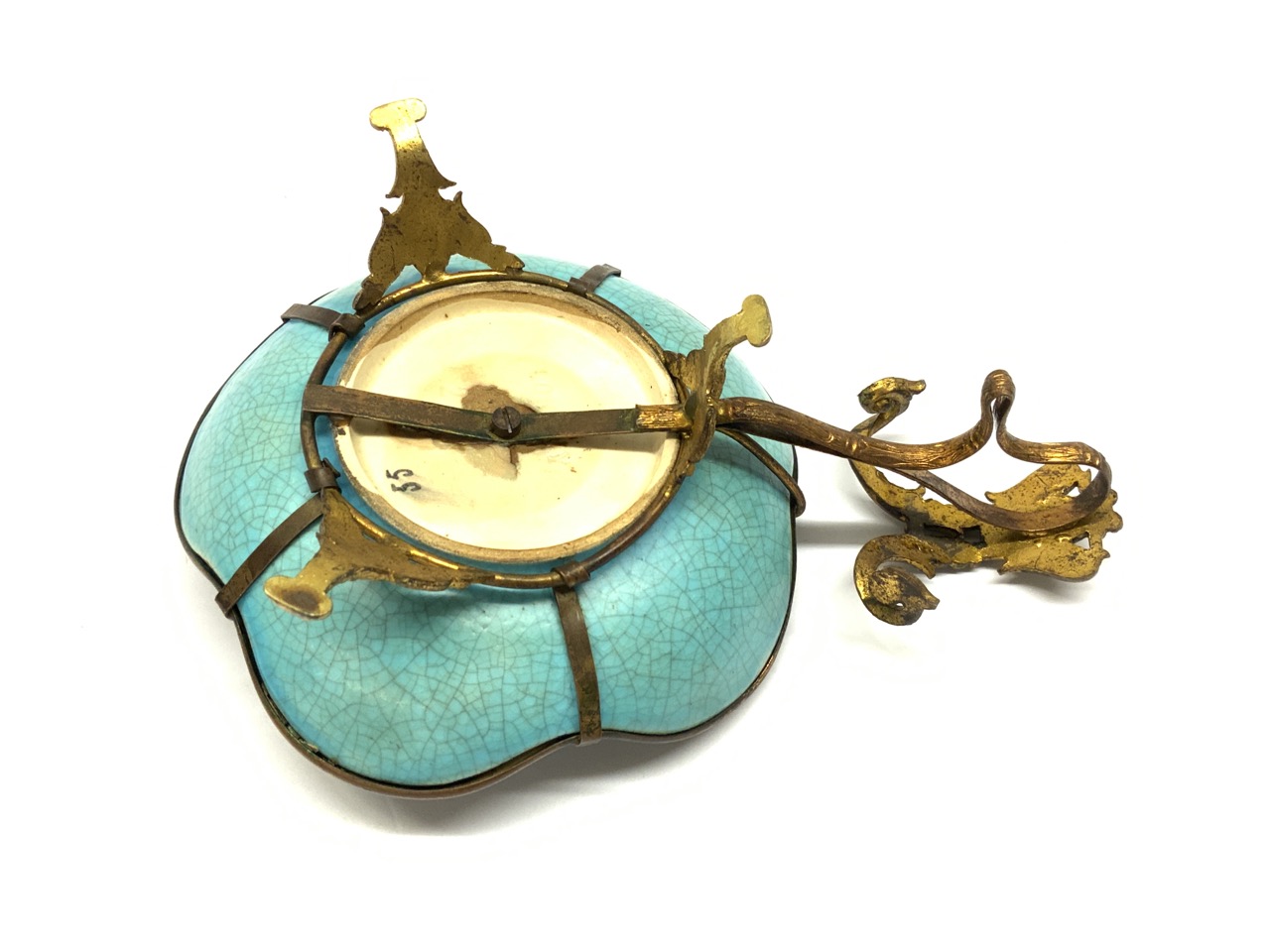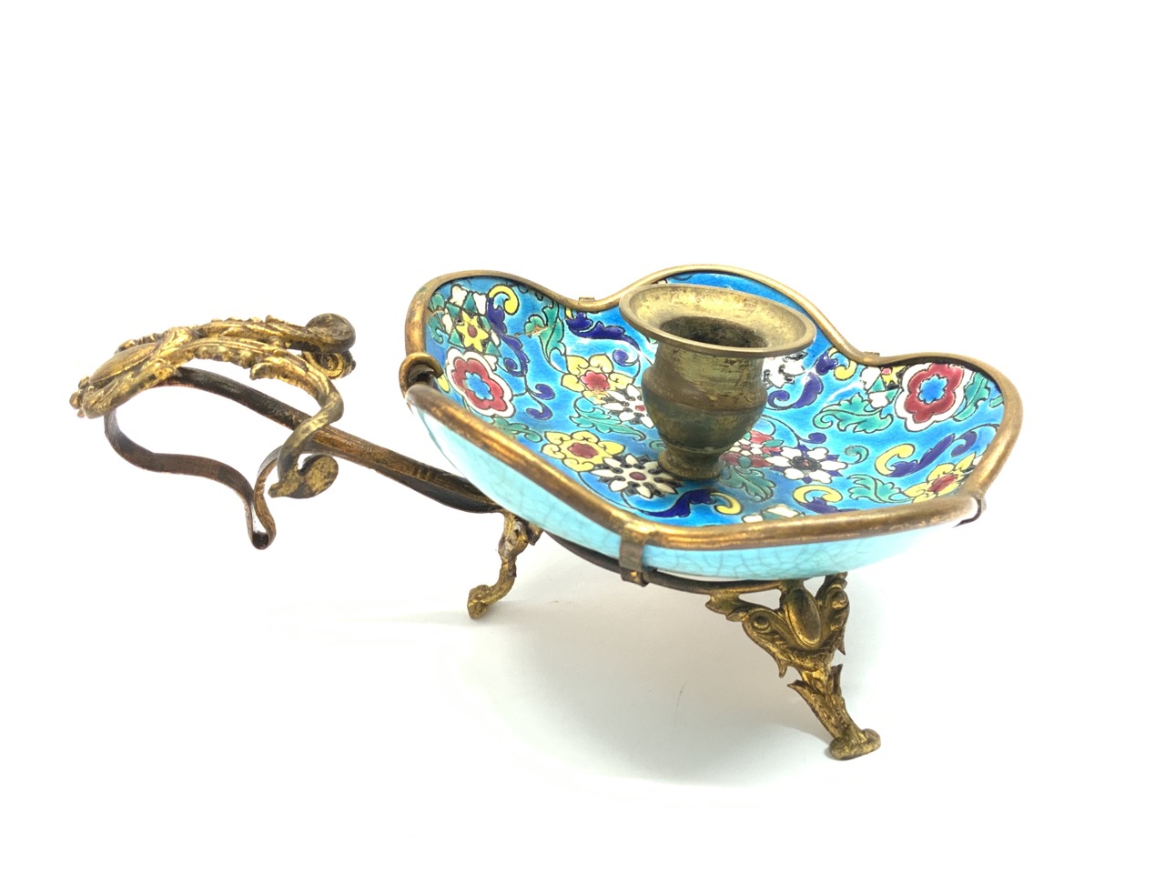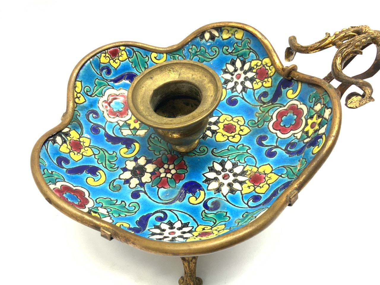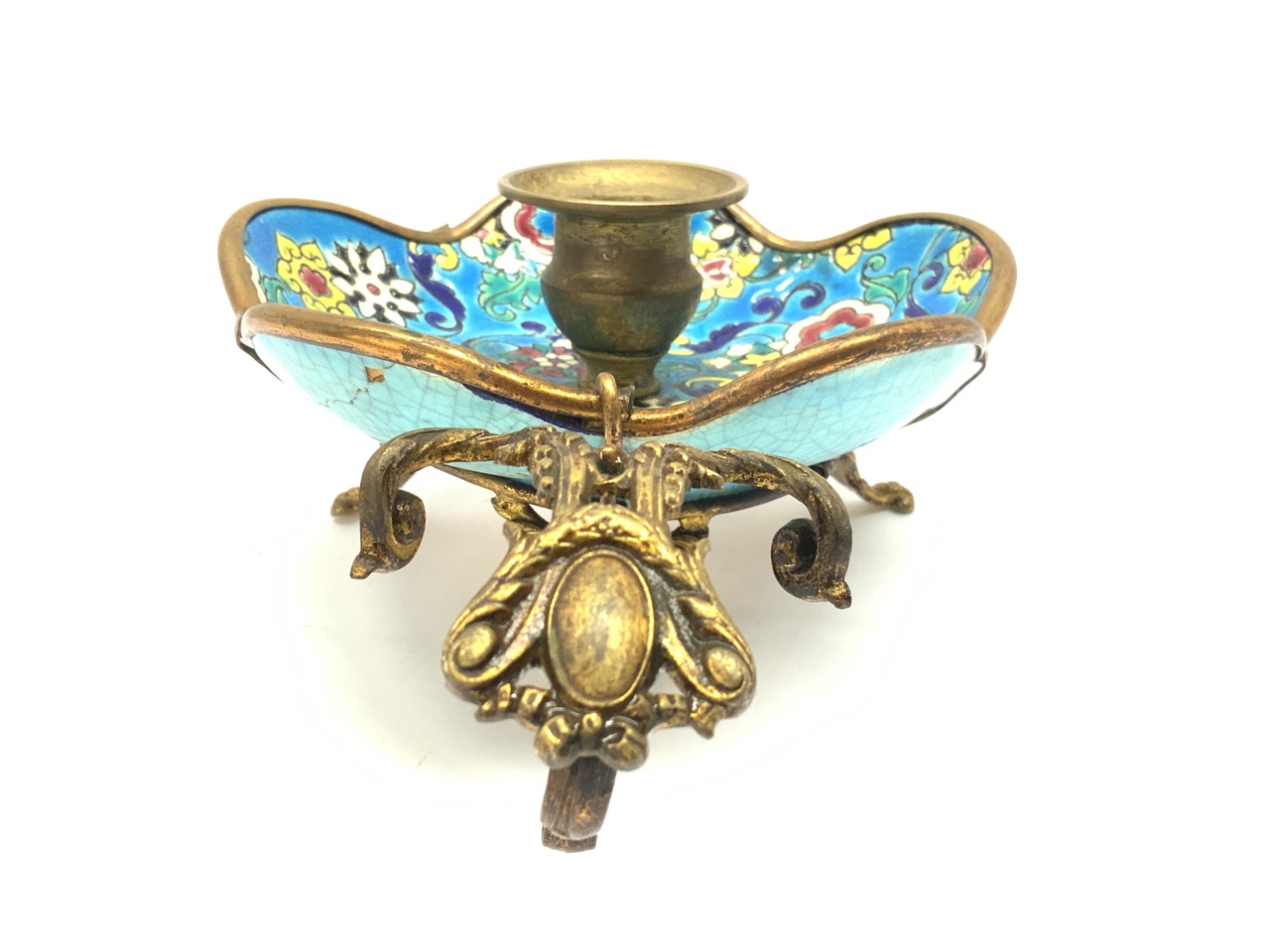 Longwy French porcelain candlestick holder. 19th century. Signed at base.