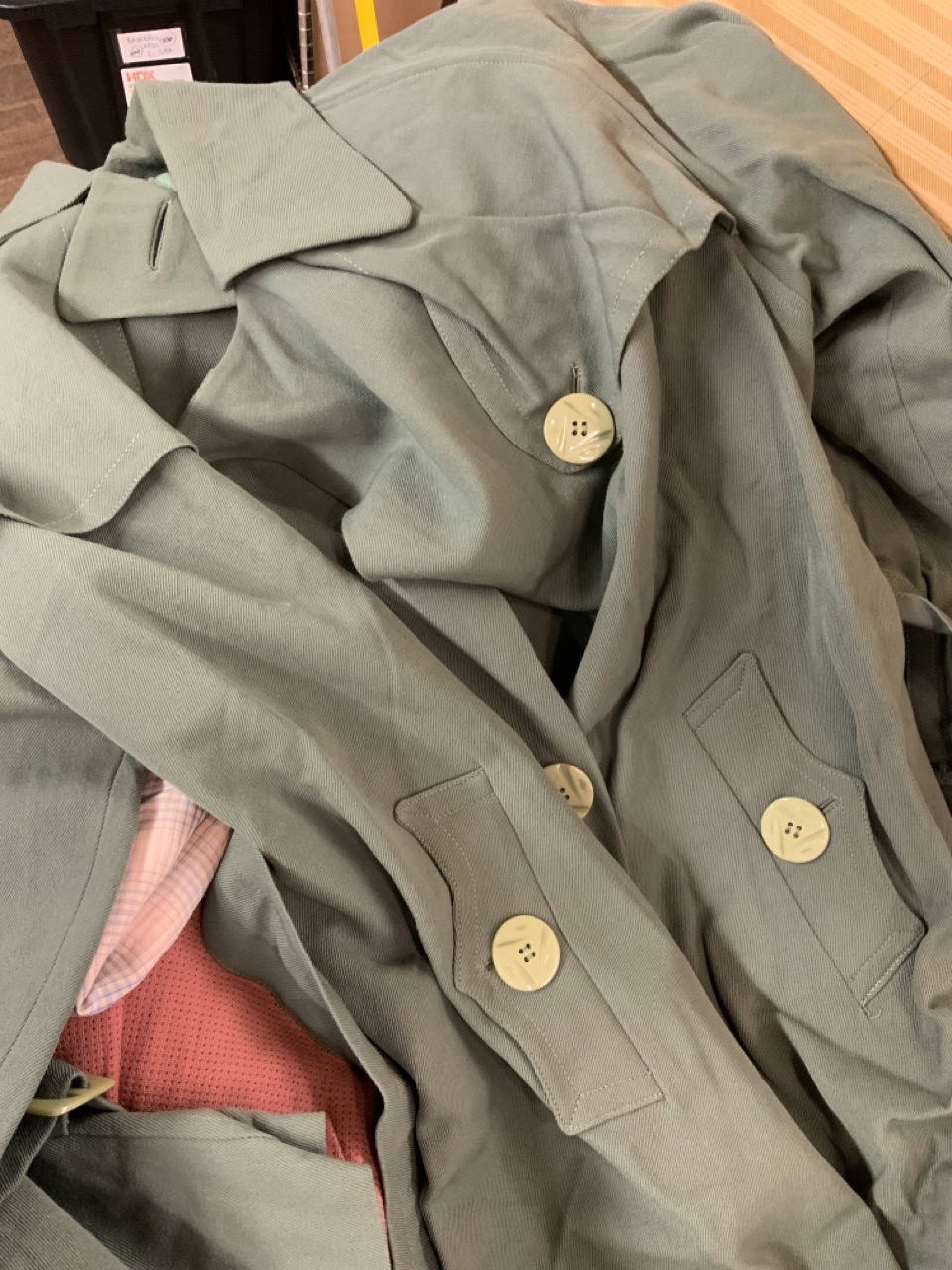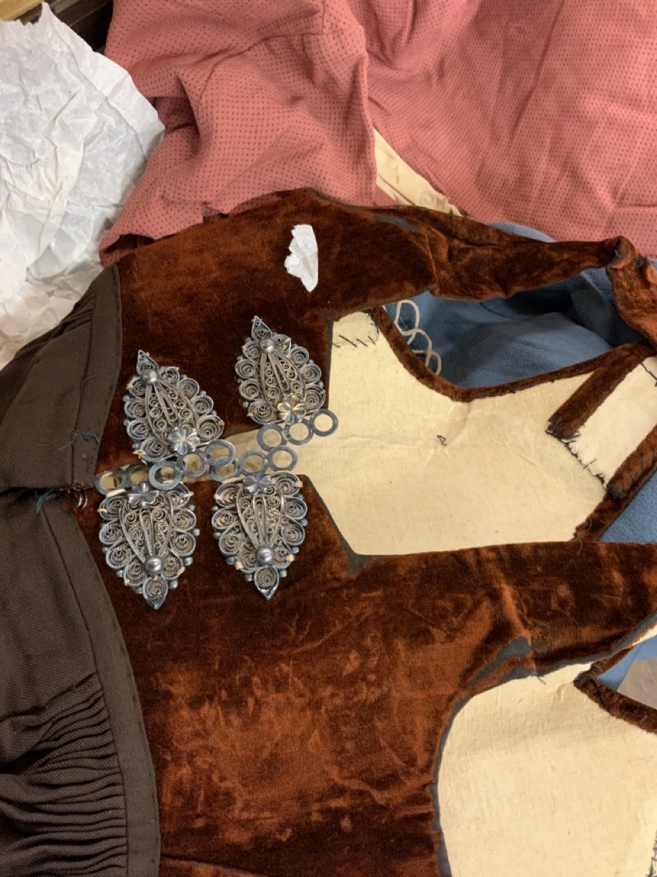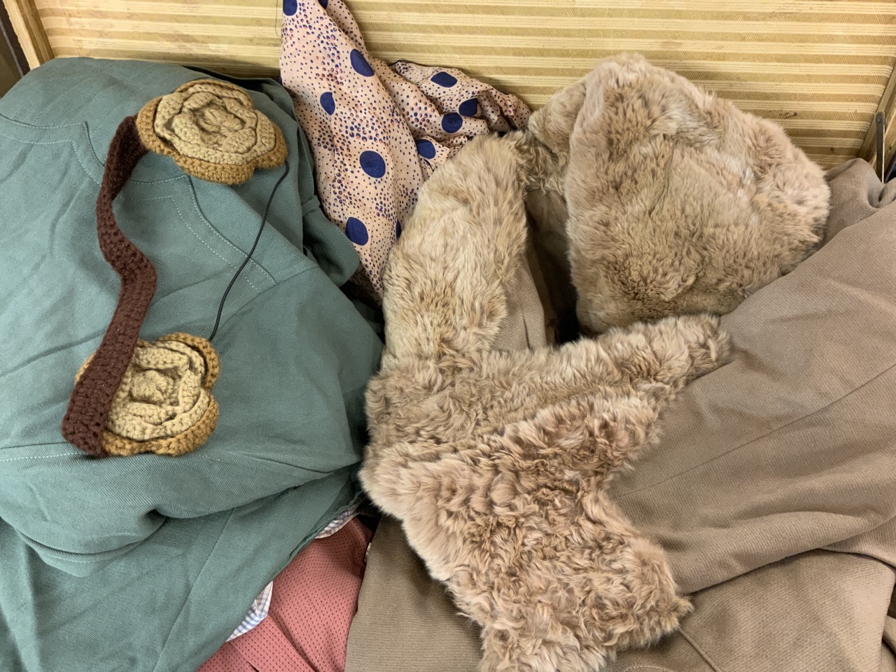 Trunk of early 1900's clothing. 1920's wool dresses, silver embroidered dresses with silver clips, assorted tops etc. Please see photograph preview or call. Sold As Is. Expect damage.