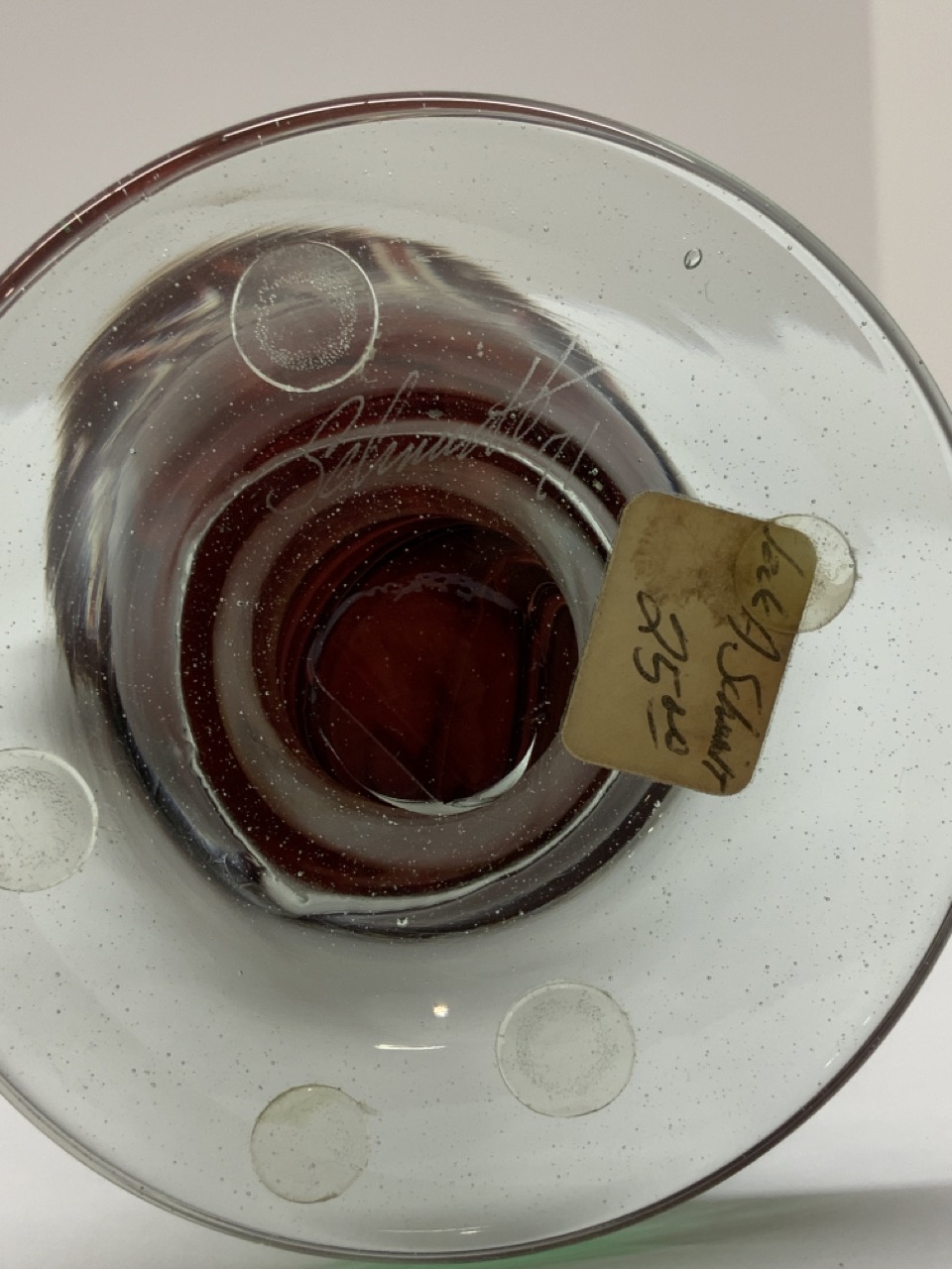 Jack Schmidt c.1971 abstract studio art glass vase.