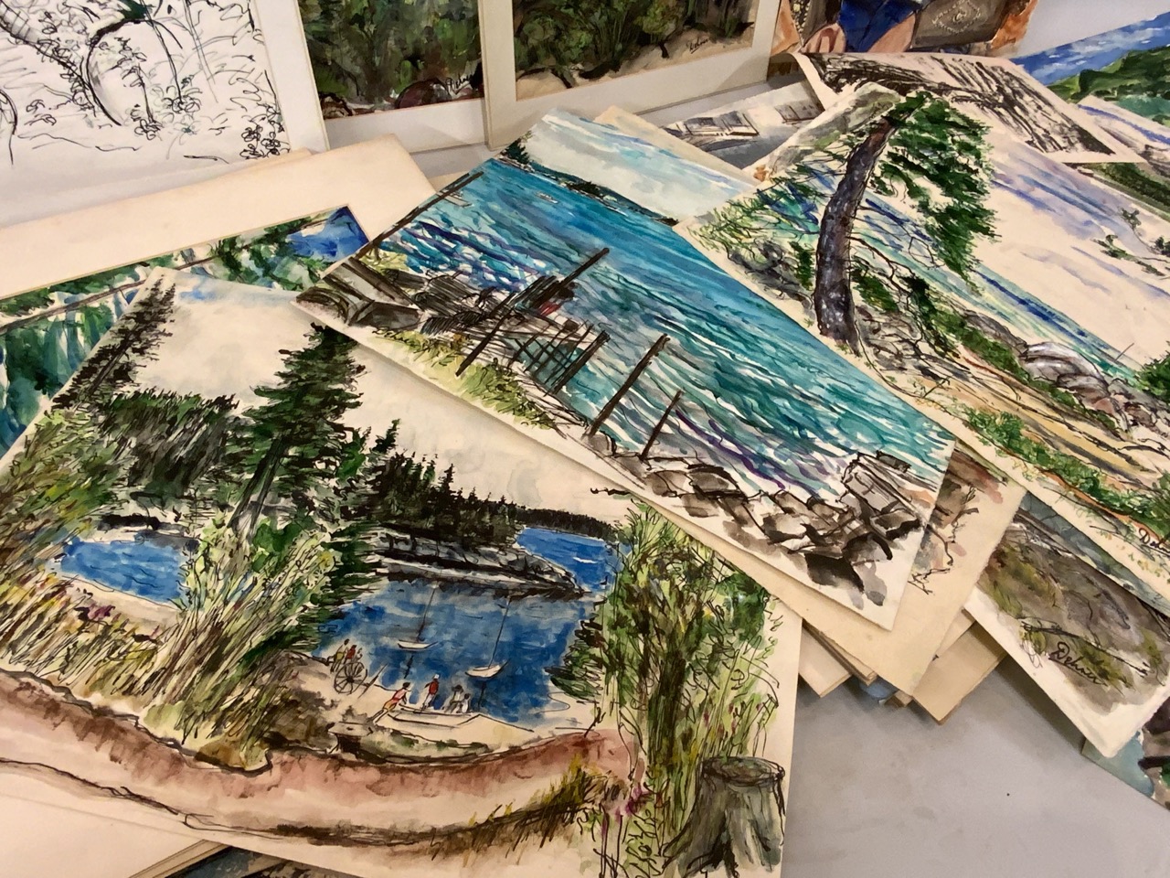 Walt Dehner (American, 1898-1975) More than 75 watecolors on paper by artist. Including Taxco, Mexico, Canadian Rockies and Maine c.1930's-1960's. As seen in photograph preview.