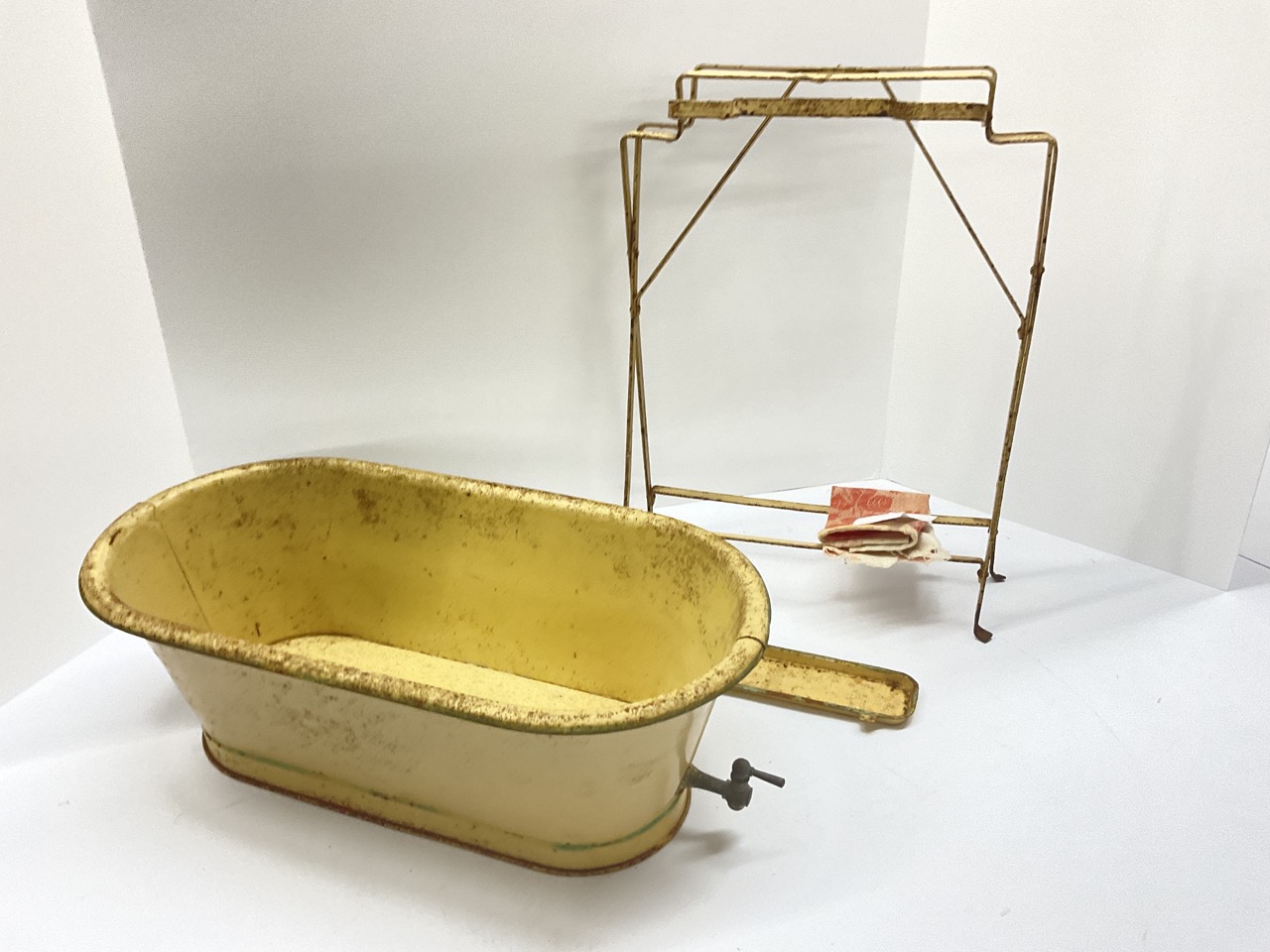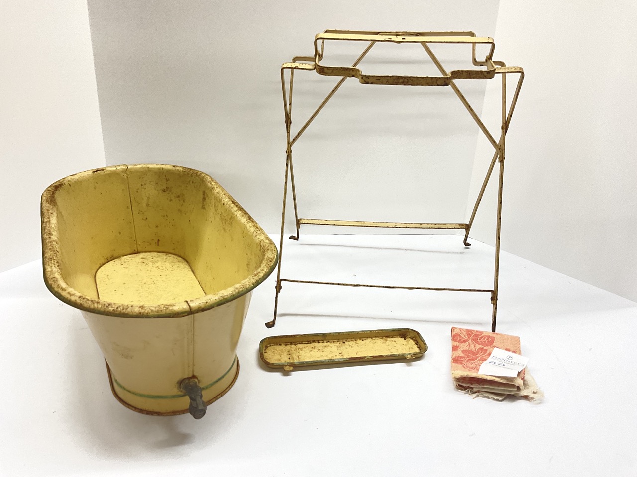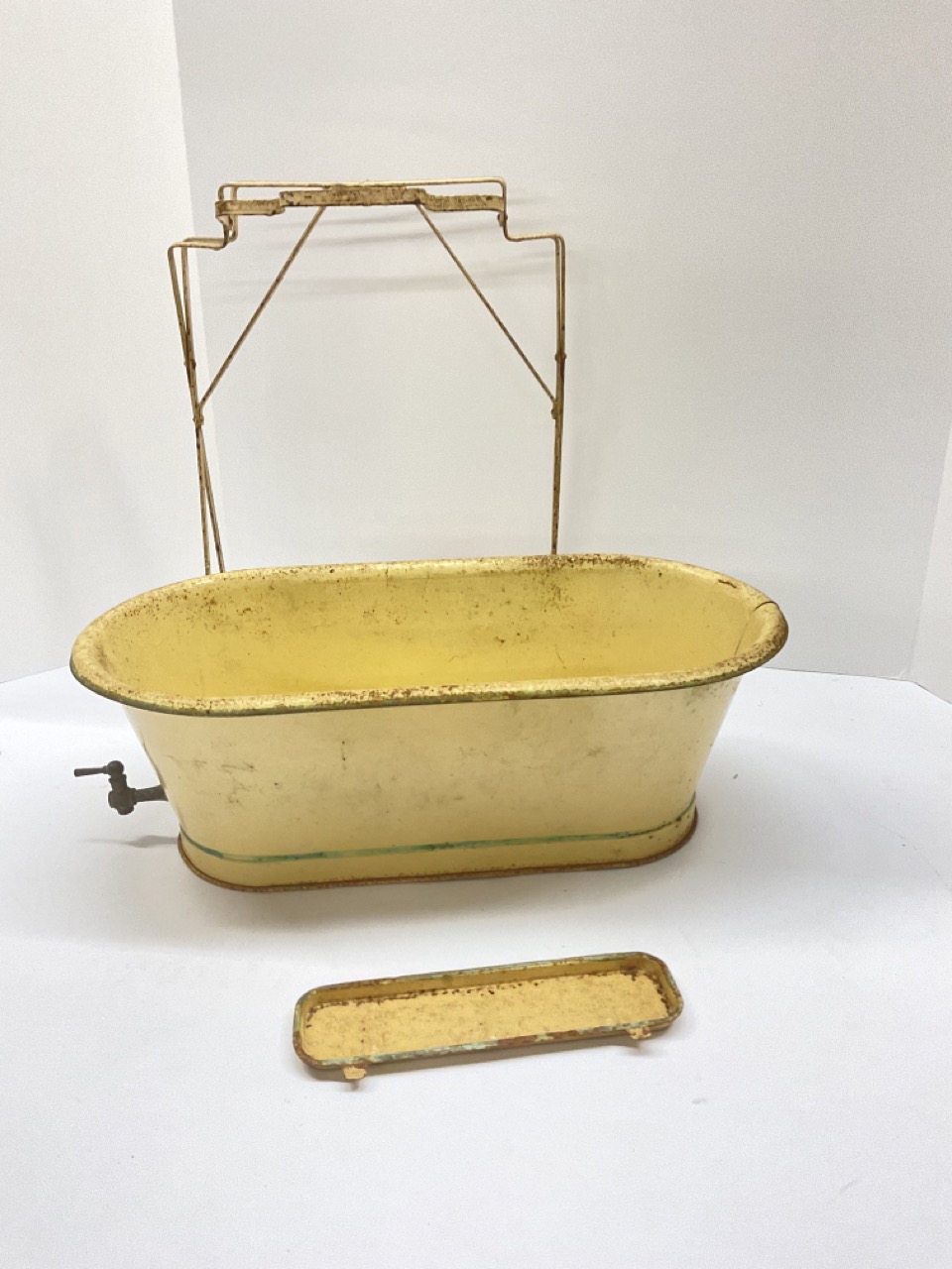 TVintage Miniature Tin Bath Tub With Stand For Doll
