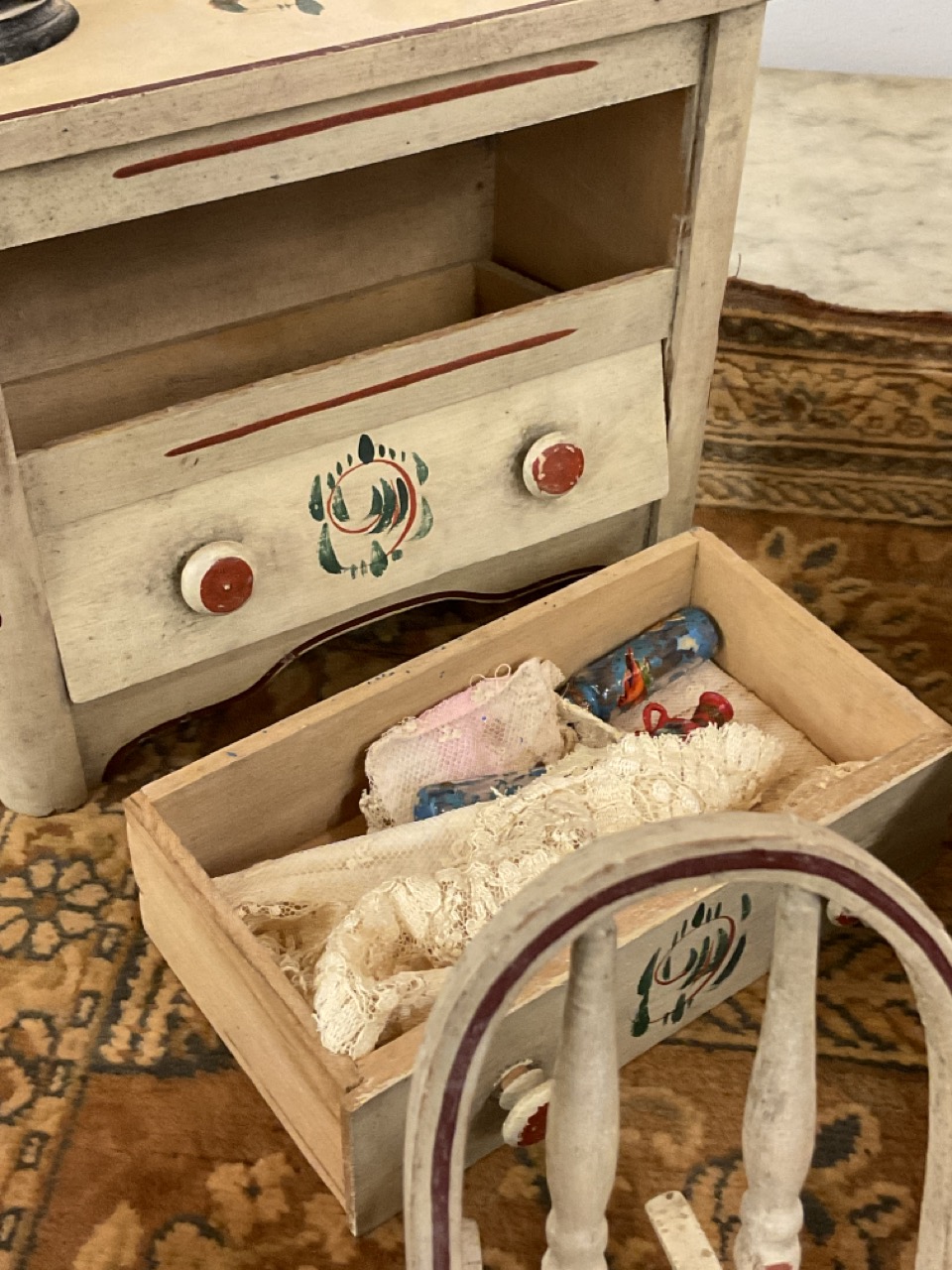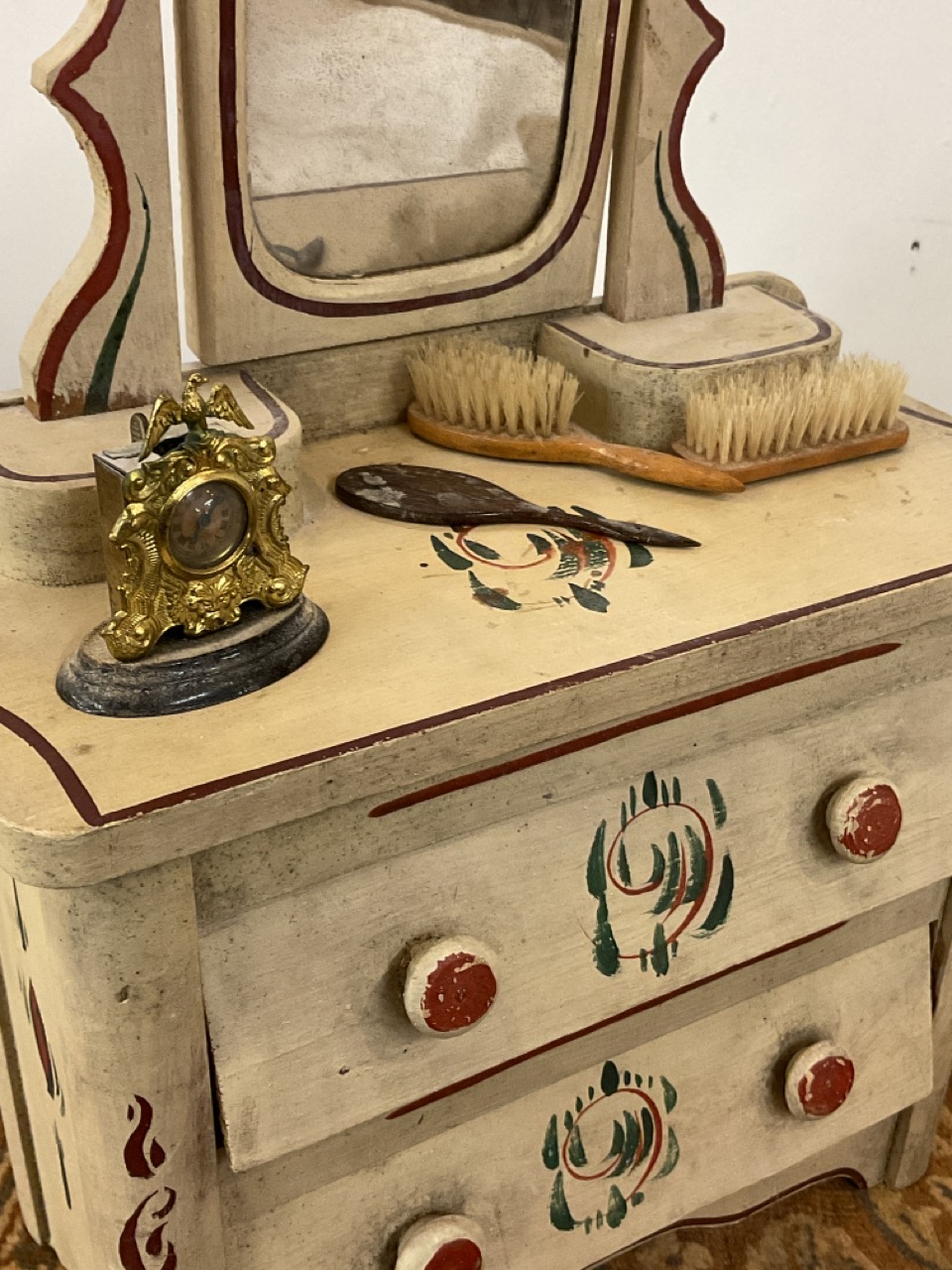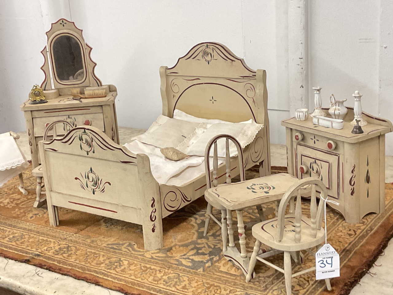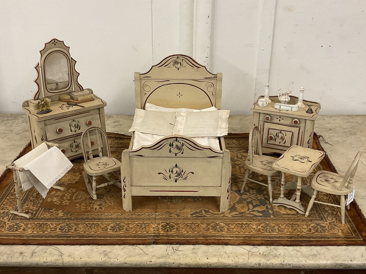An exceptional child's 19th century American dollhouse miniature bedroom suite.