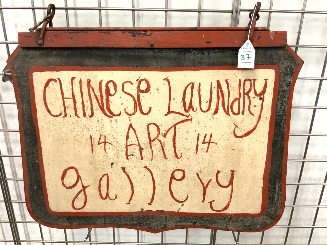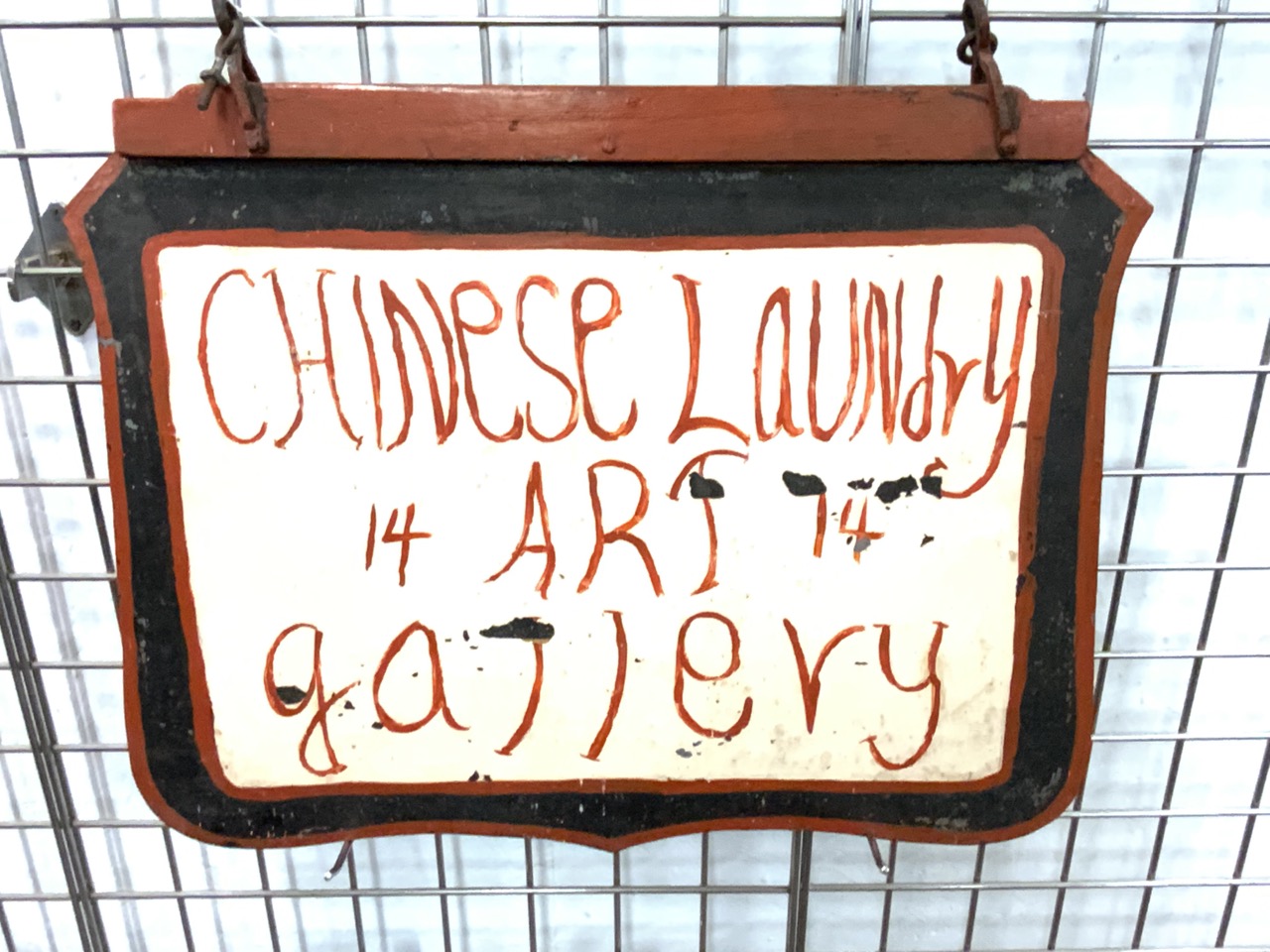 Metal Sign Handwritten "Chinese Laundry Art Gallery"