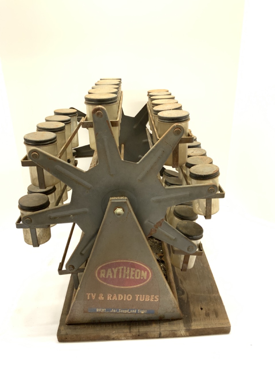 “Raytheon TV & Radio Tubes…. Right for Sound and Sight. Holds 48 jars total.