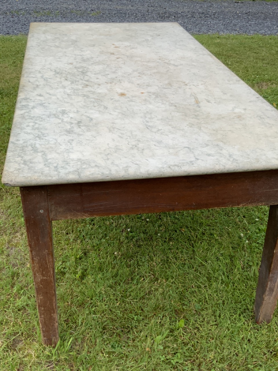 A 19th c. Country Rectangular Marble Top Farm Table.