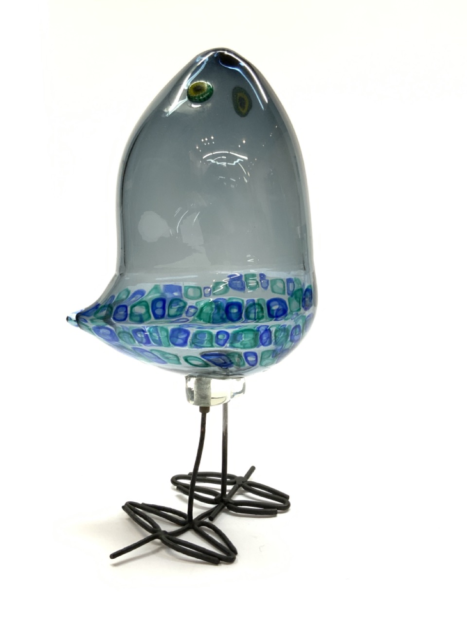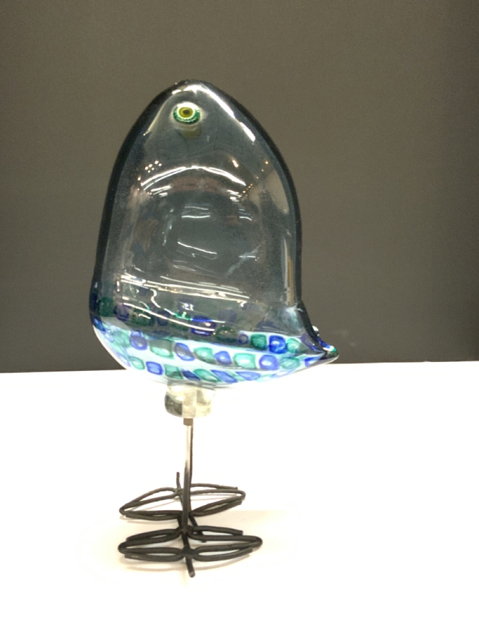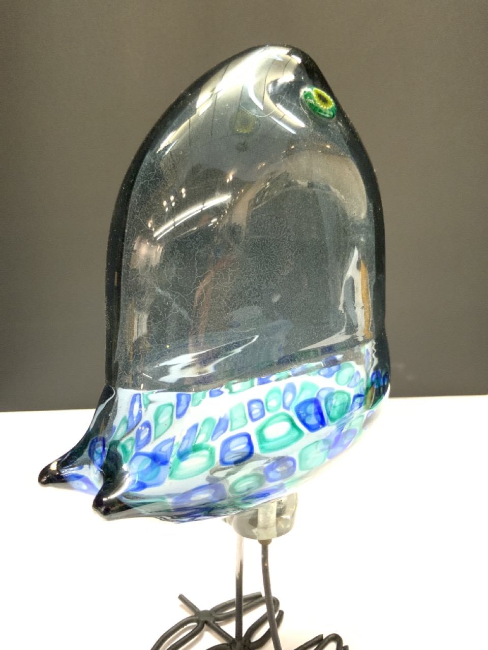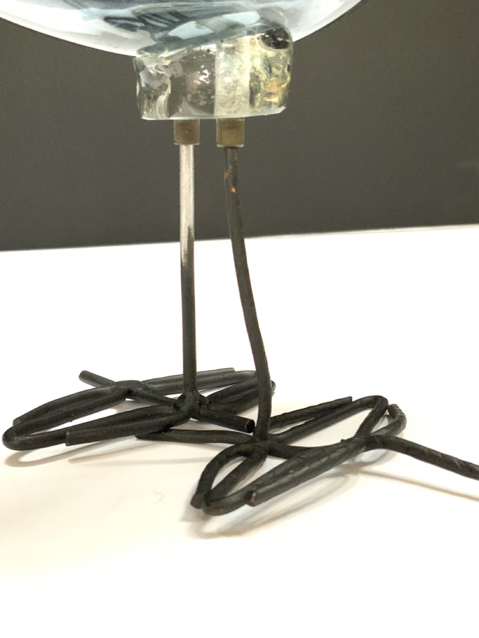 Condition: One leg was lost during move. A custom second leg was made to match. Some haze inside glass. No chips, cracks or repairs to glass.