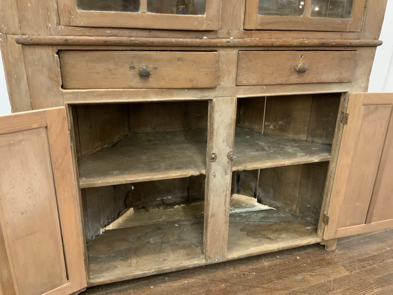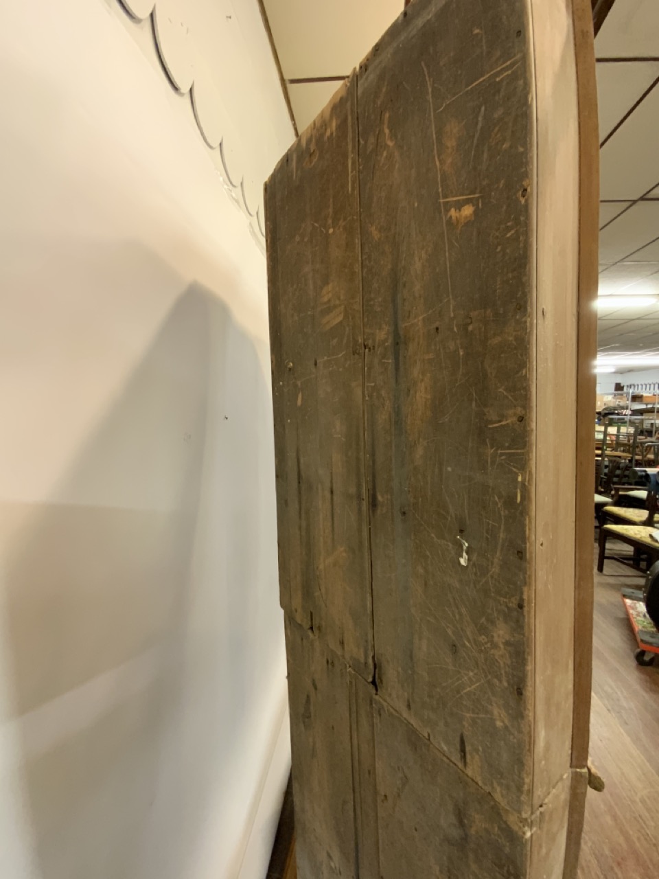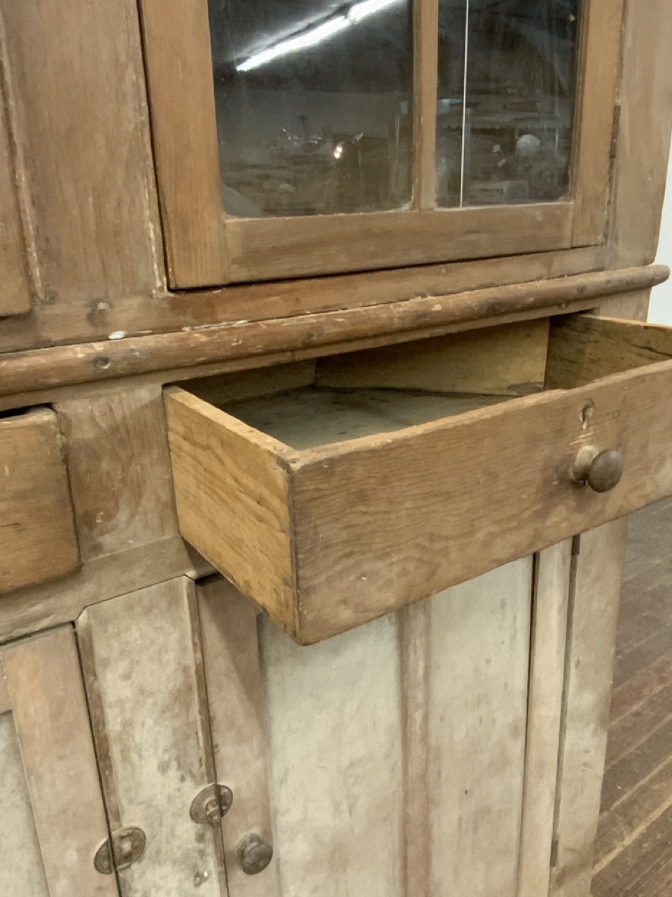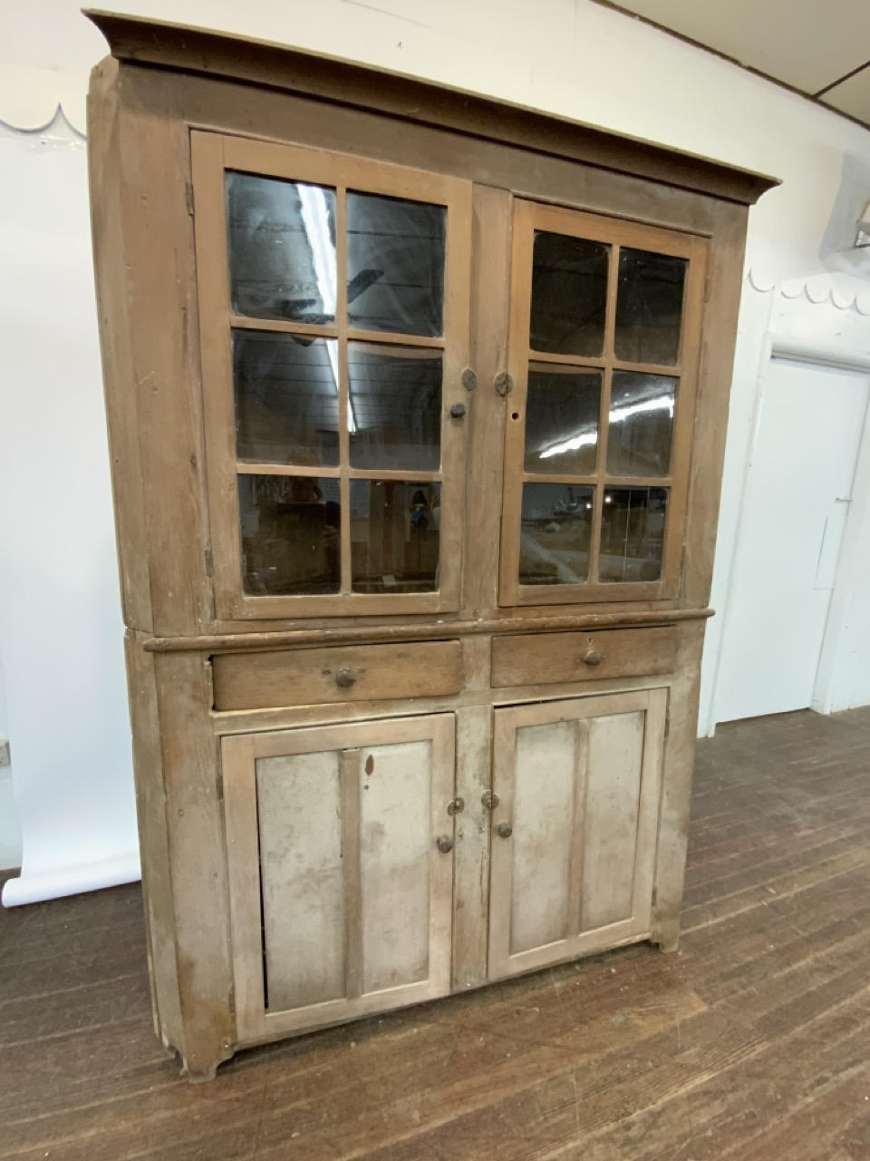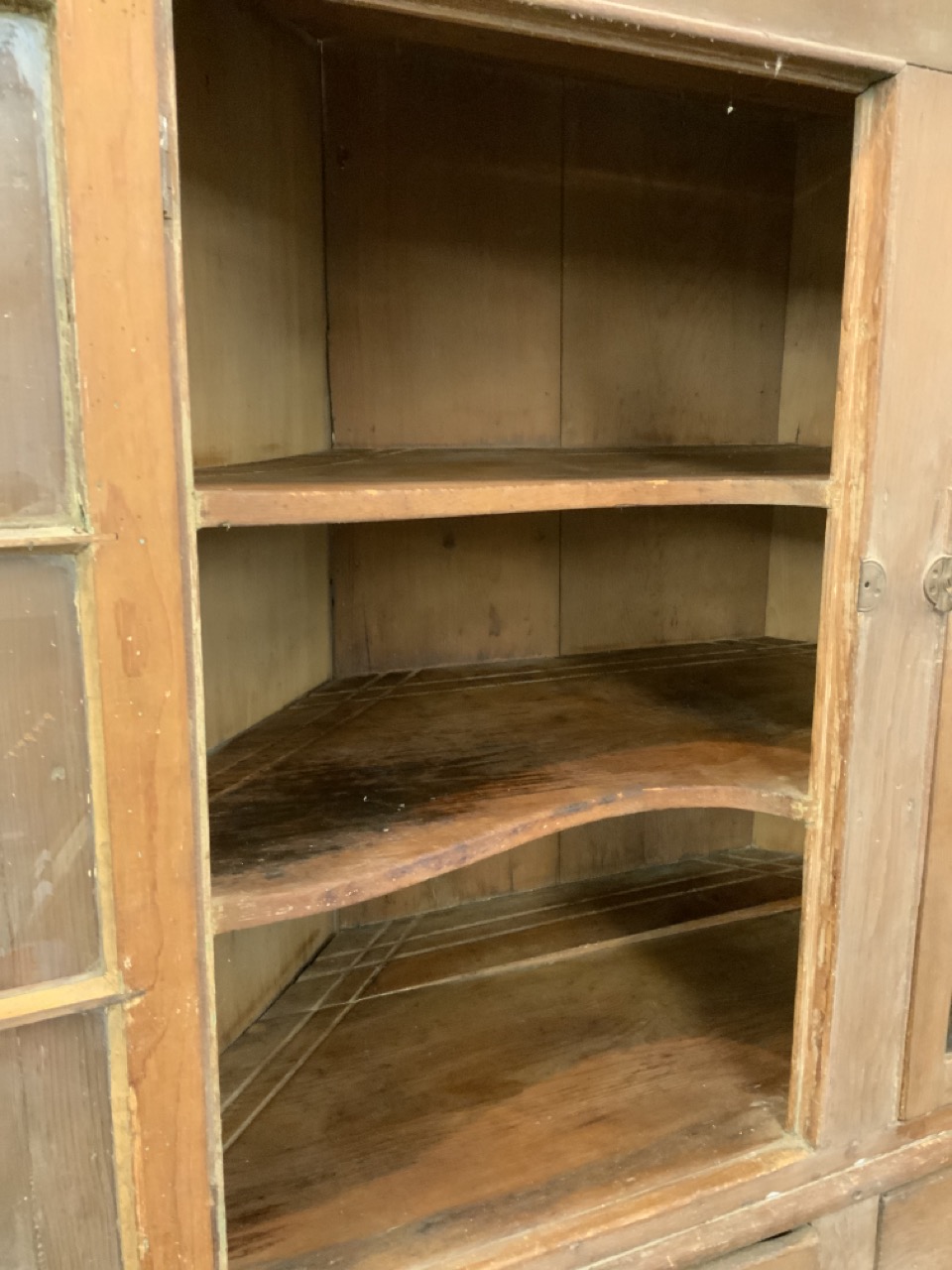 Antique Corner Cupboard. 19th. century American with wavy glass.