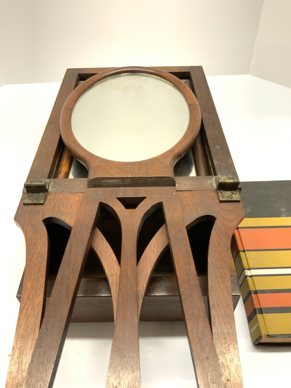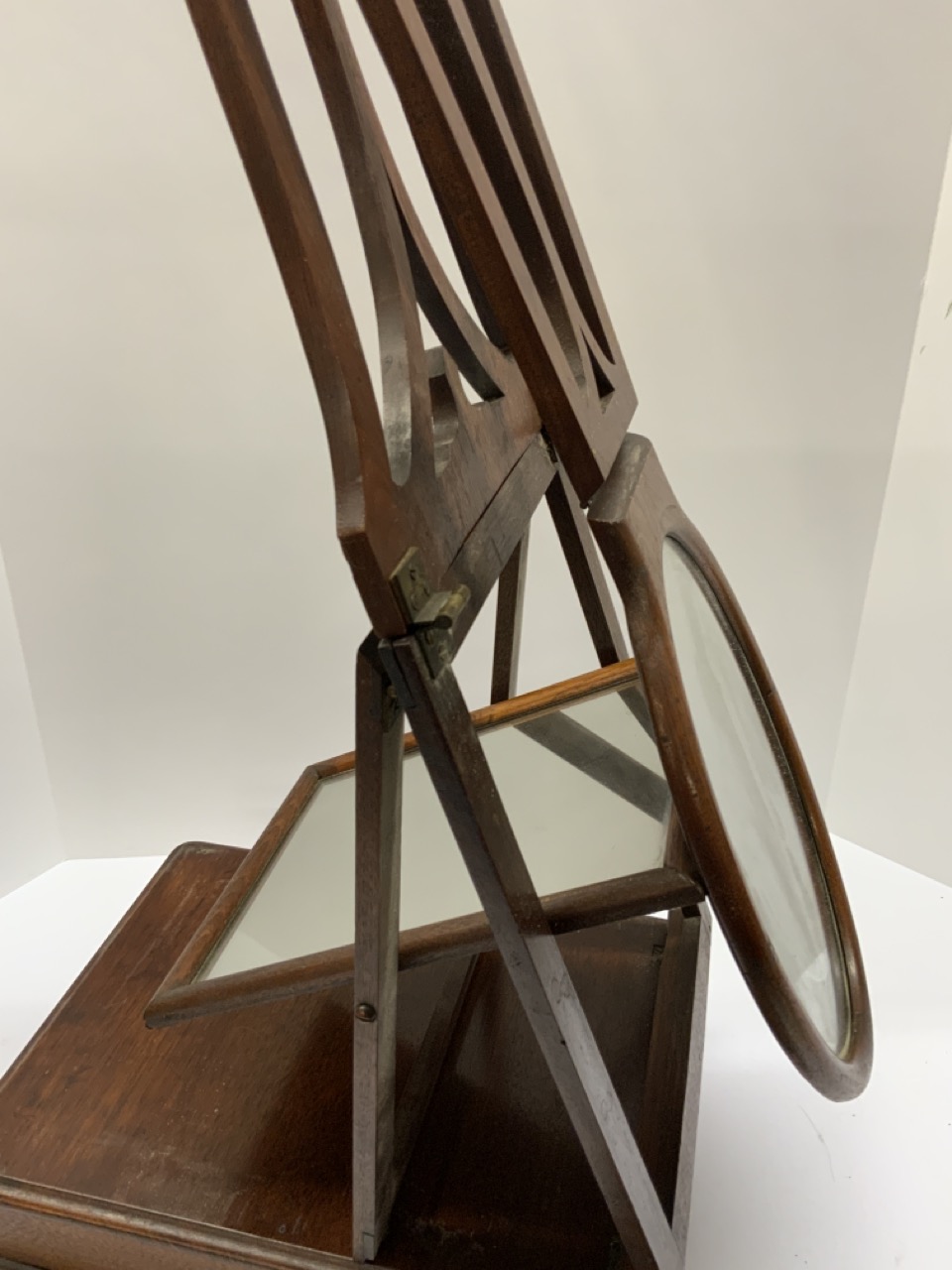 Similar in style to a shaving mirror this travel makeup mirr folds up for transport.