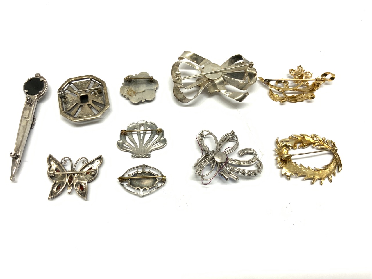 Compiled estate sterling silver pins lot.