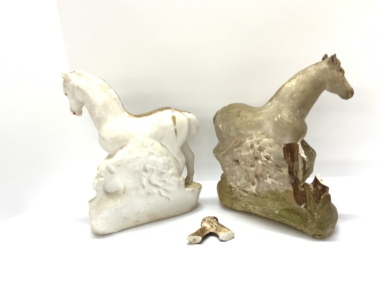 Horse on left: 10 1/2” x 7 1/2” x 3”