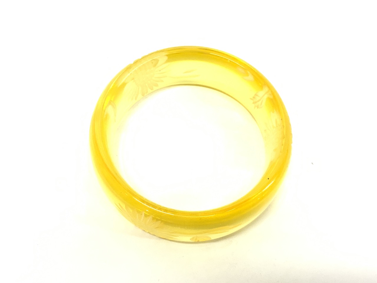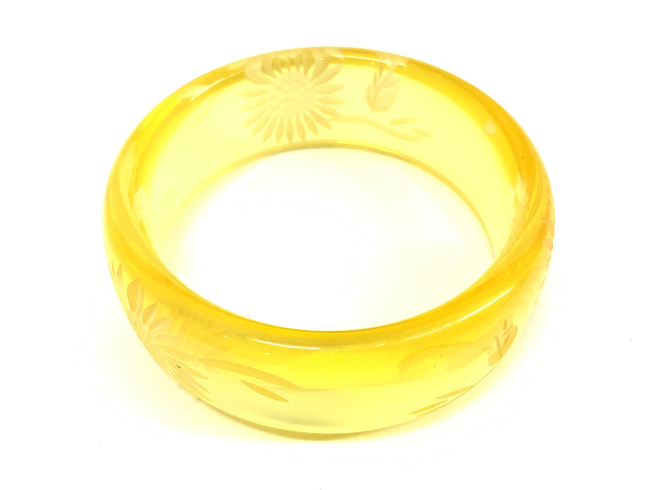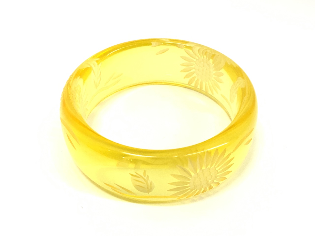 Yellow Bakelite Sunflower Bangle Bracelet .