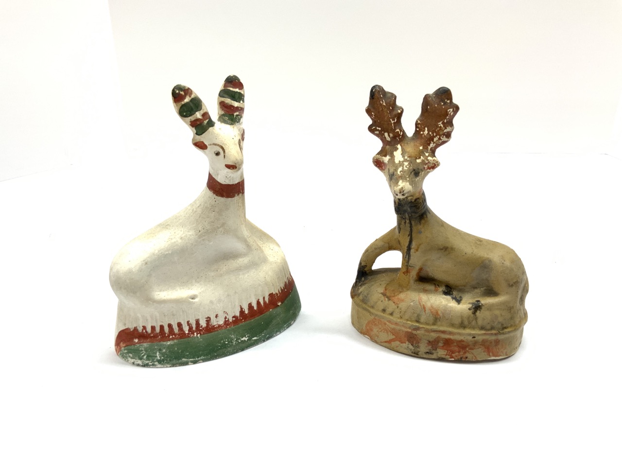 Deer on right: 5 3/4” x 4” x 2 1/4”