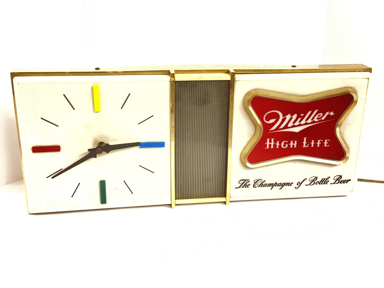 Mid-Century Miller Highlife Advertising "Champagne Of Bottled Beer" Clock and lighted bar sign.