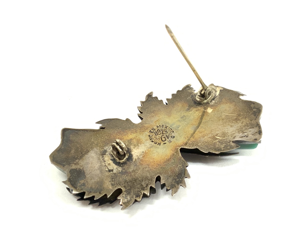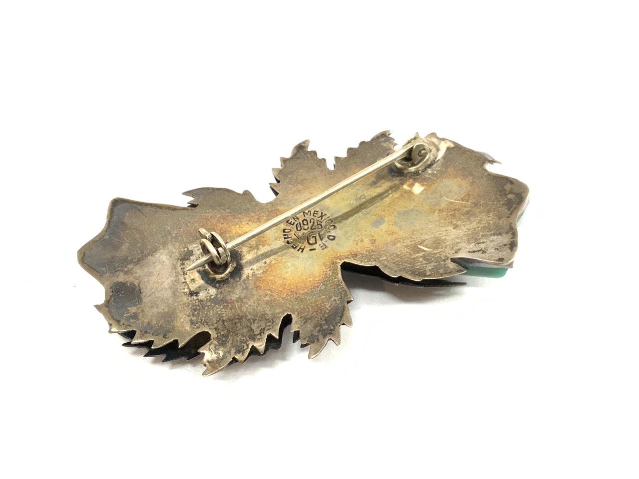 Mexican Taxco sterling silver pin with jade stone.