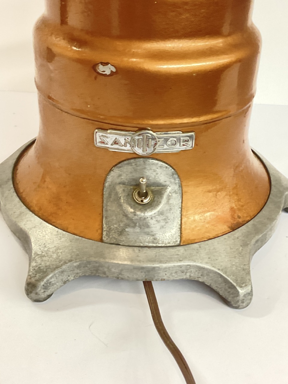 An Art Deco period "Sanitizor" lamp. Atomic style, metal construction.