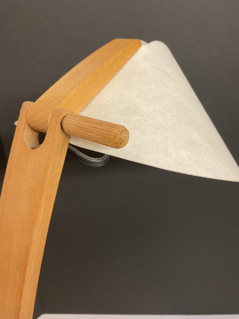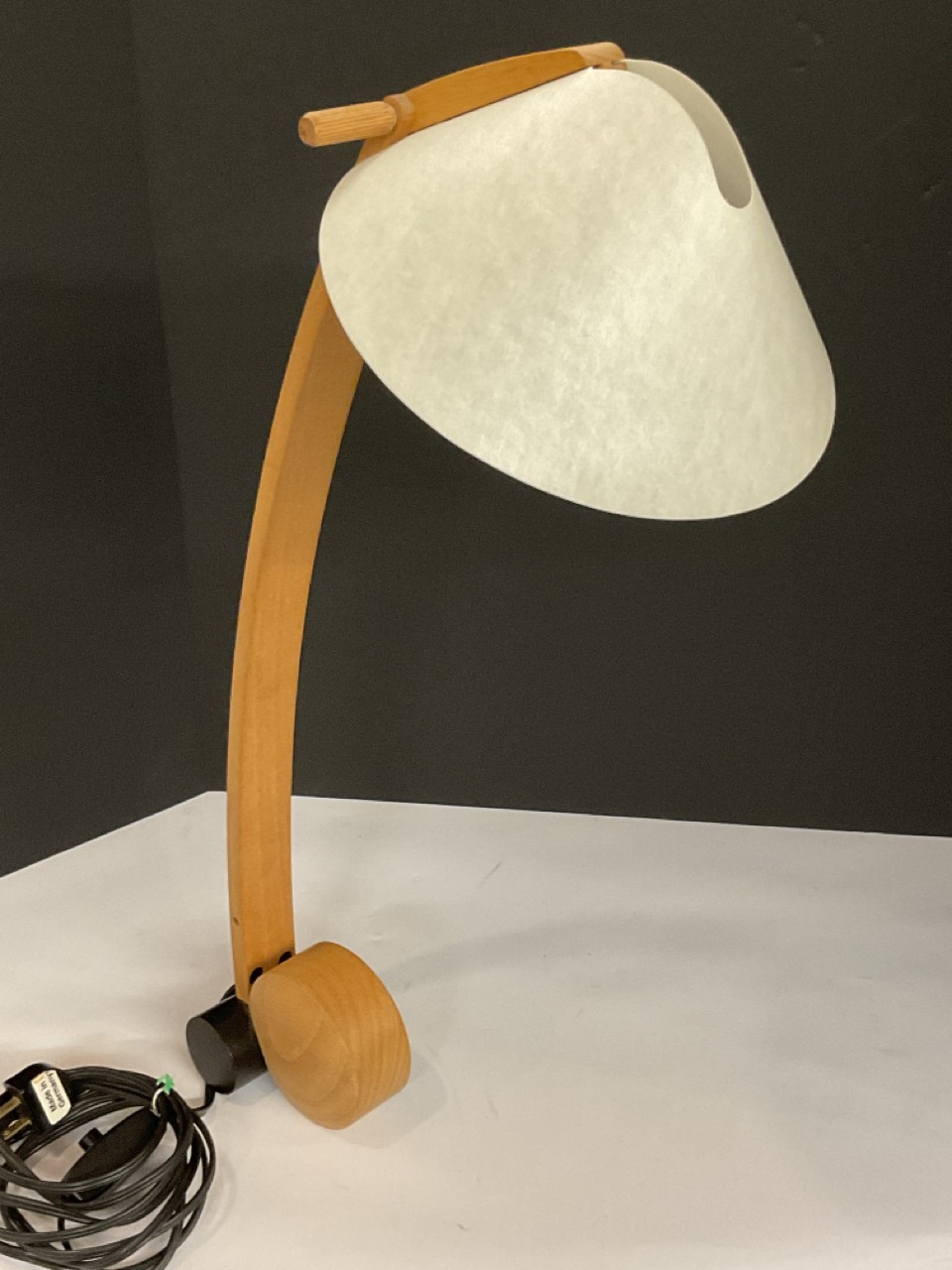 A fine table lamp of quality constructed wood and heavy transparent paper shade. Lamp is like new. Clean and presents well.