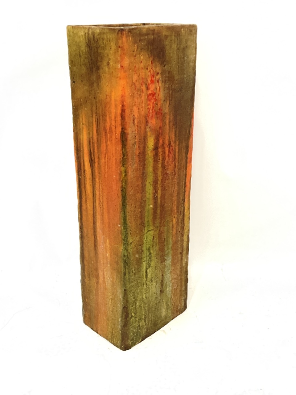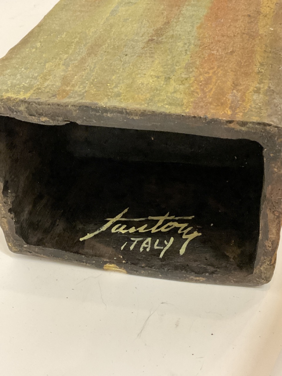 Art Pottery Floor Vase. Signed at base illegibly. Made in Italy. Small base chip back side base.