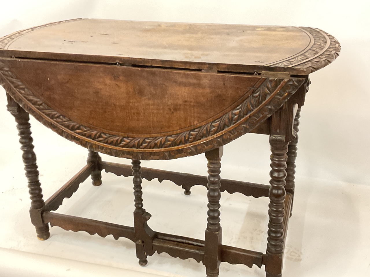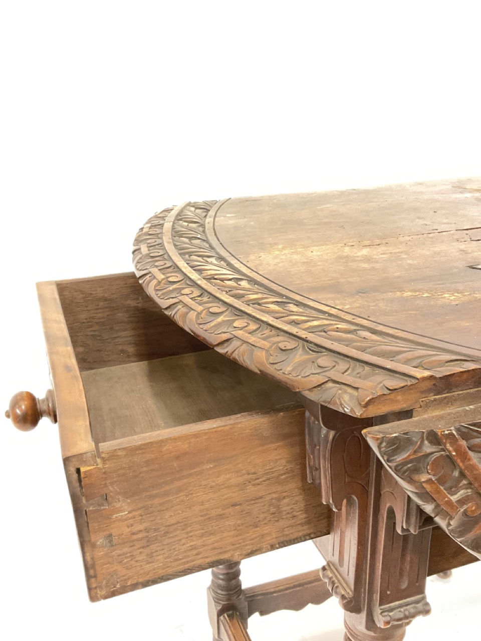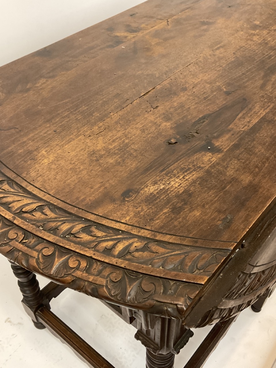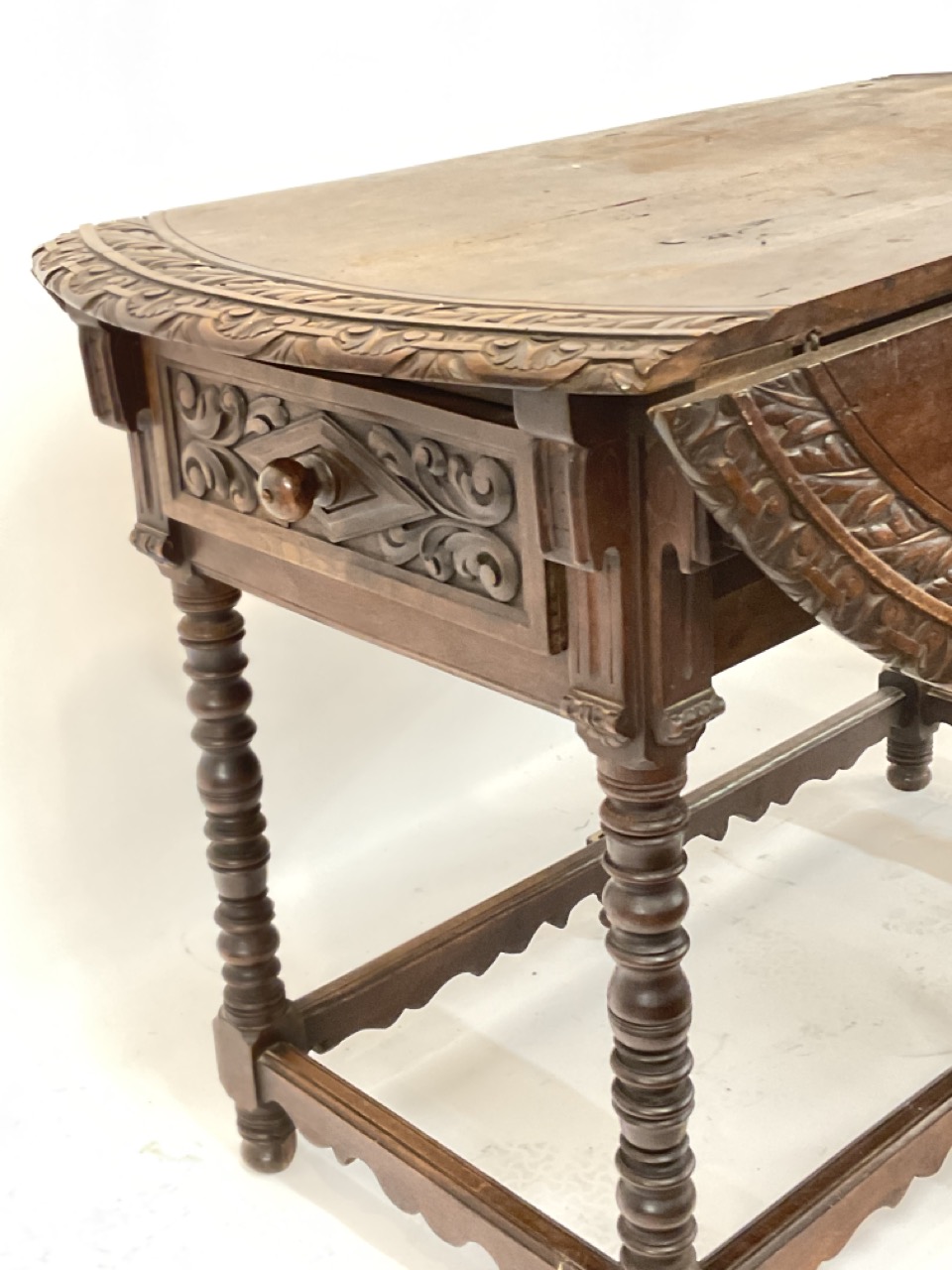 A fine carved drop leaf table. Probaby French wine country, 19th century.