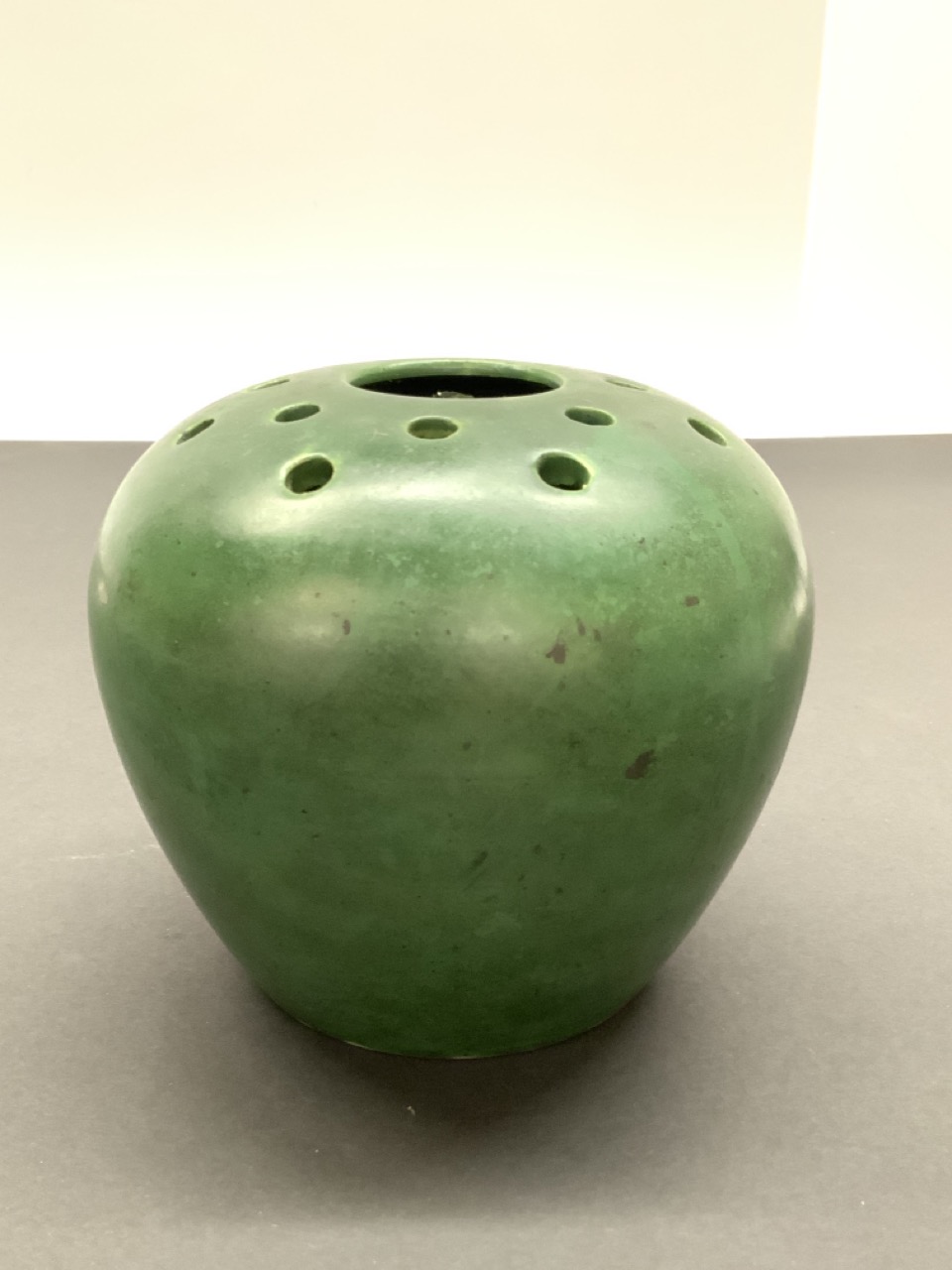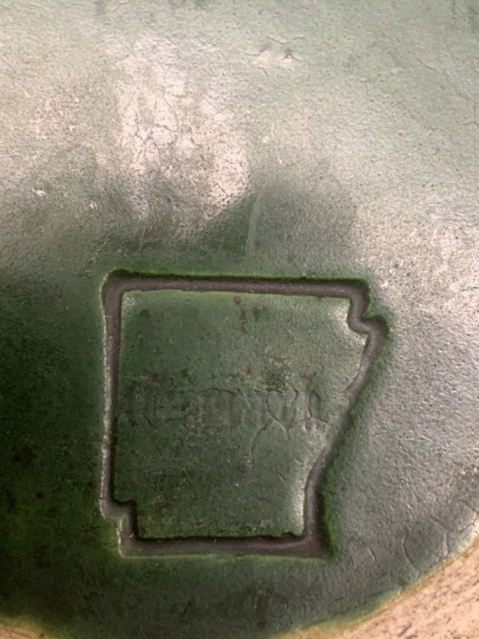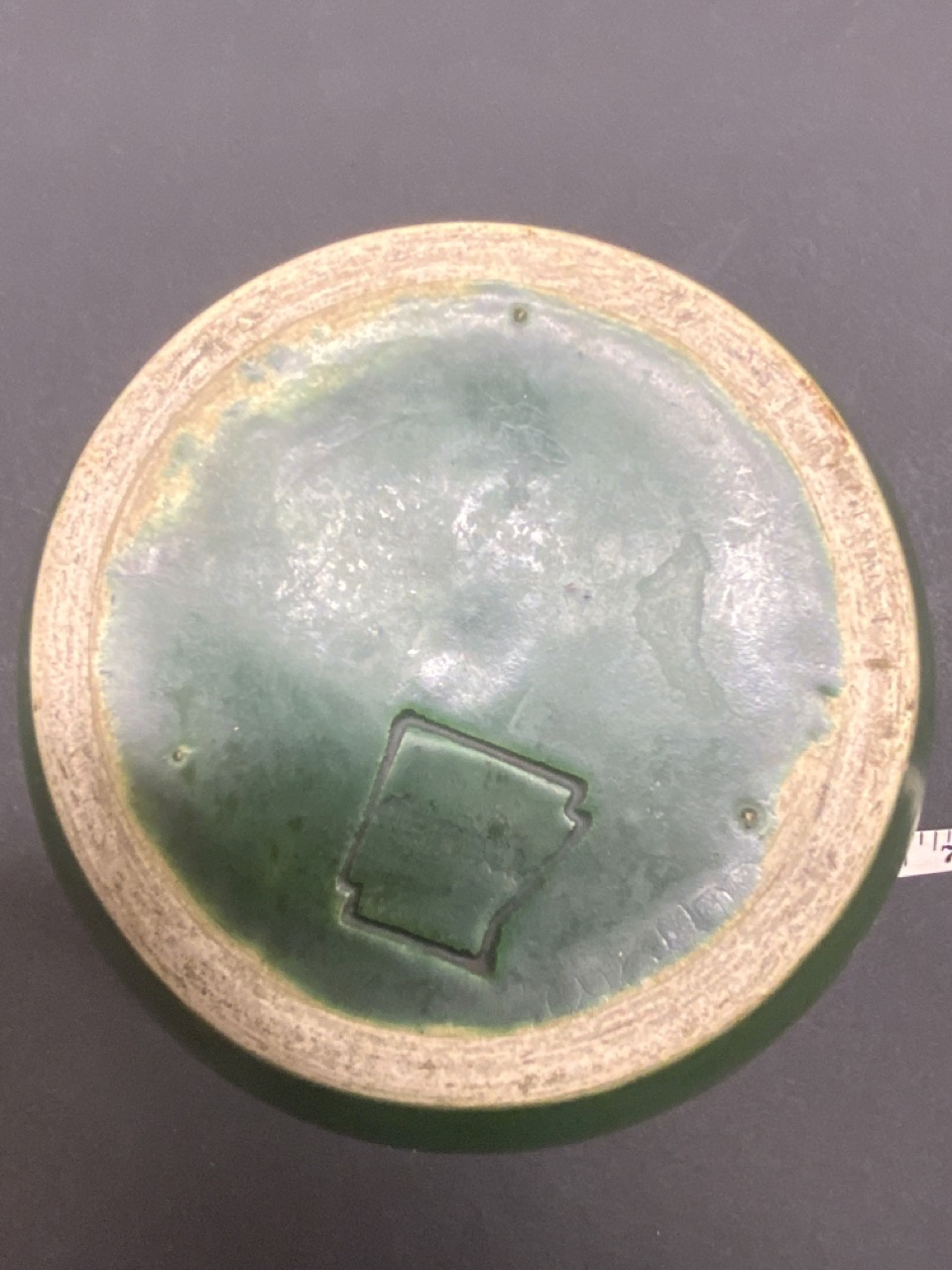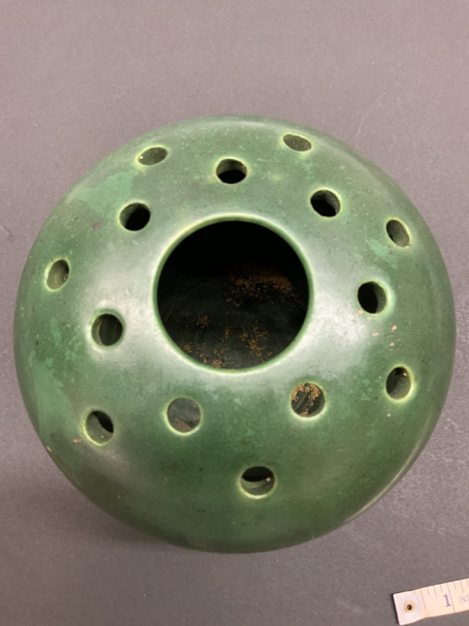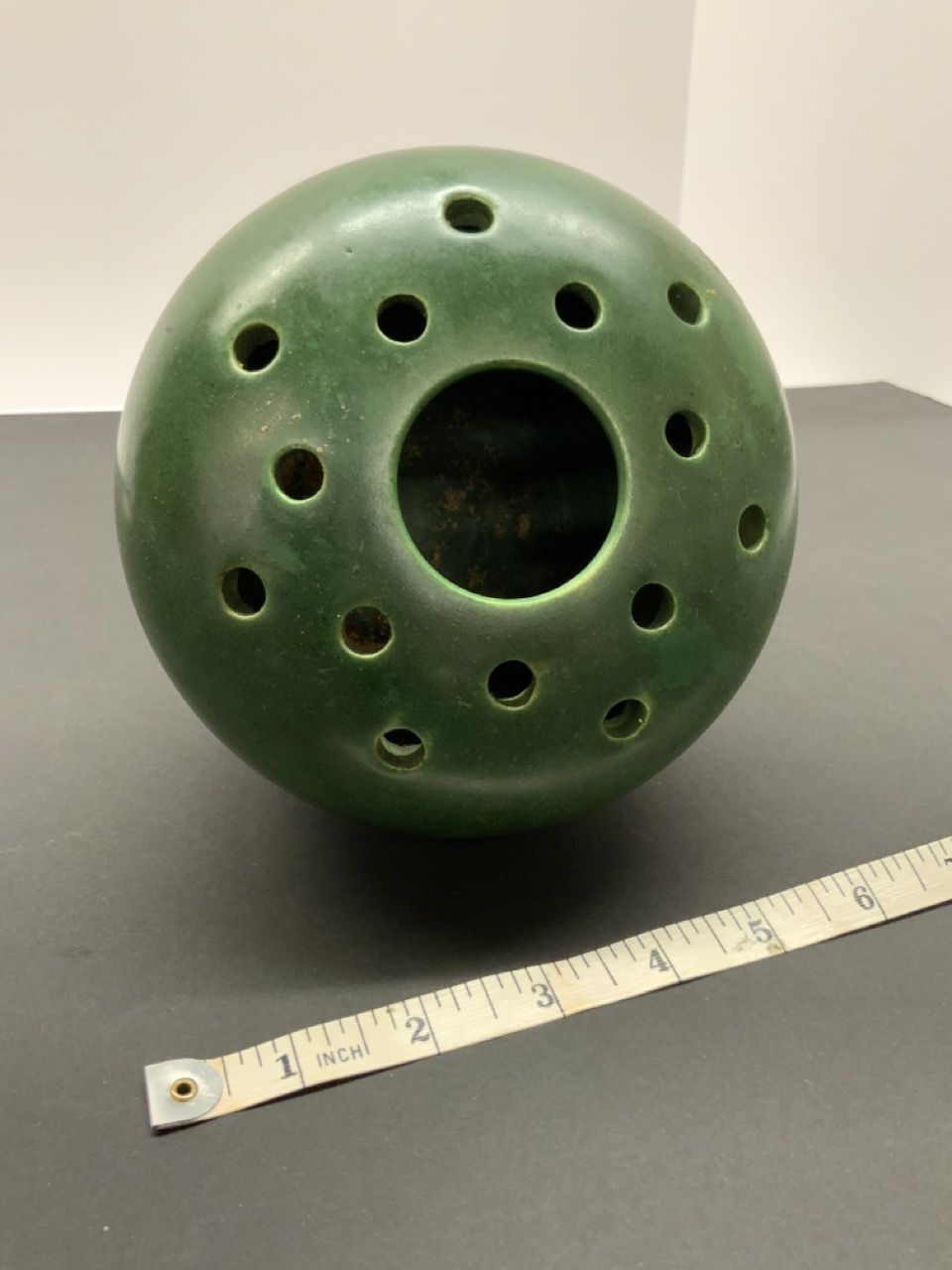 Art Pottery flower frog vase . Signed at base.